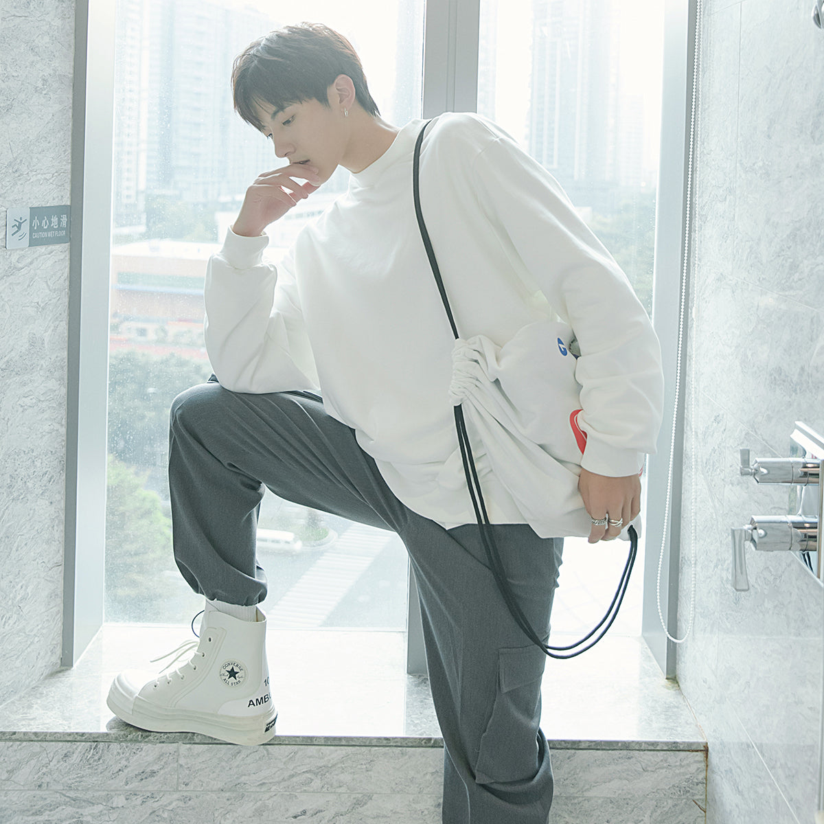 CHIC ERRO Chic Erro outfit backpack Korean version of autumn wild loose casual solid color pullover sweater boys tide