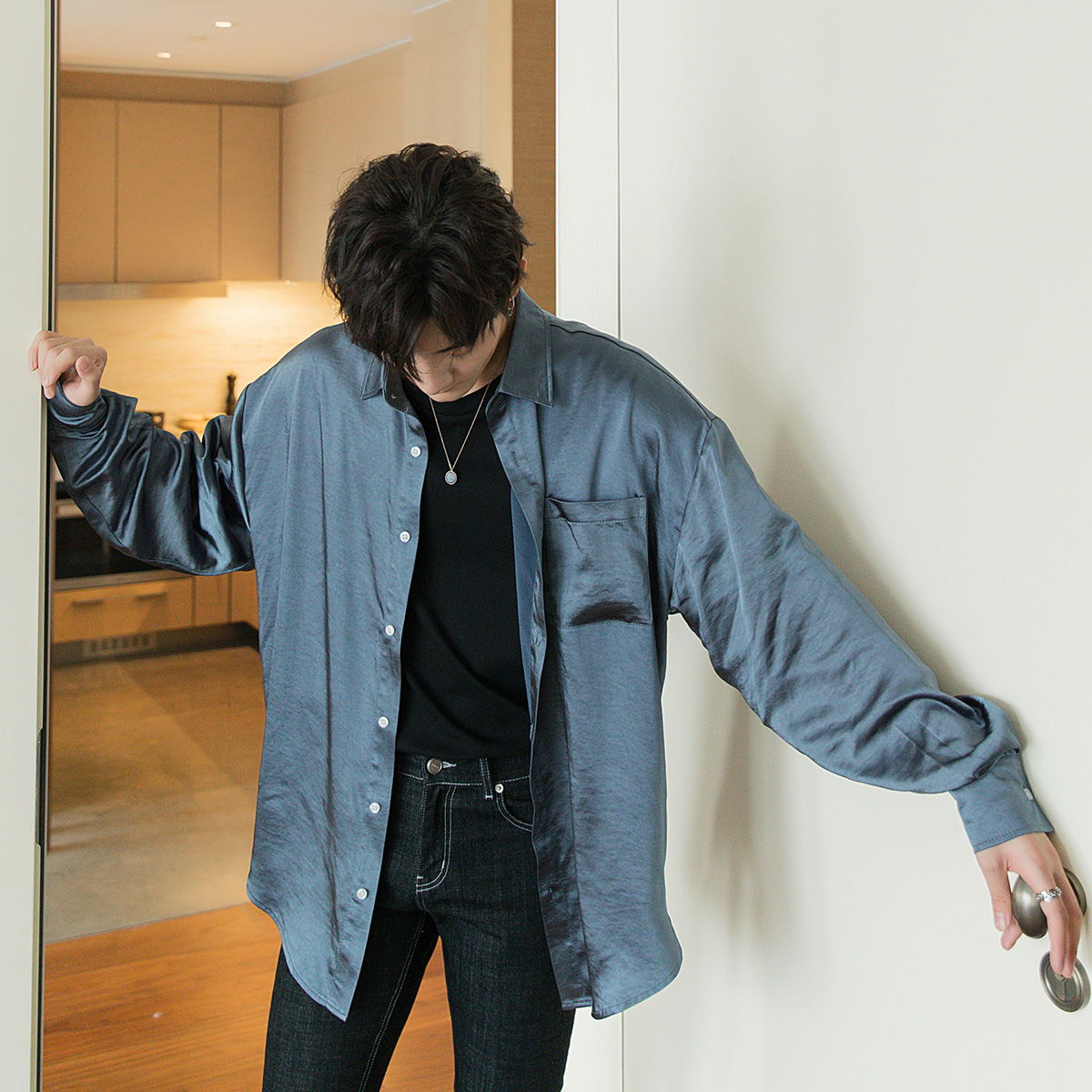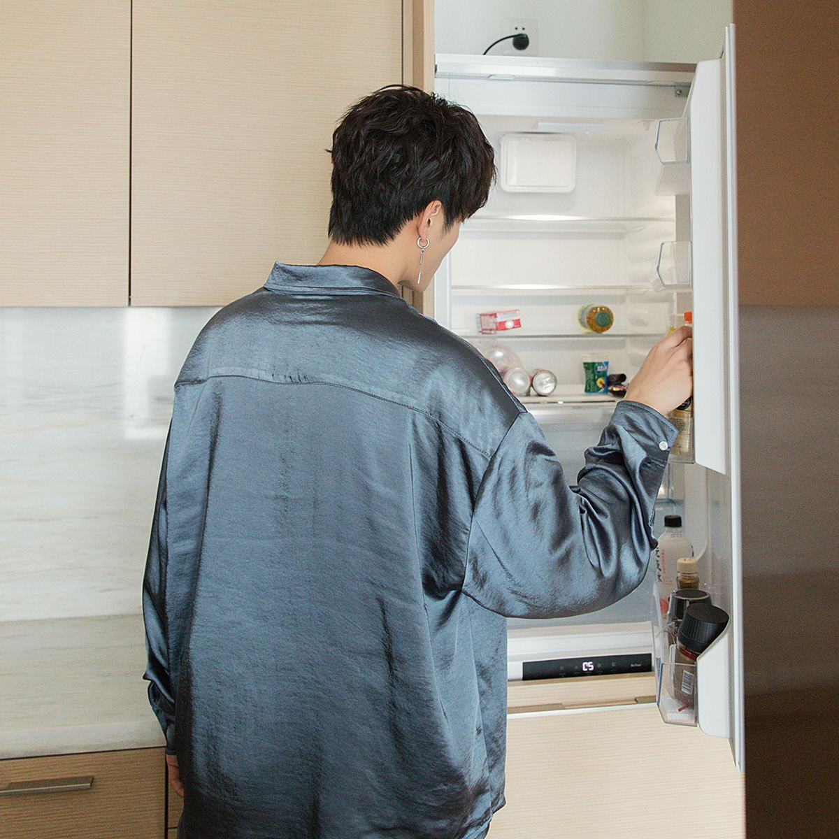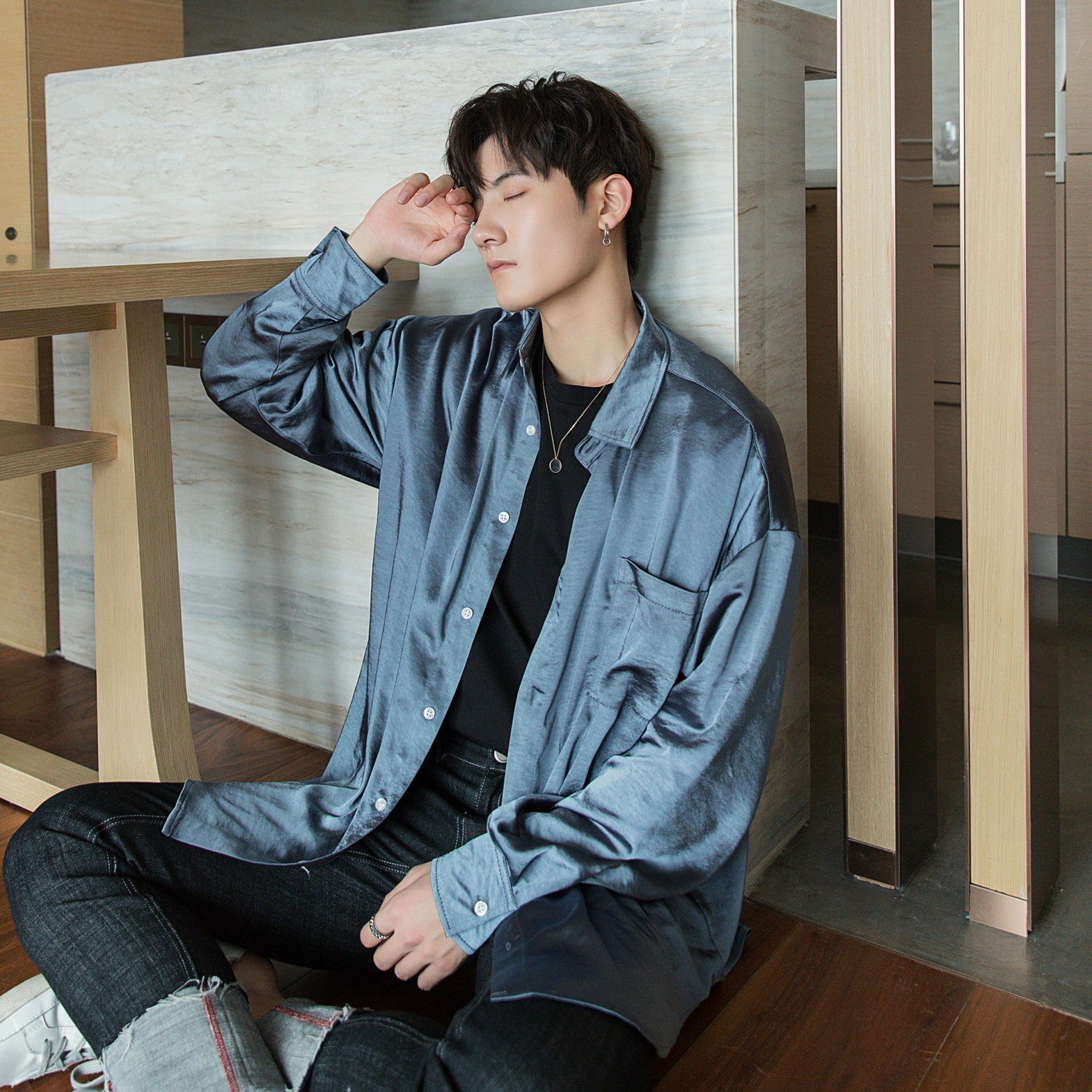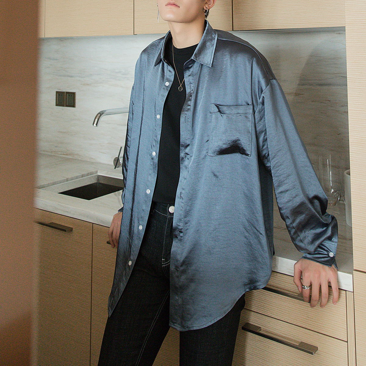 CHIC ERRO Chic Erro polarized mermaid shirt male Korean version of the trend of men's loose ice silk long-sleeved shirt jacket