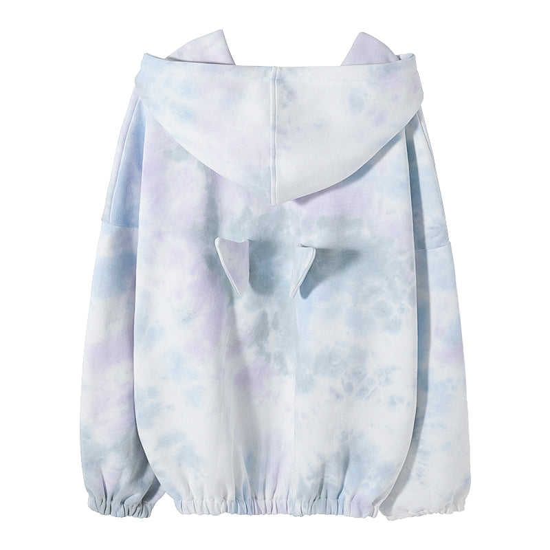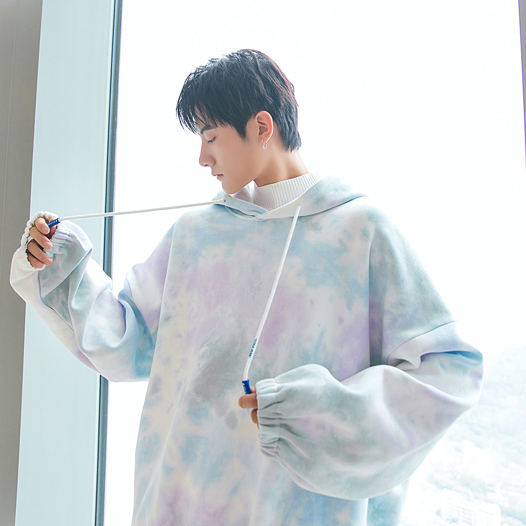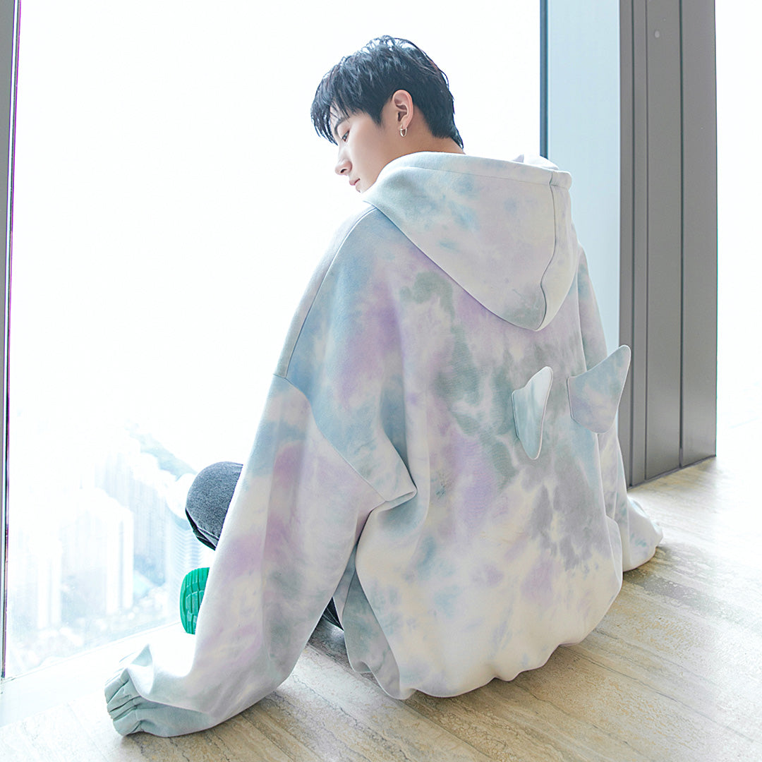 CHIC ERRO Chic Erro rainbow tie-dye design sense back wing tops men's Korean style trendy loose hooded sweater