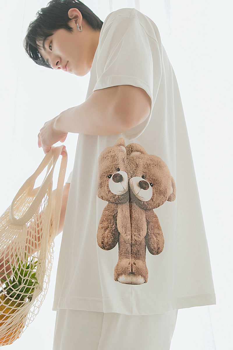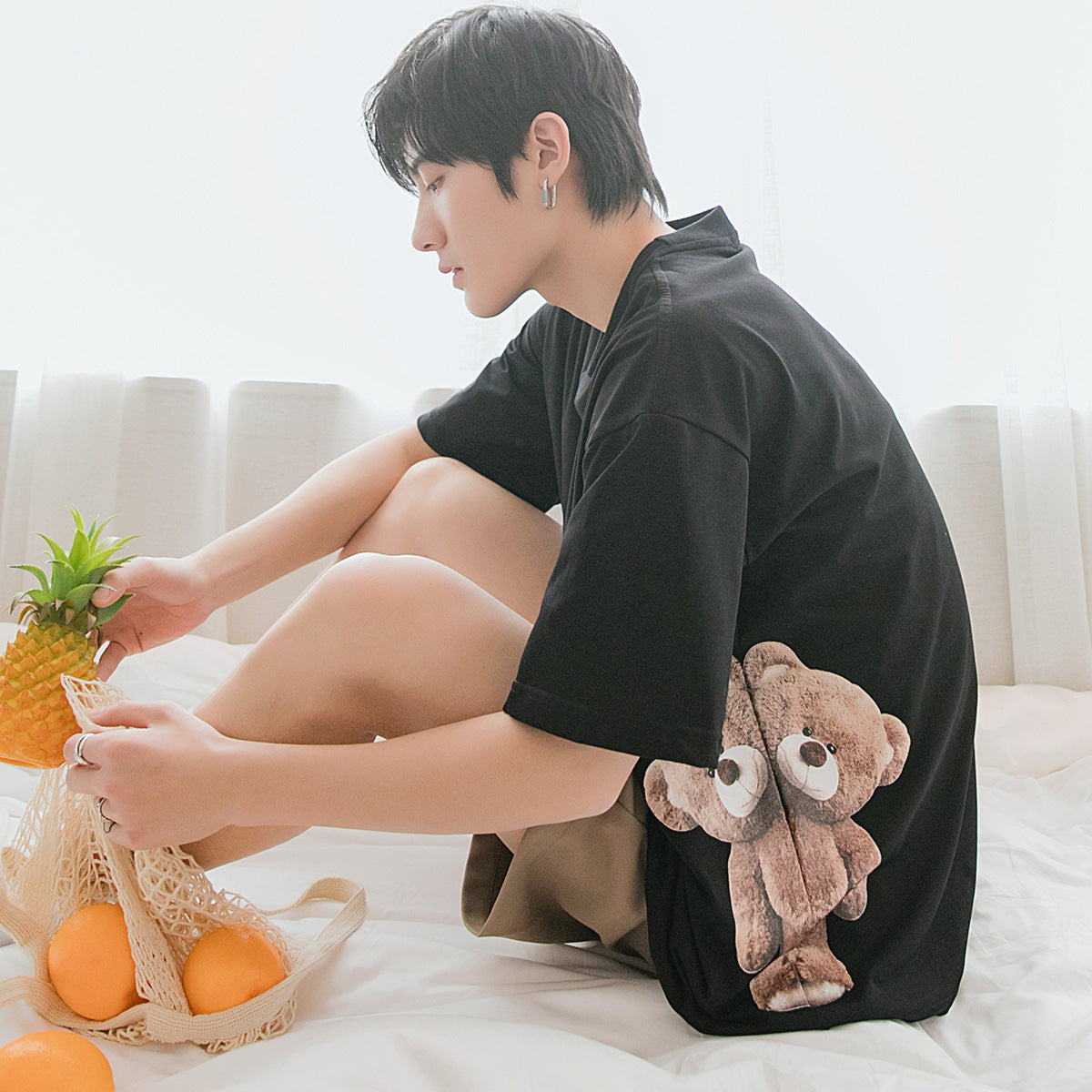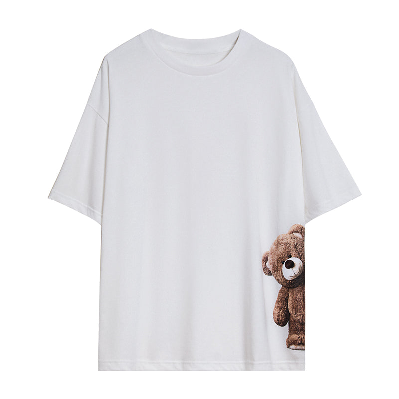 CHIC ERRO Chic Erro round neck short-sleeved t-shirt men's trendy brand loose white casual shirt cartoon bear print compassionate