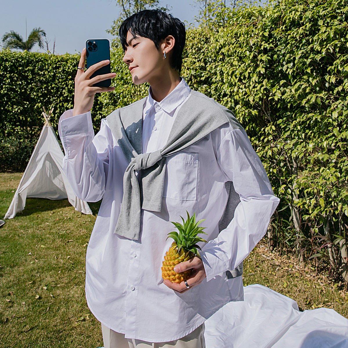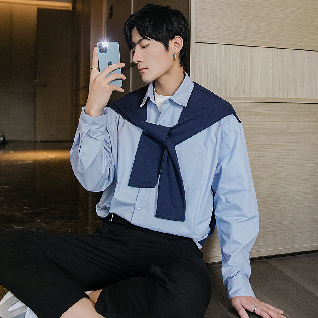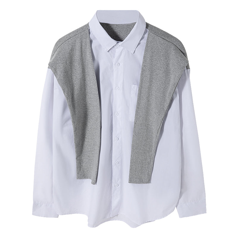 CHIC ERRO Chic Erro shawl fake two-piece shirt men's long-sleeved design sense niche youth trend loose shirt