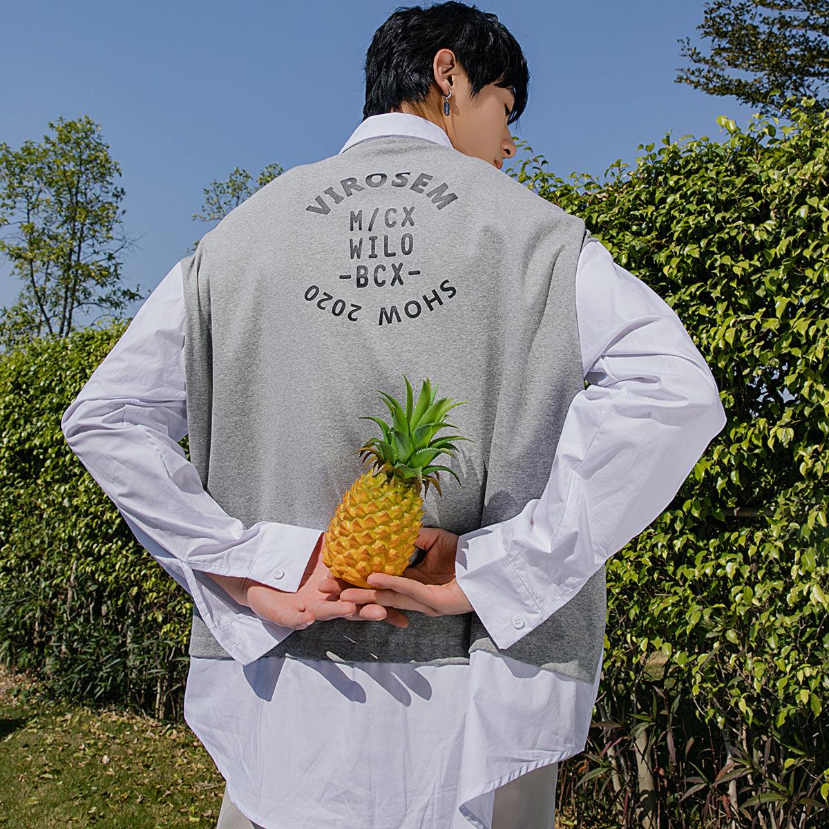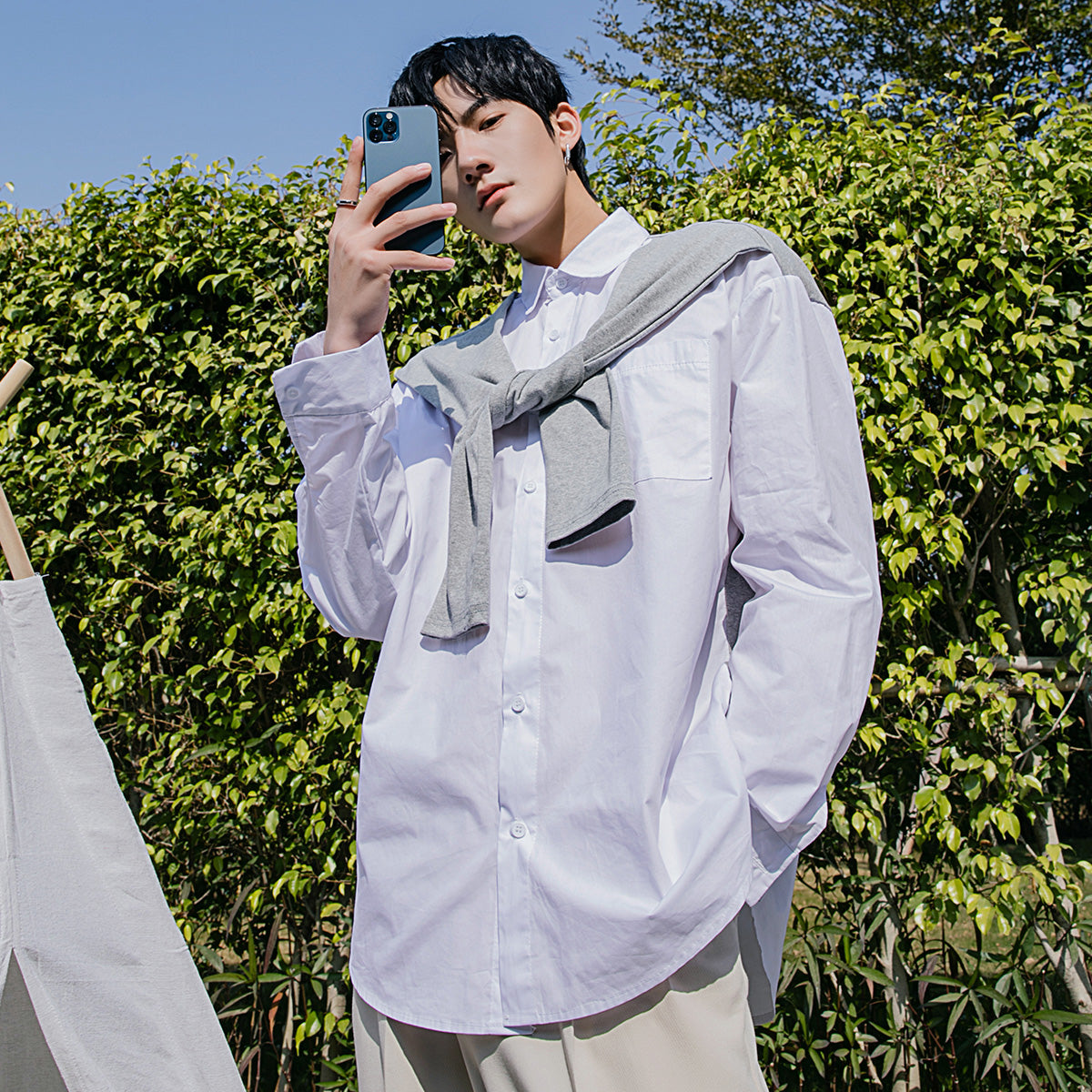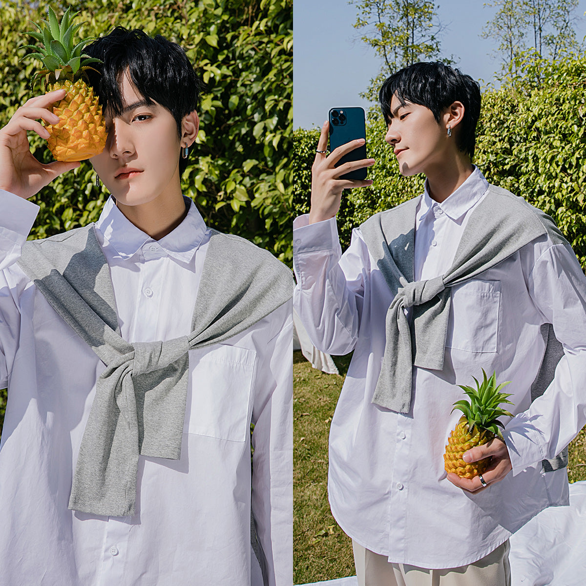 CHIC ERRO Chic Erro shawl fake two-piece shirt men's long-sleeved design sense niche youth trend loose shirt