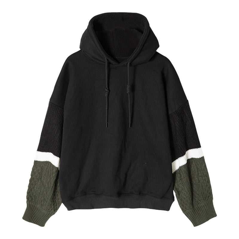 CHIC ERRO Chic Erro shirt loose plus velvet thick knit stitching hooded sweater men's Korean trend