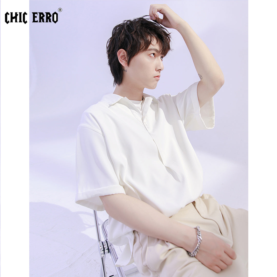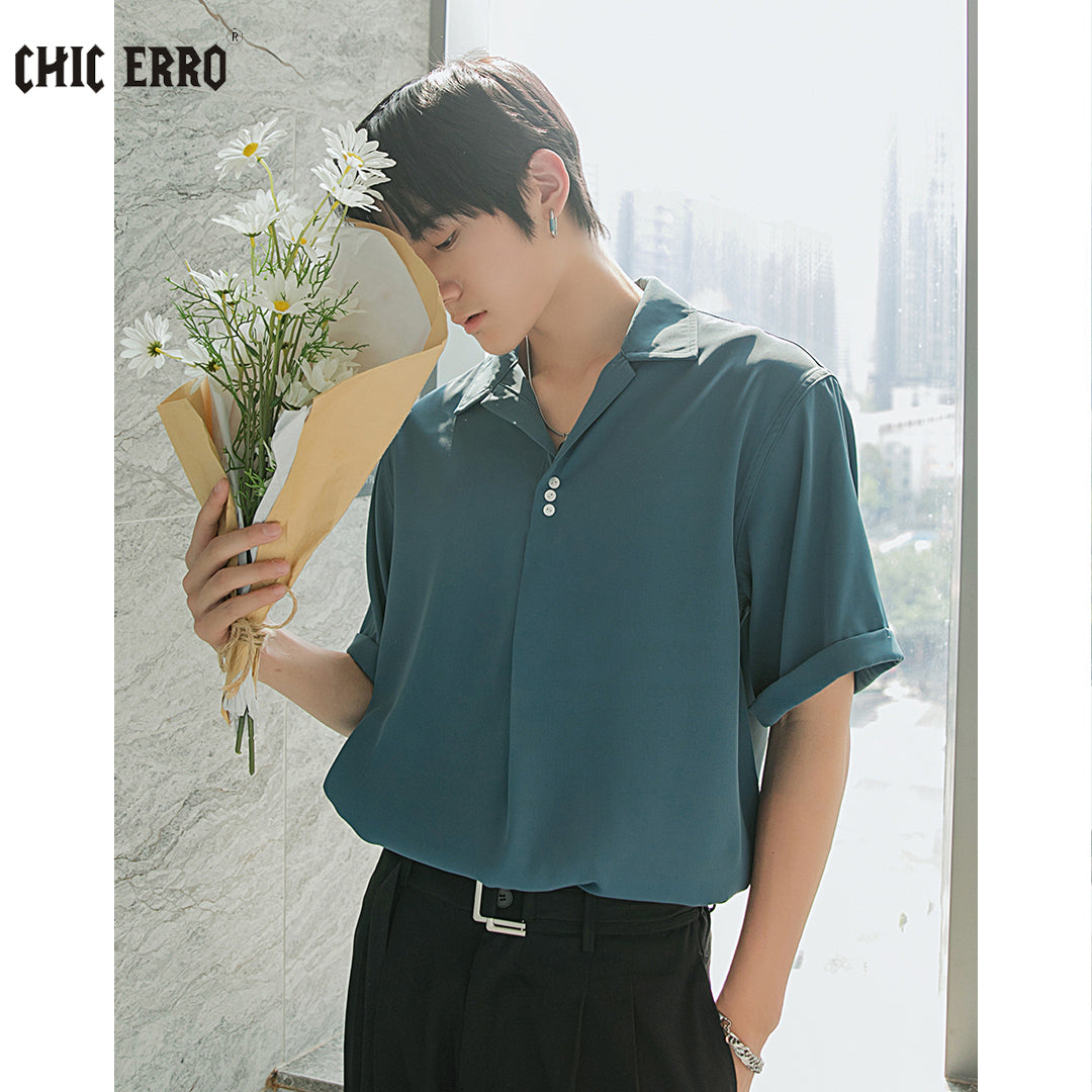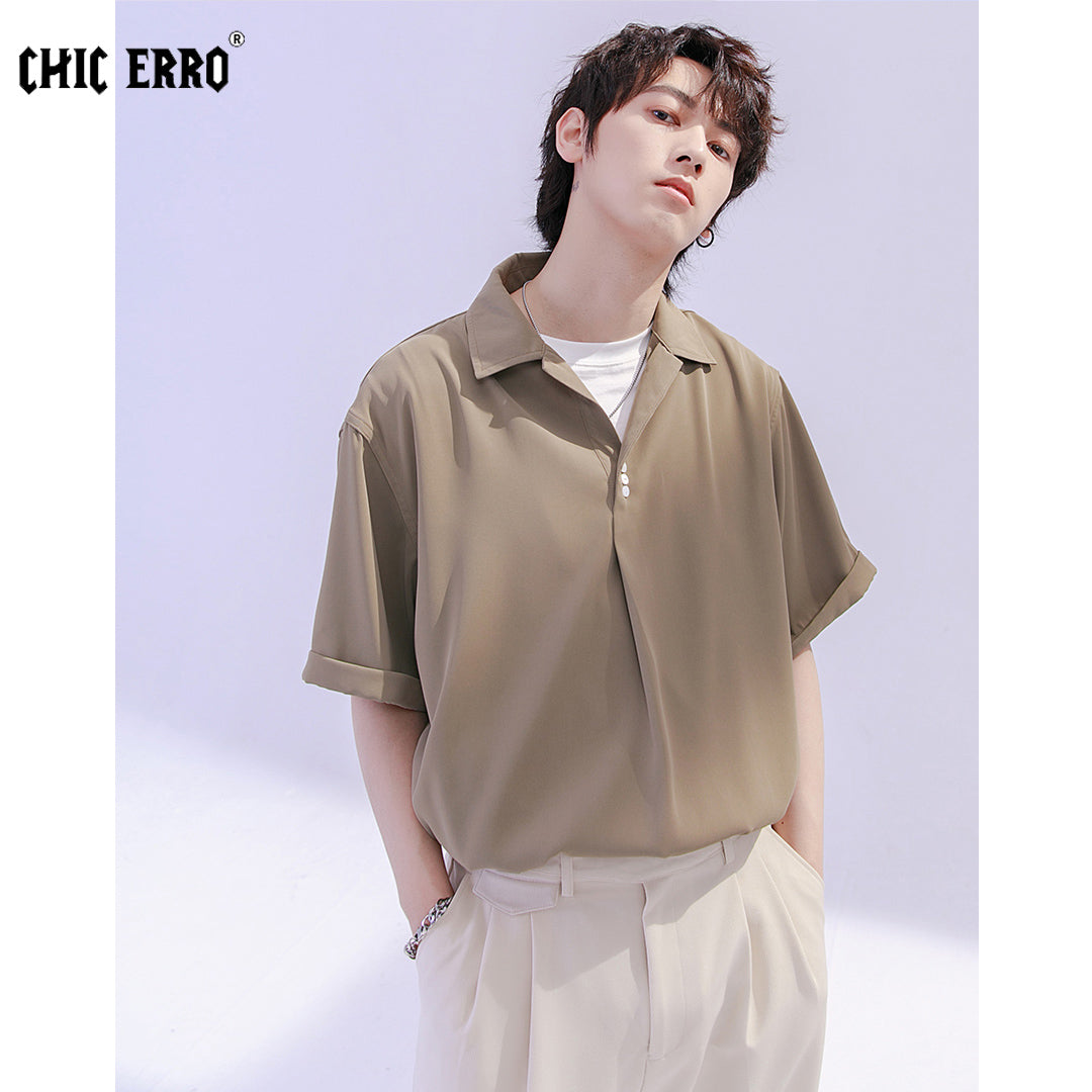CHIC ERRO Chic Erro shirt men's short-sleeved summer thin loose men's casual can be worn outside youth solid color shirt