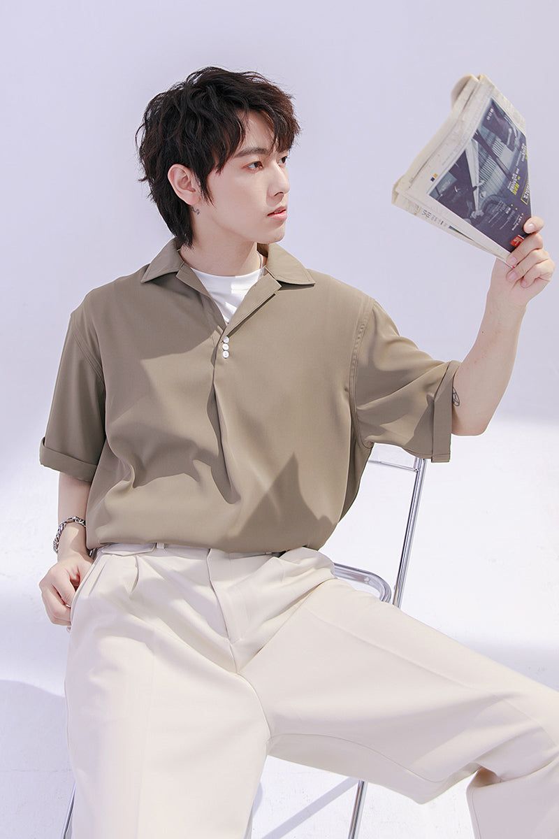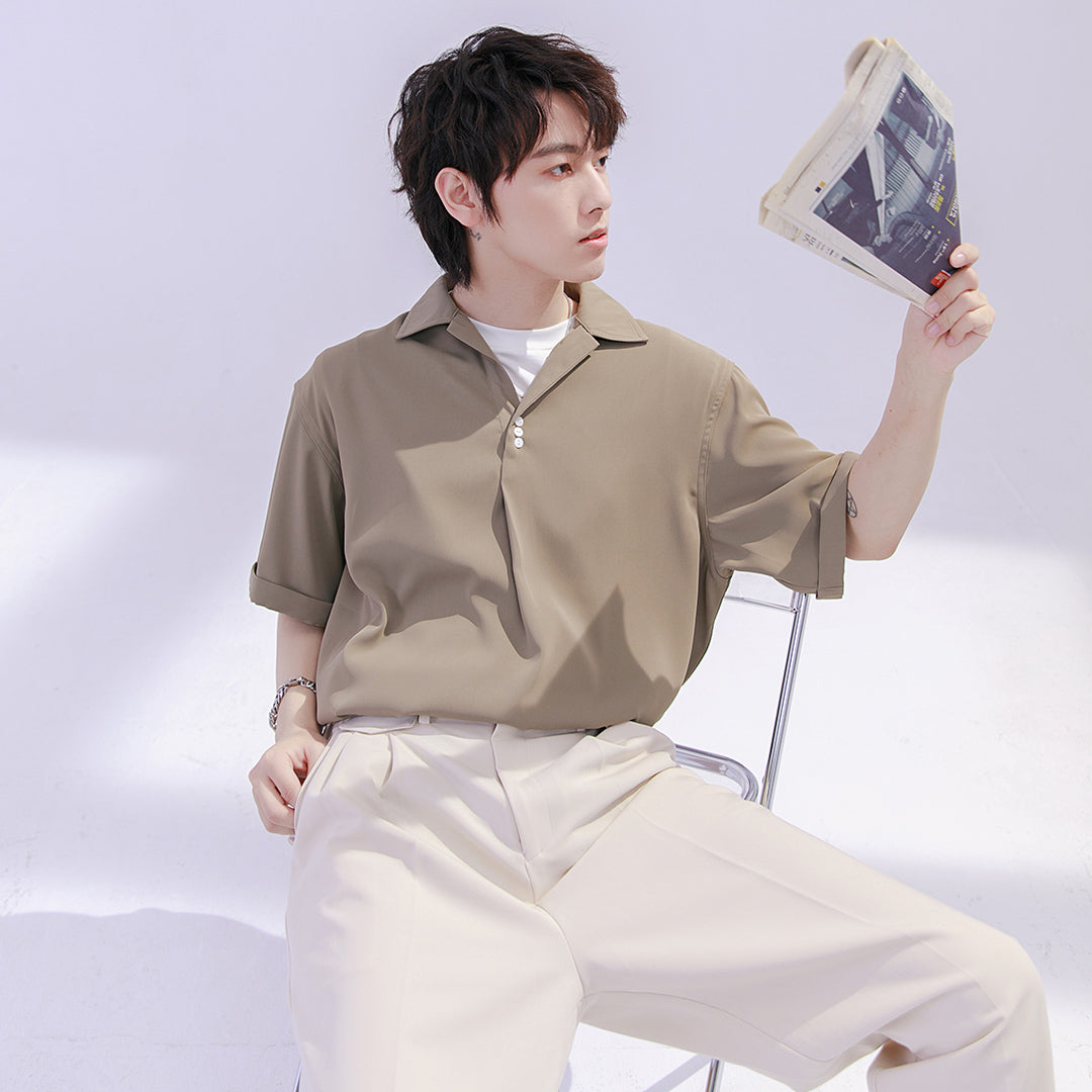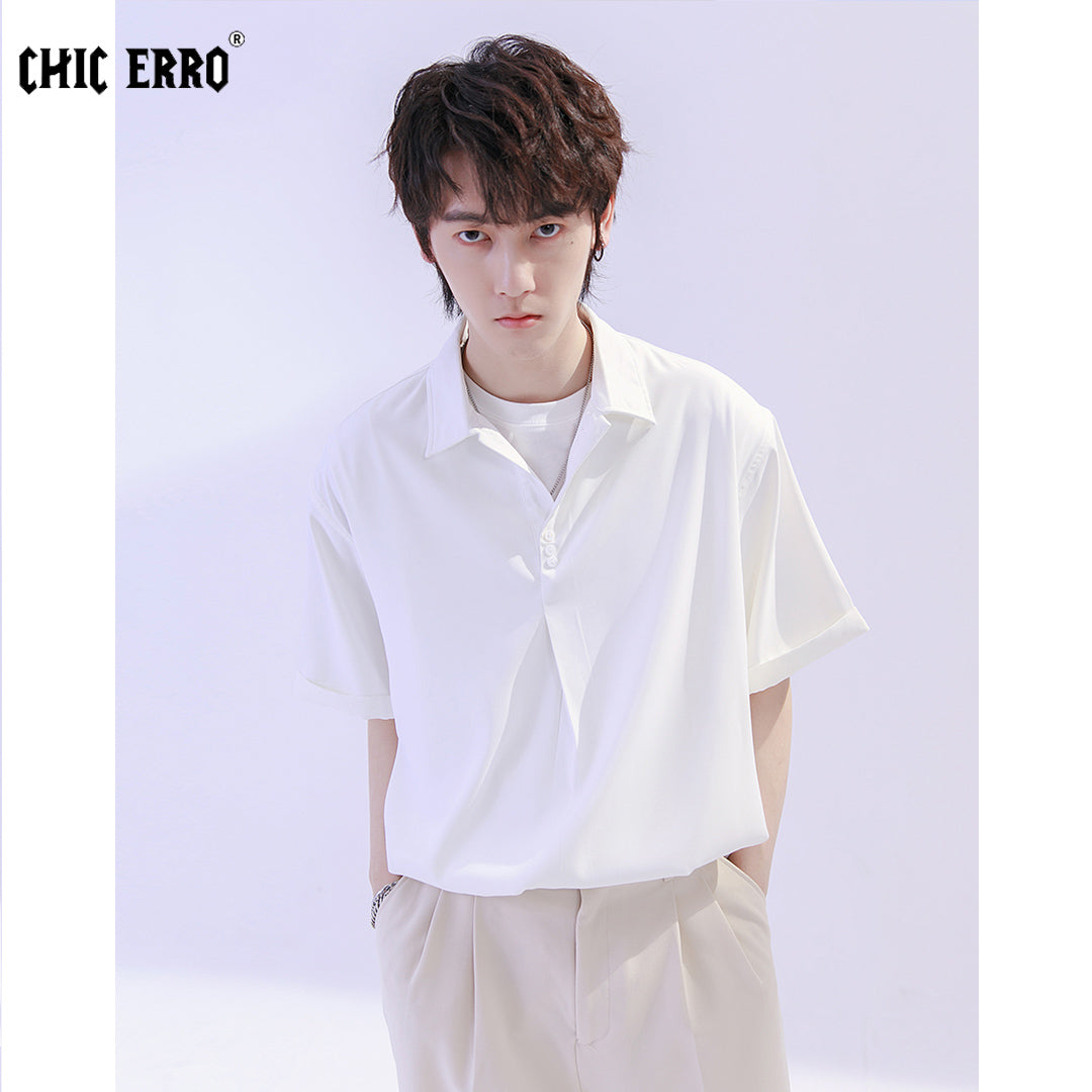 CHIC ERRO Chic Erro shirt men's short-sleeved summer thin loose men's casual can be worn outside youth solid color shirt