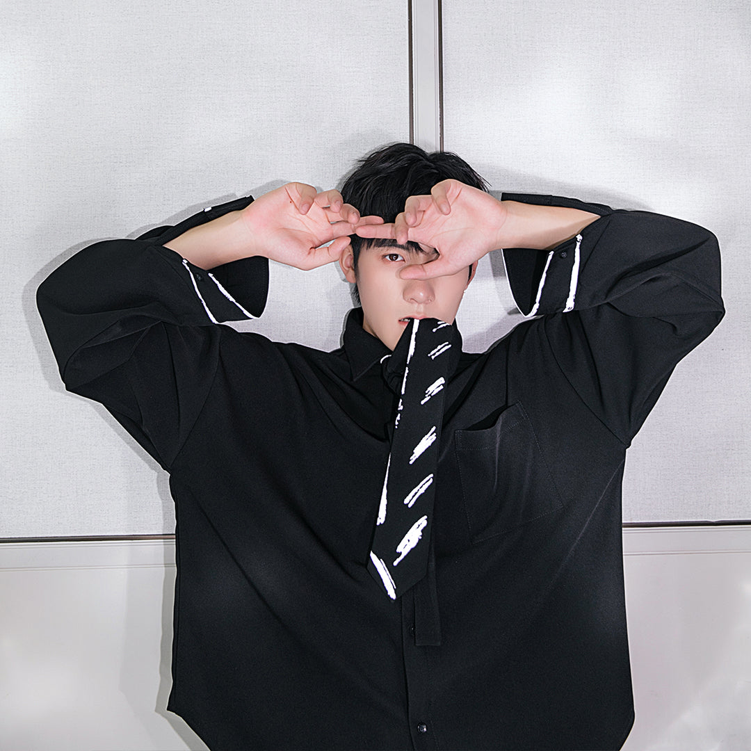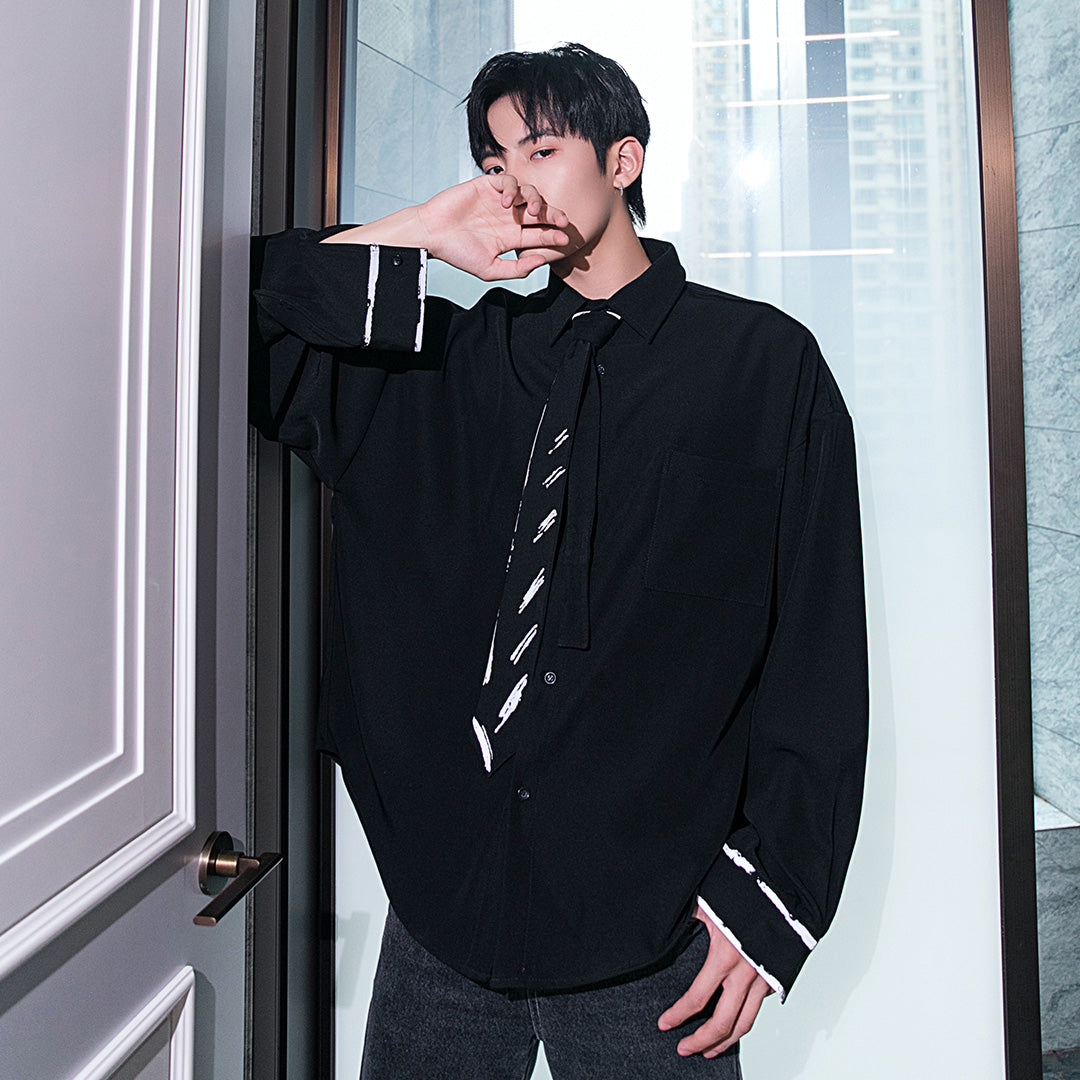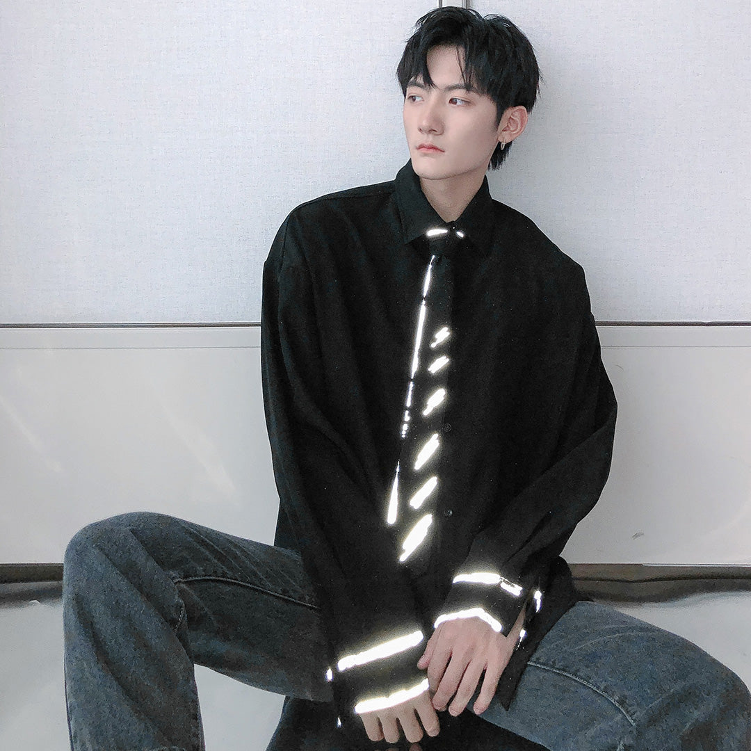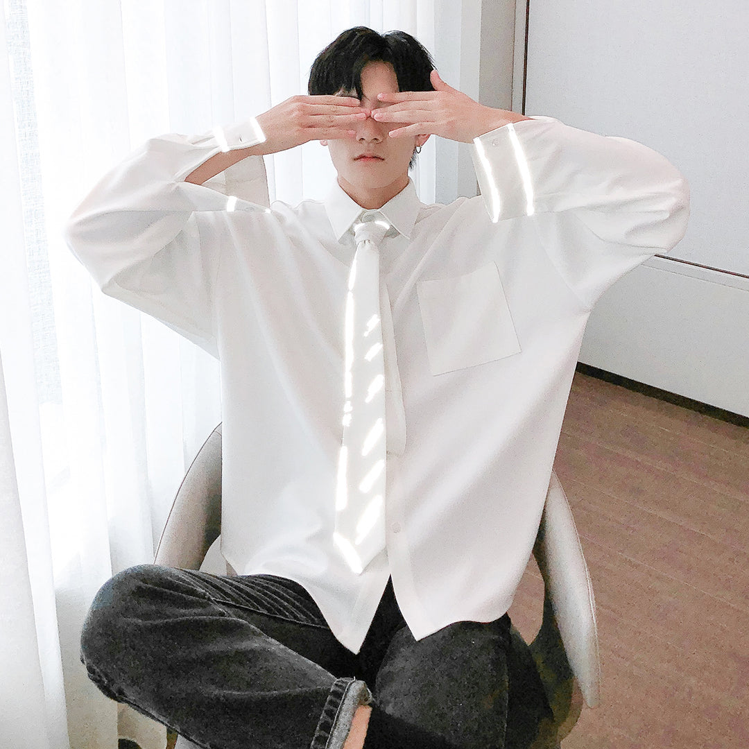 CHIC ERRO Chic Erro shirt tie cuffs reflective handsome loose fashion shirt male Korean trend