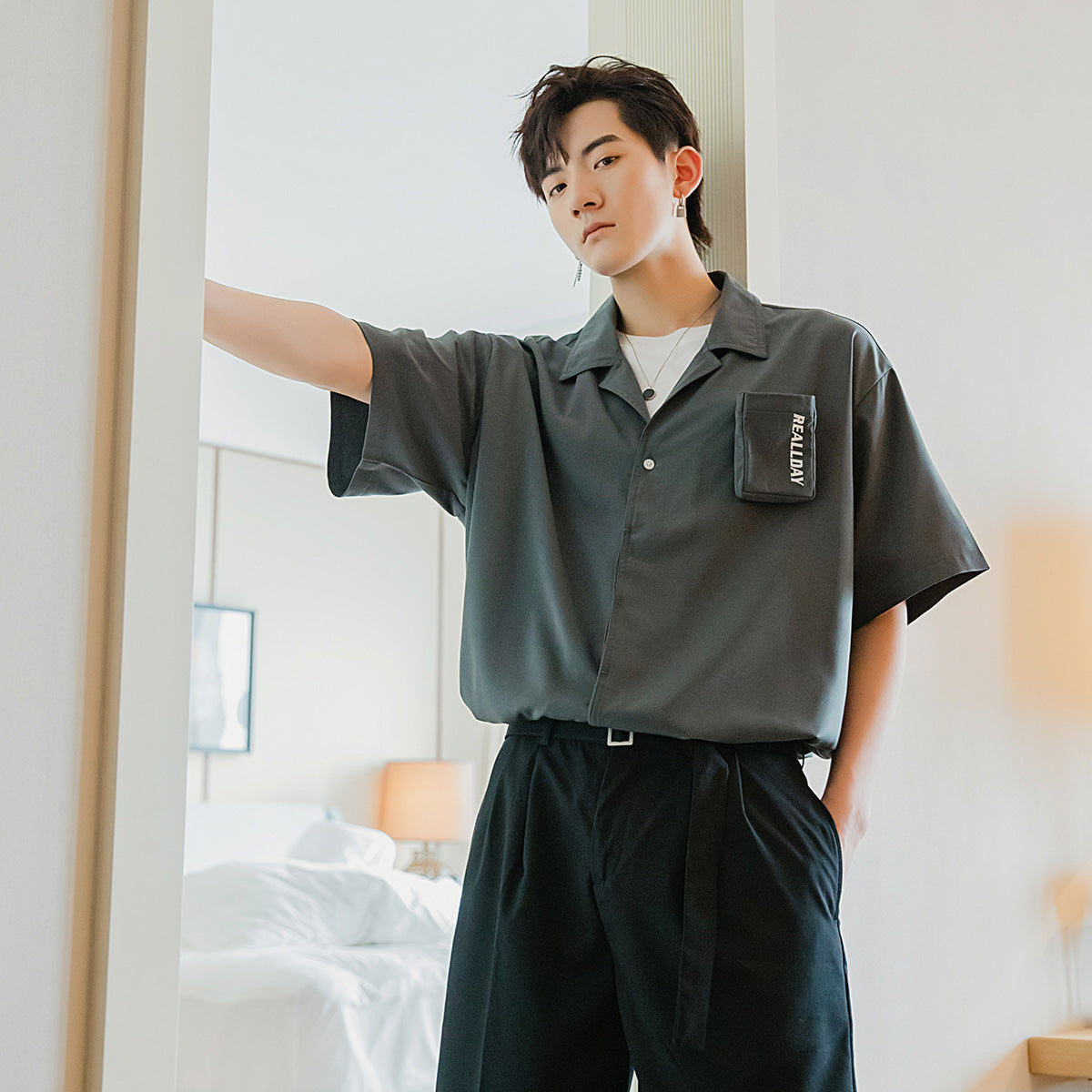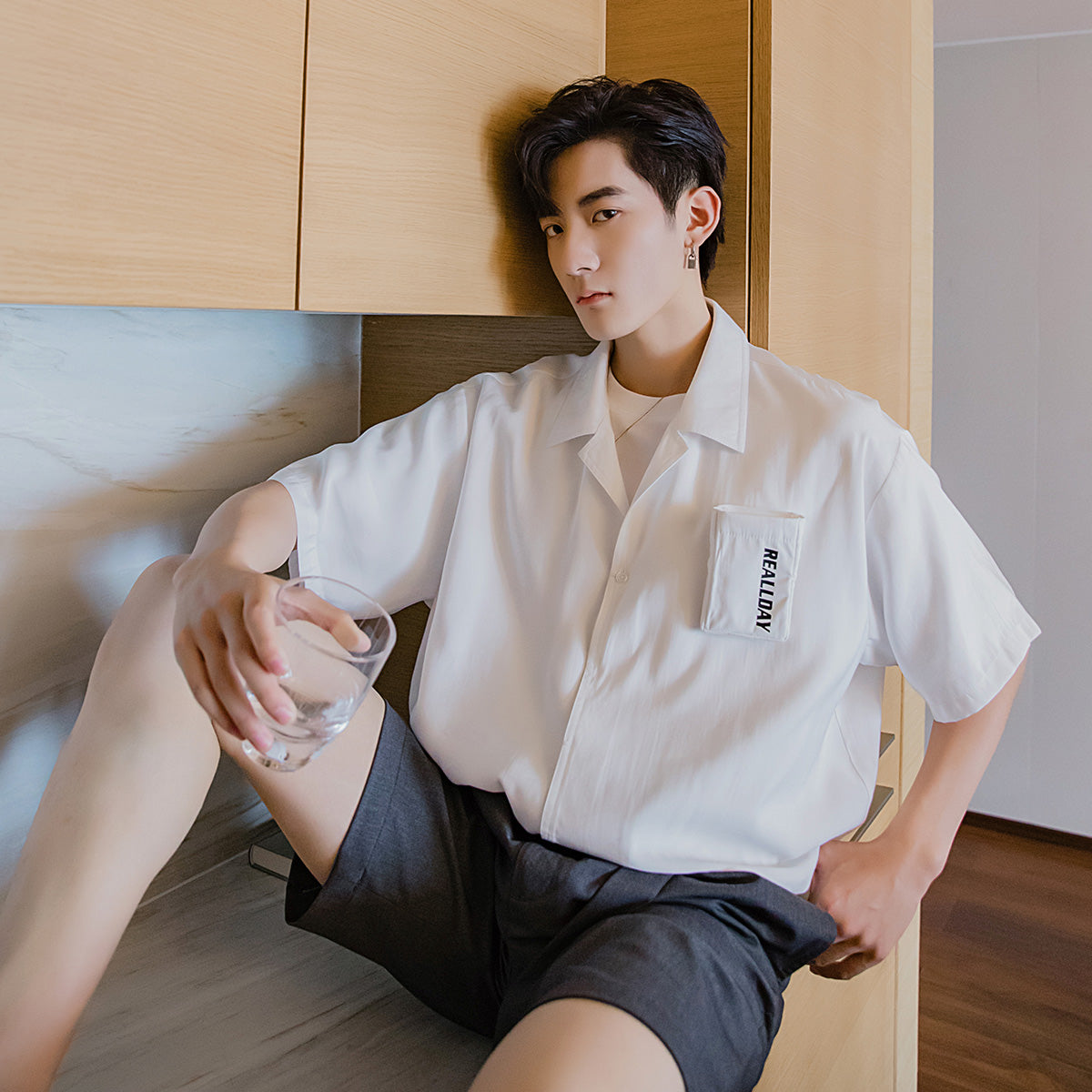 CHIC ERRO Chic Erro short-sleeved Cuban collar shirt male Korean version of the trend loose half-sleeved men's summer white shirt