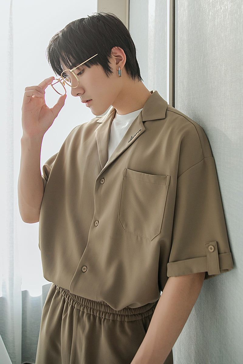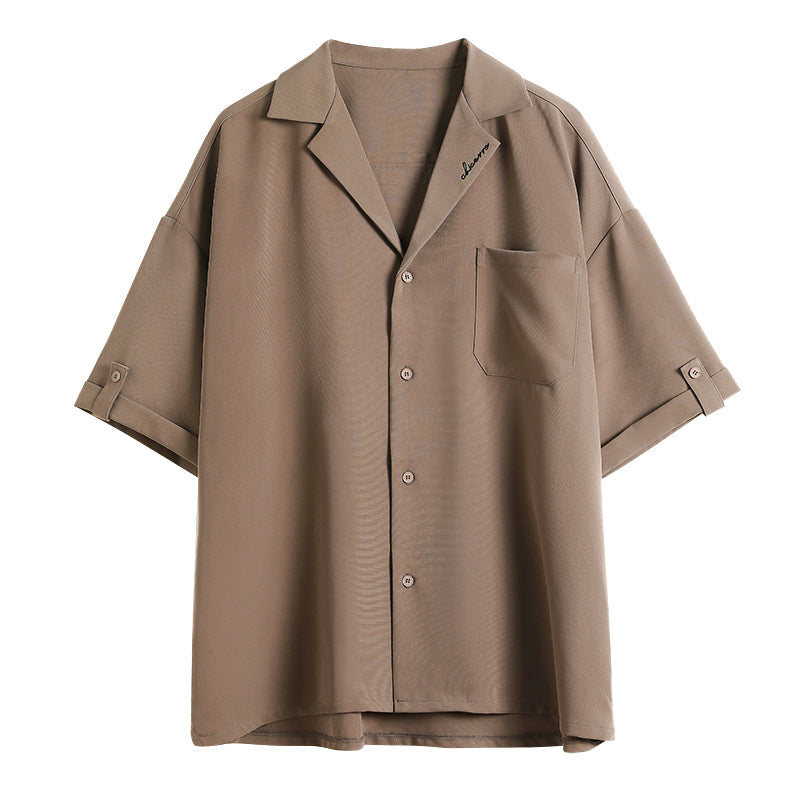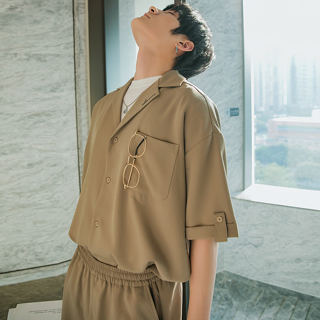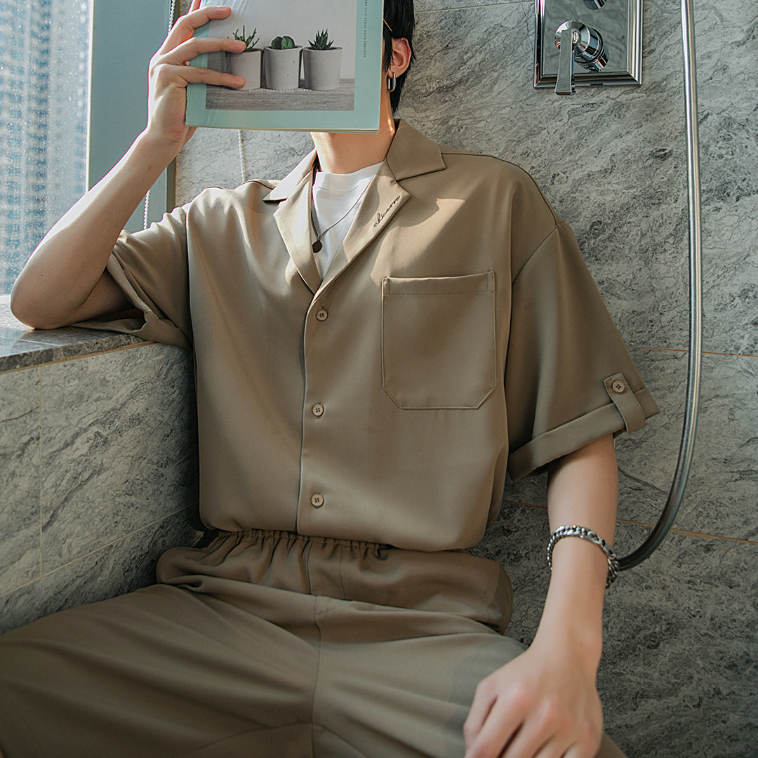 CHIC ERRO Chic Erro short-sleeved shirt men's summer thin loose men's non-iron can be worn outside suit collar embroidery top