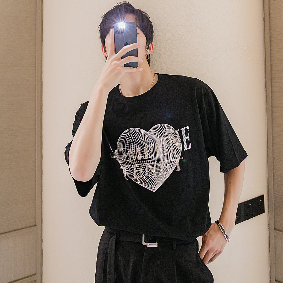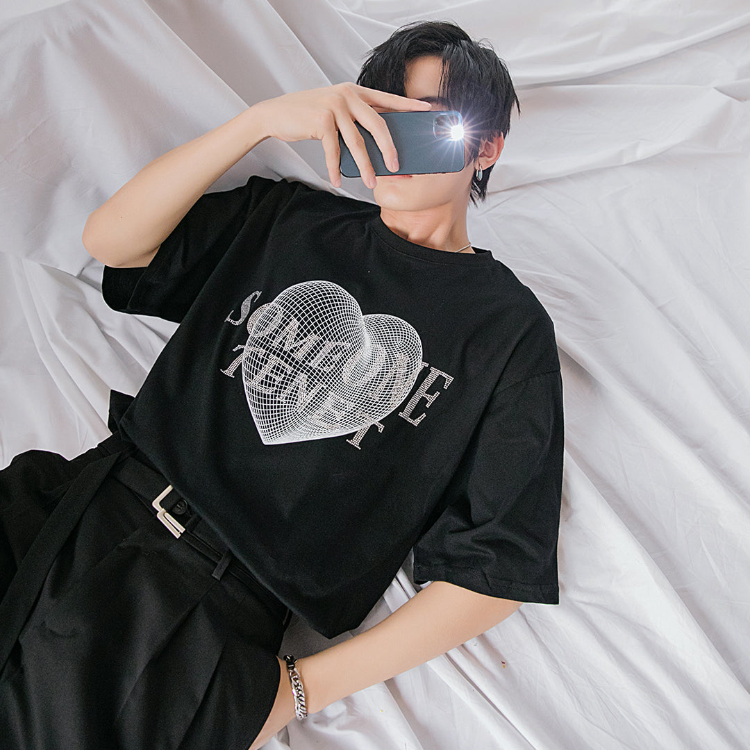 CHIC ERRO Chic Erro short-sleeved t-shirt men's 2021 new summer loose men's creative love printed t-shirt