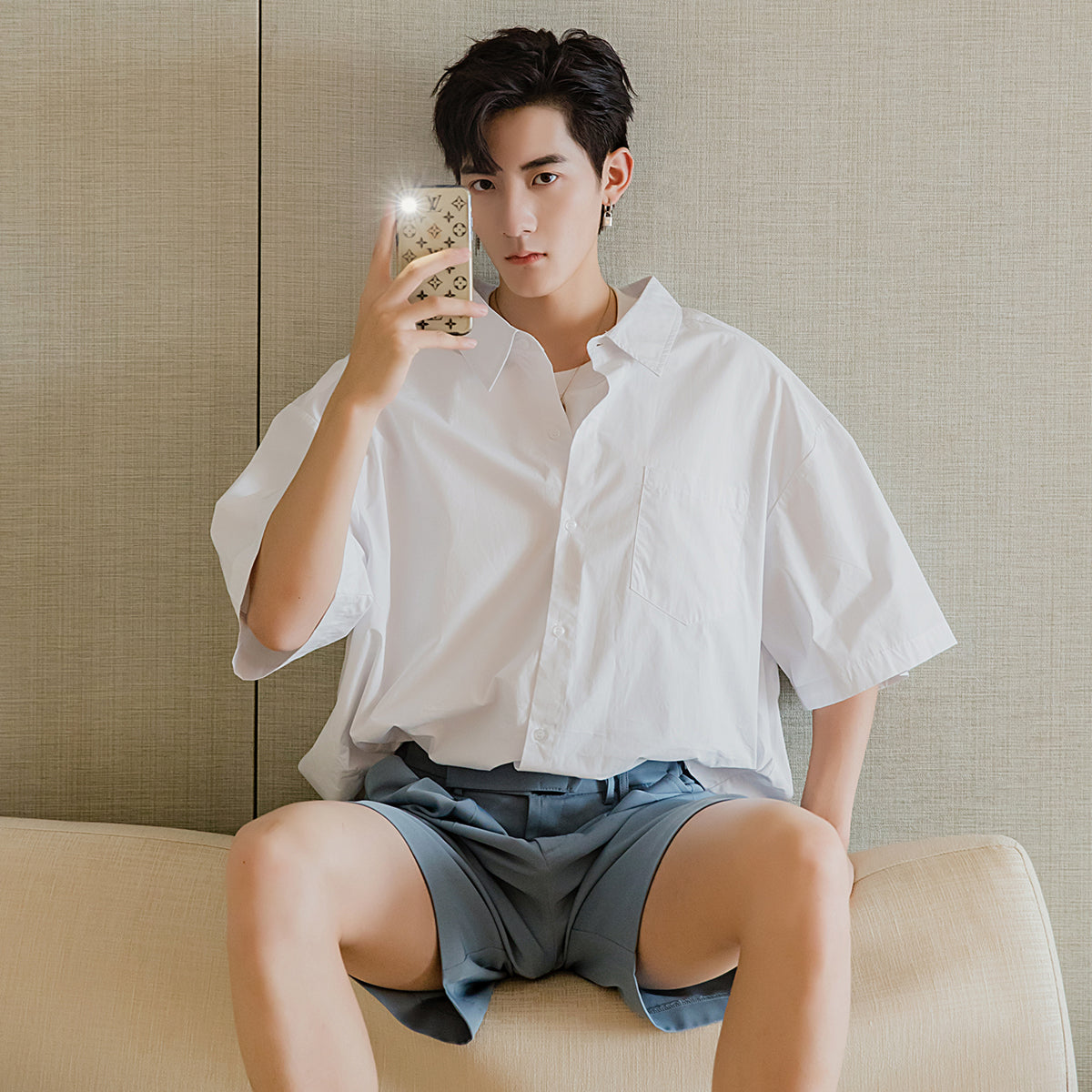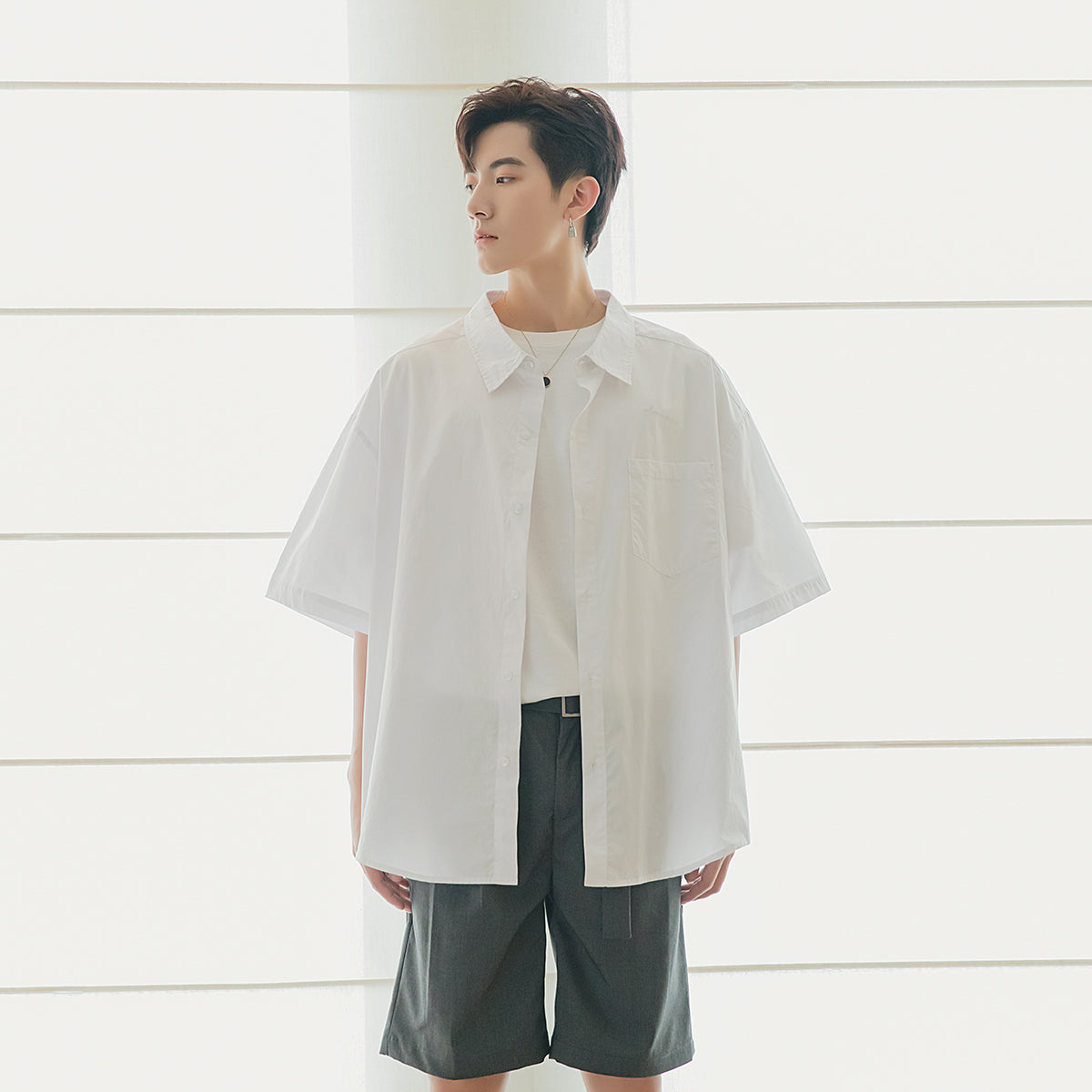 CHIC ERRO Chic Erro short-sleeved white shirt male Korean version of the trend five-point sleeve loose men's half-sleeved white shirt