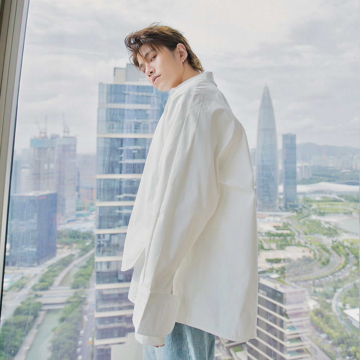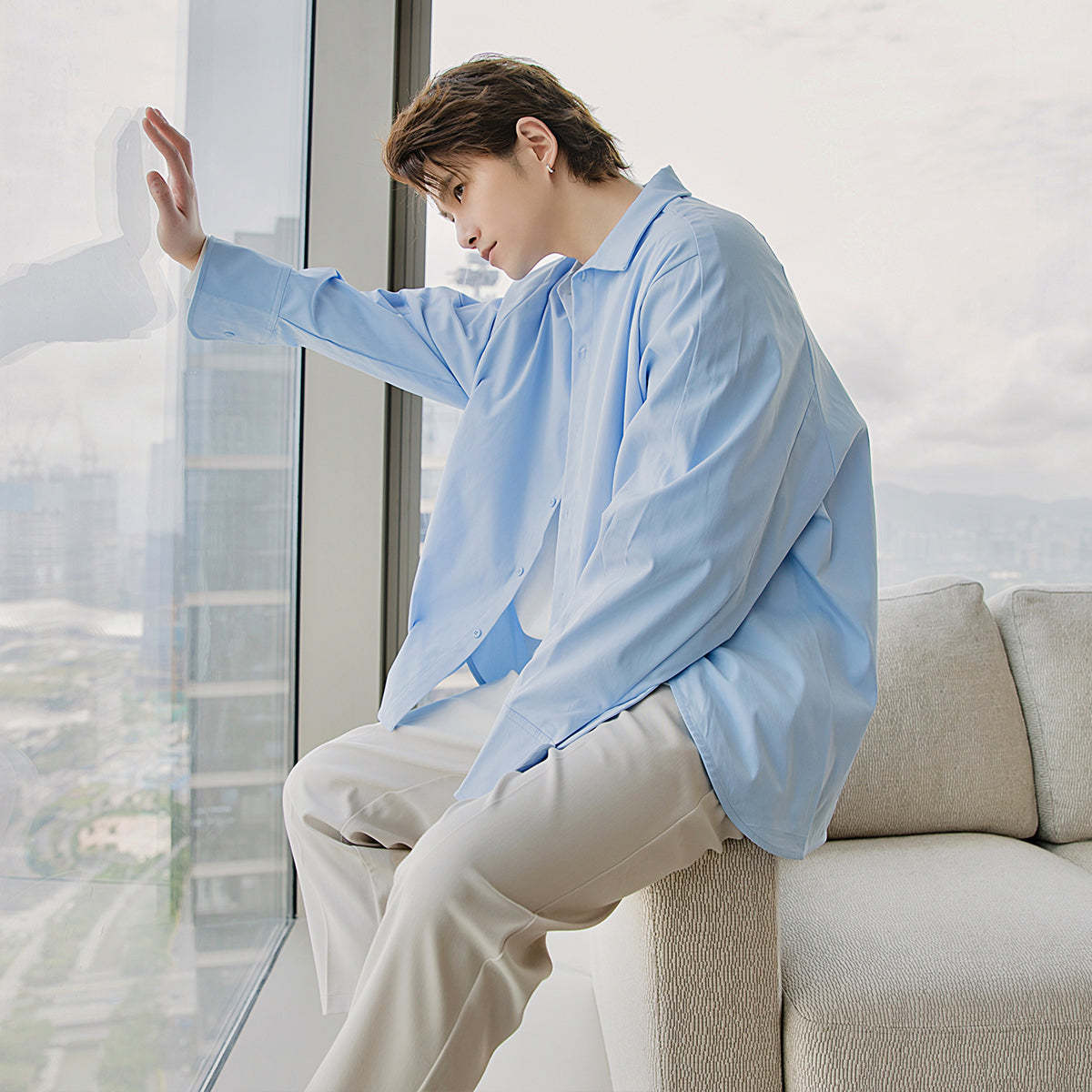 CHIC ERRO Chic Erro small fresh blue long-sleeved shirt male Korean style trend loose men's autumn shirt jacket