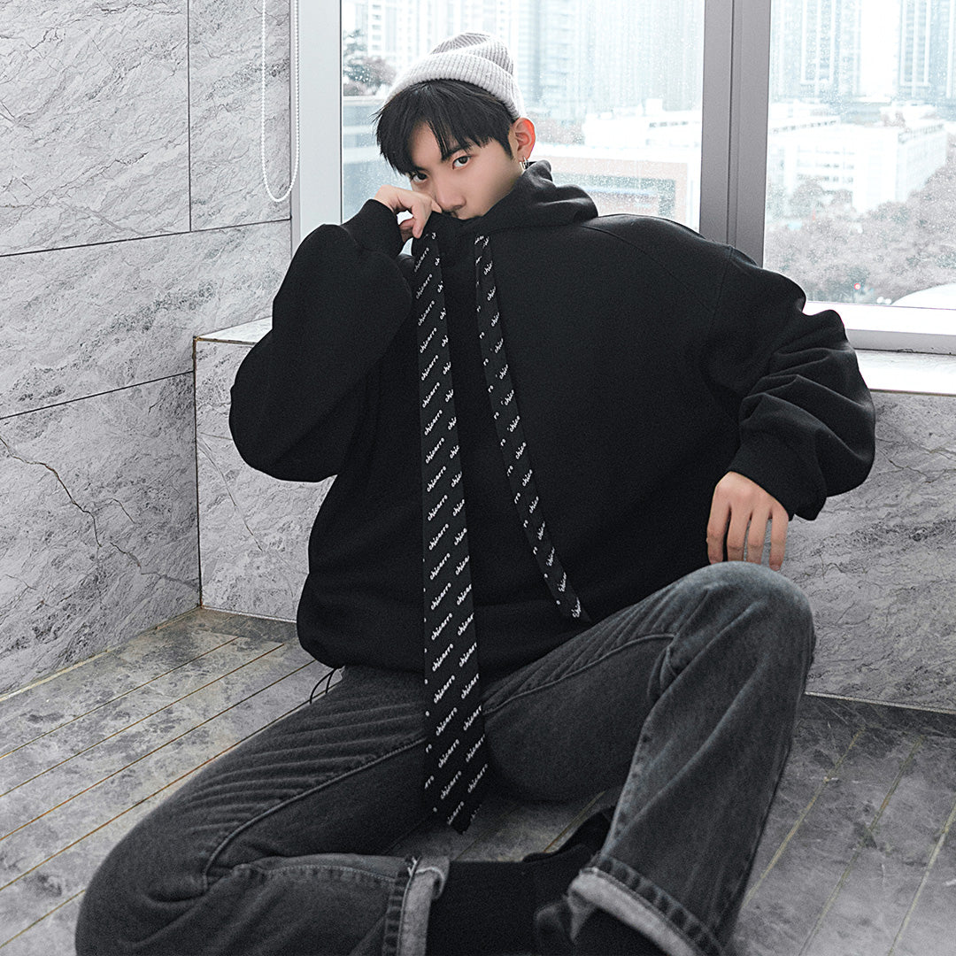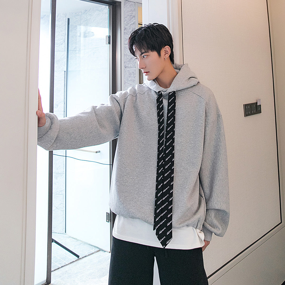 CHIC ERRO Chic Erro spring and autumn models handsome trendy fashion white shirt tie casual college wind sweater men's hood