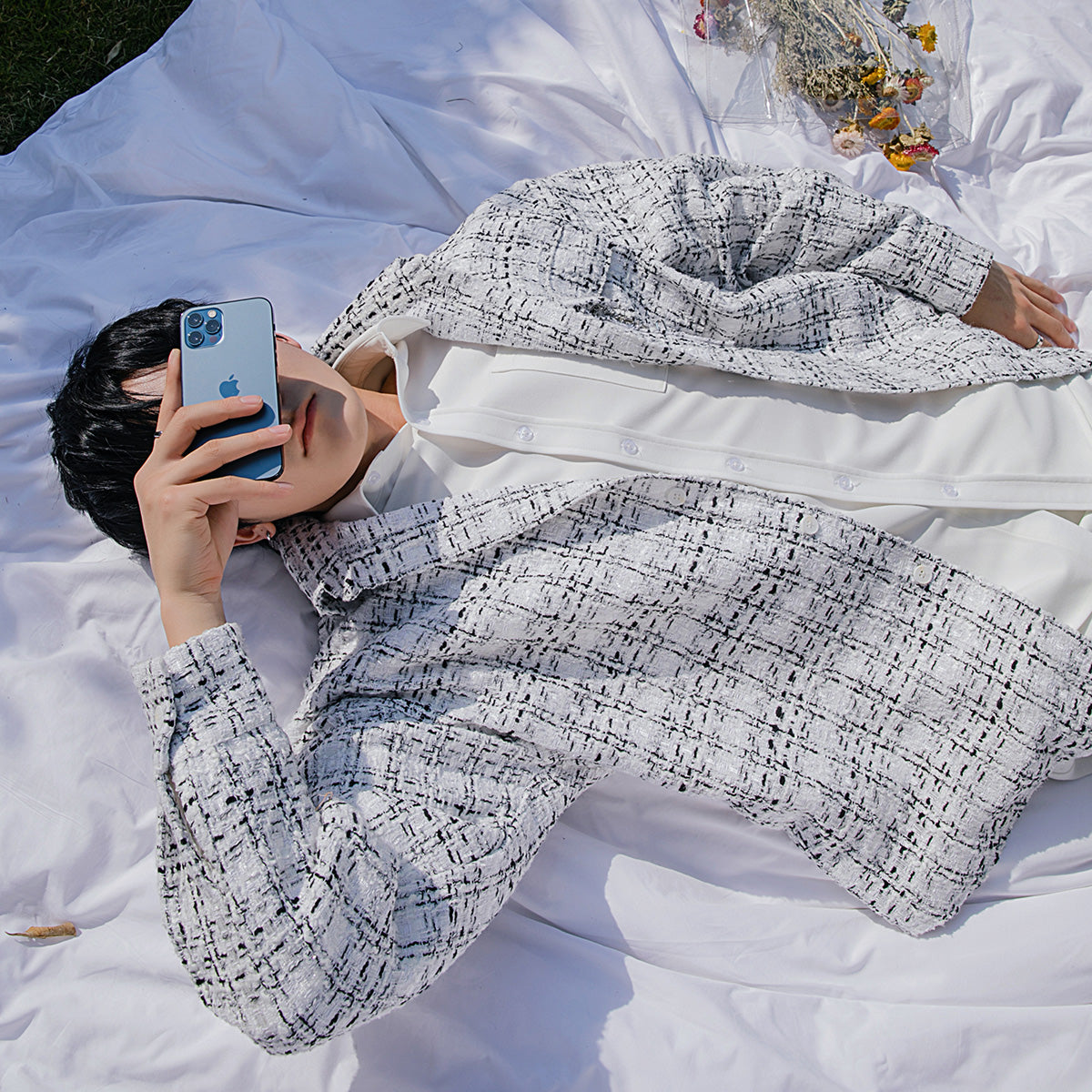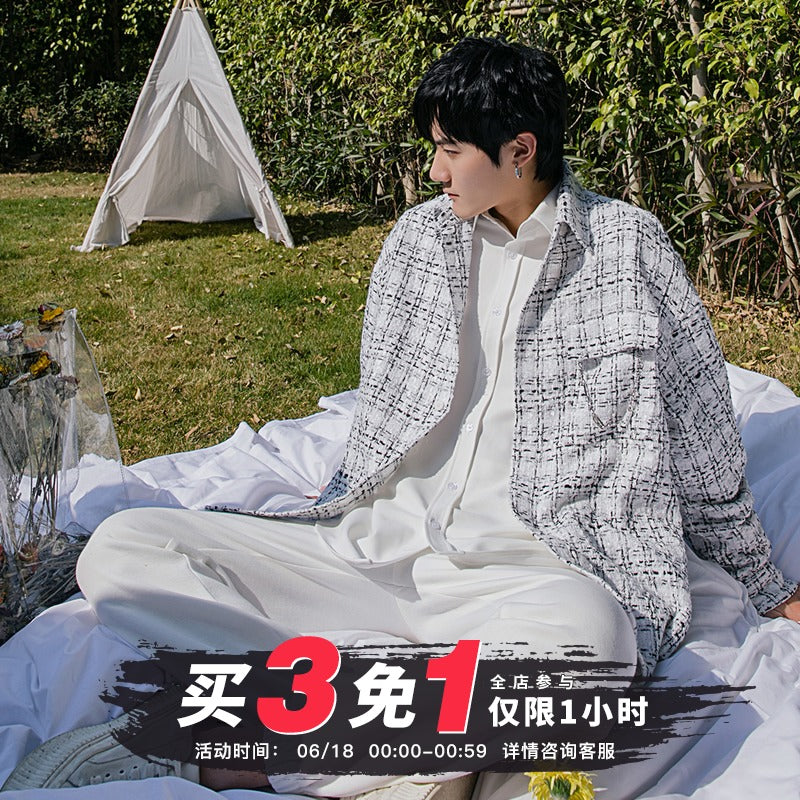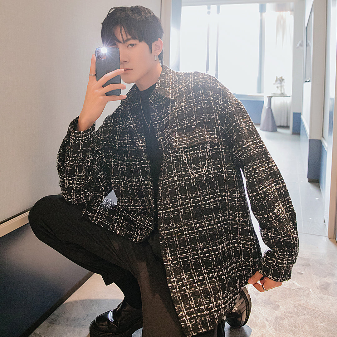CHIC ERRO Chic Erro spring and autumn style small fragrance style shirt men's long-sleeved casual Korean version of the trend loose shirt jacket
