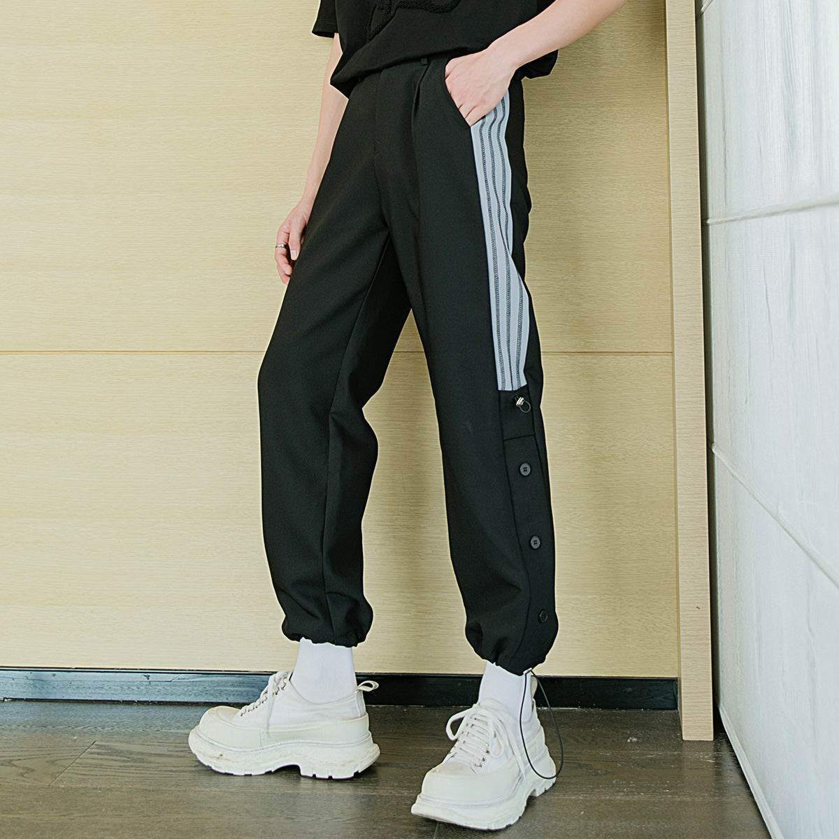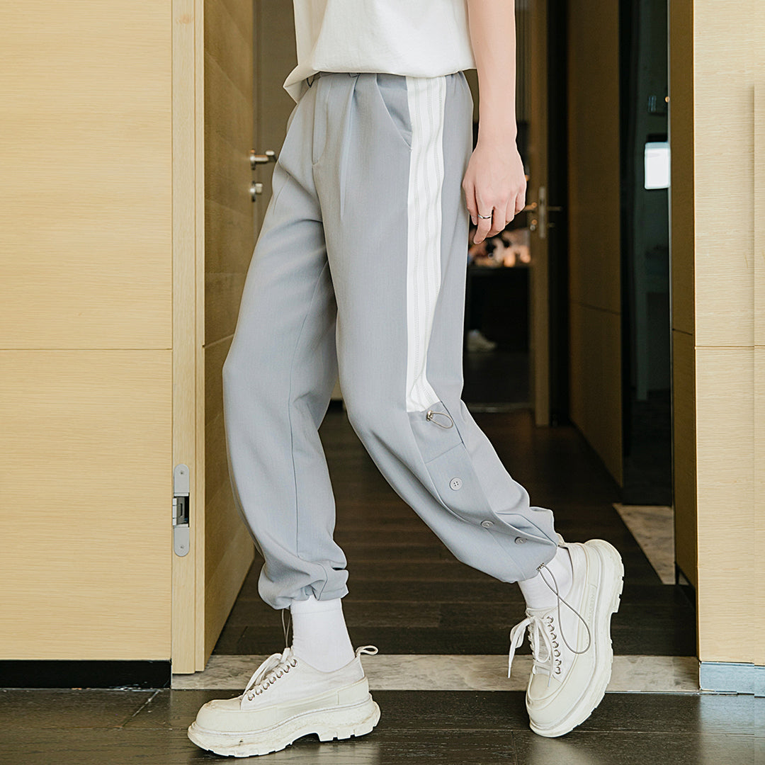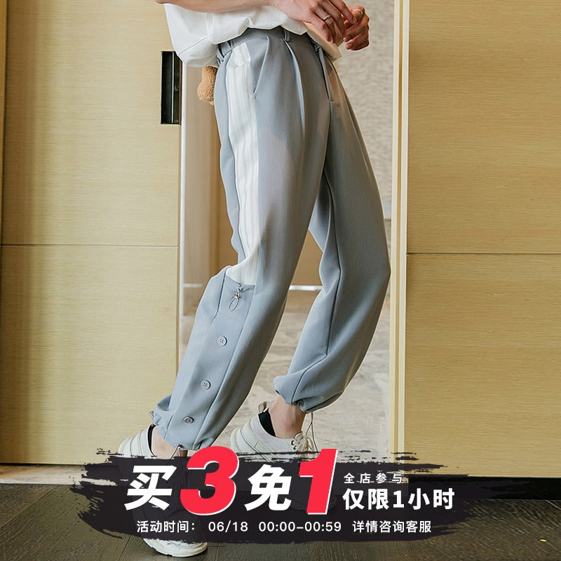 CHIC ERRO Chic Erro spring and autumn style splicing sports pants men's Korean version of the trend of all-match drawstring buckle pants
