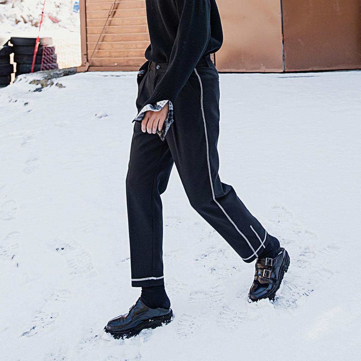 CHIC ERRO Chic Erro spring and autumn thick pants men's Korean version of the trend of men's loose straight open-line casual woolen trousers