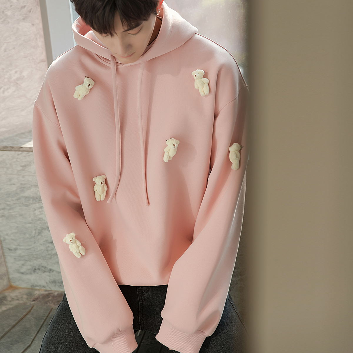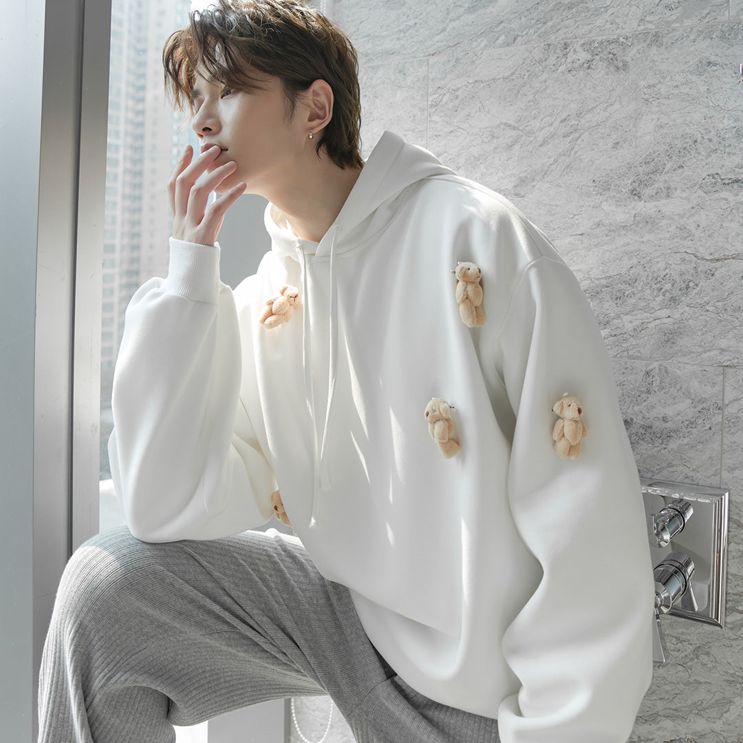 CHIC ERRO Chic Erro spring casual long-sleeved loose design cute three-dimensional white bear sweater men's hooded trend