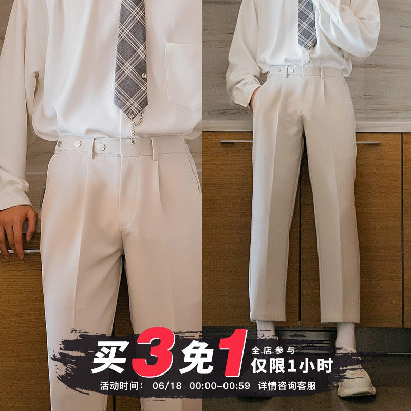 CHIC ERRO Chic Erro spring clothes new casual trousers loose wild straight-leg pants Korean style trendy drape nine-point pants men
