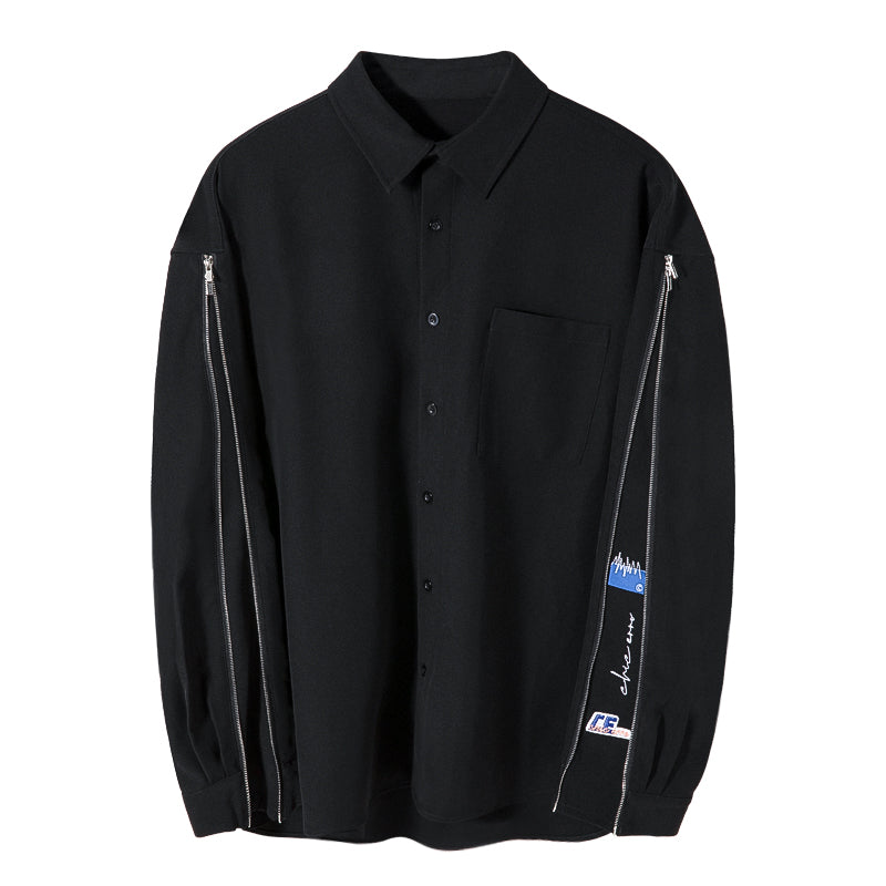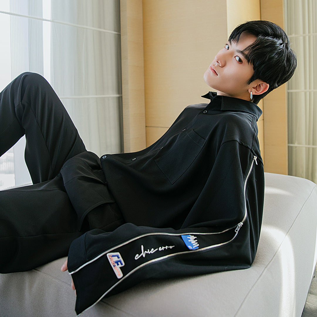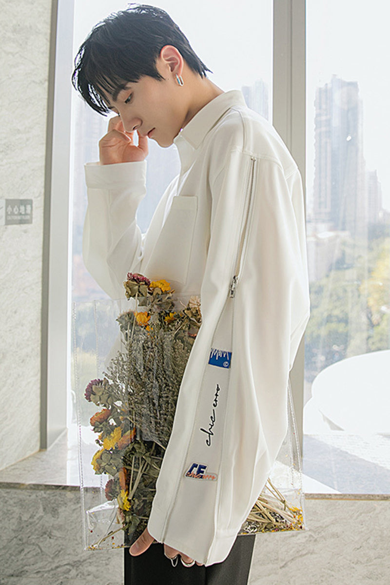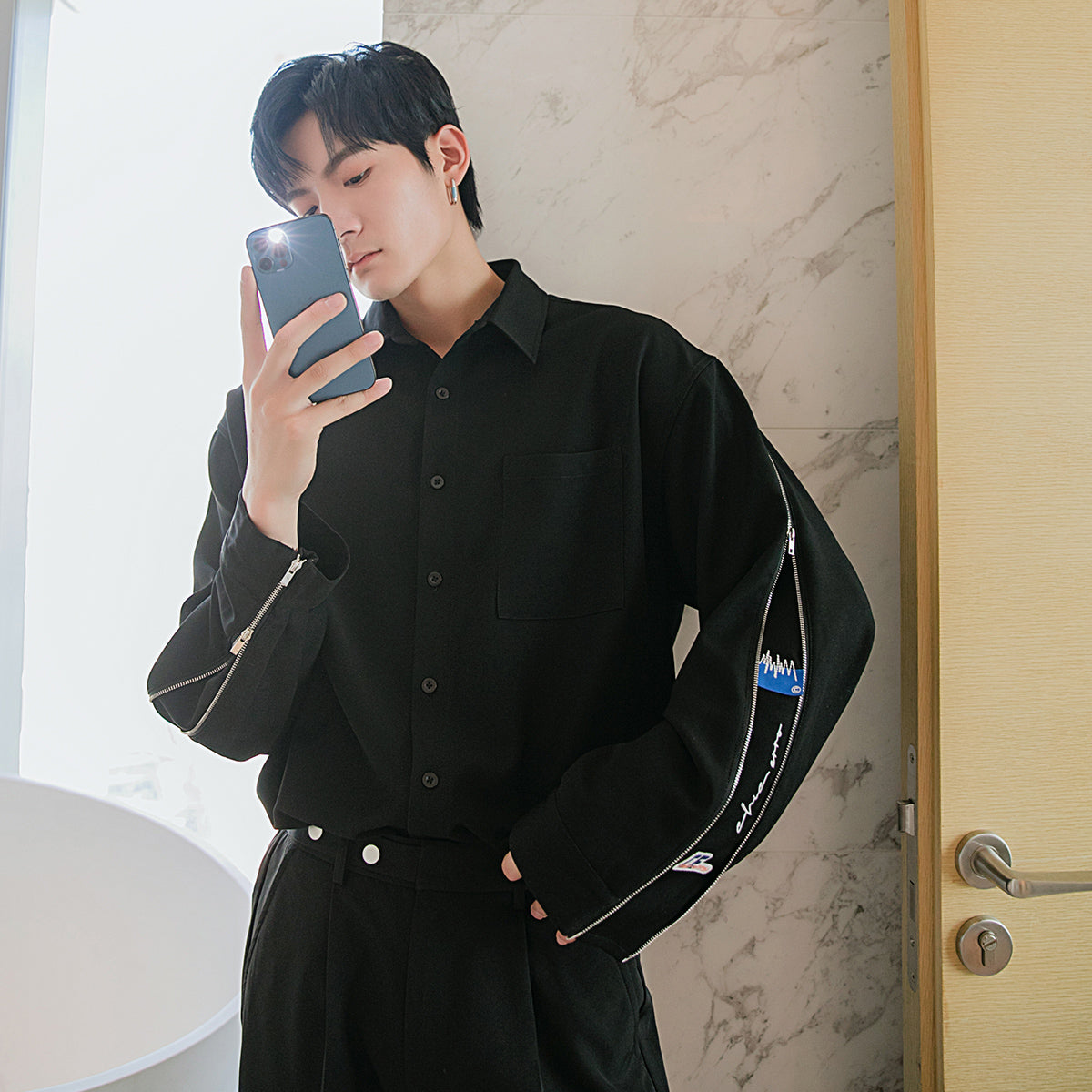 CHIC ERRO Chic Erro spring clothes new men's Korean version of the trendy white shirt zipper embroidery loose casual handsome long sleeves