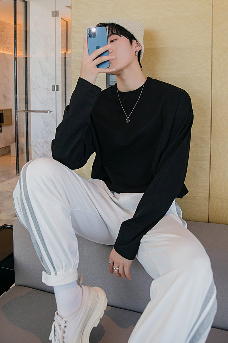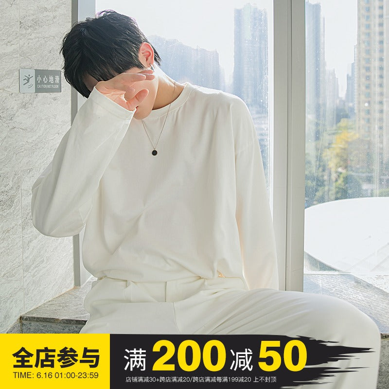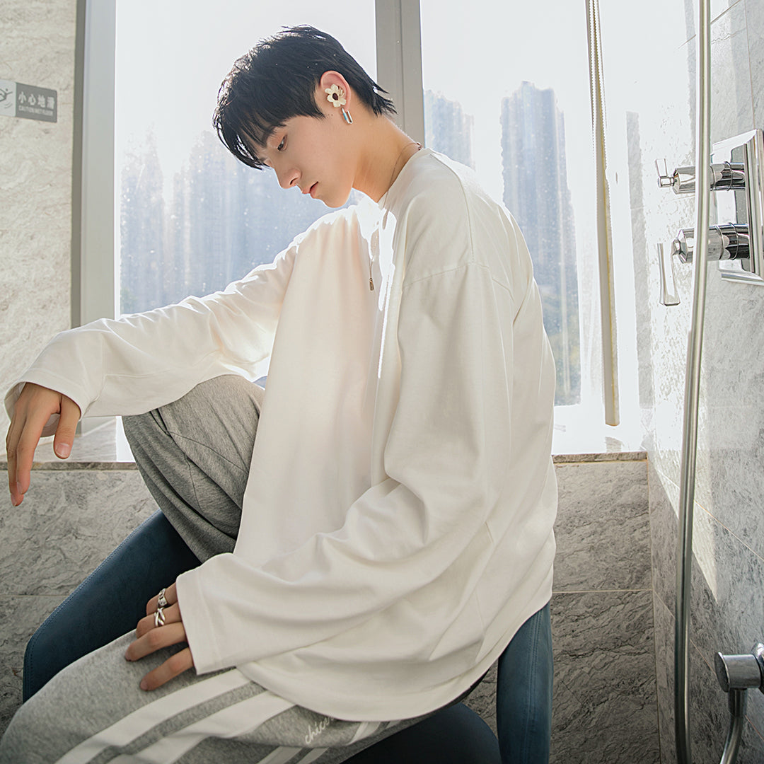 CHIC ERRO Chic Erro spring clothes new men's loose casual inner long-sleeved men's Korean style trendy round neck bottoming T-shirt