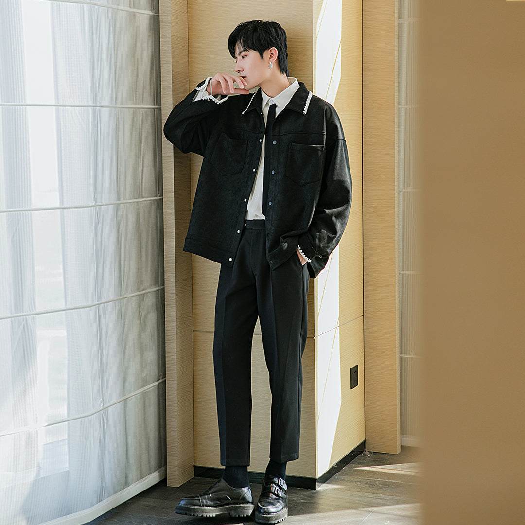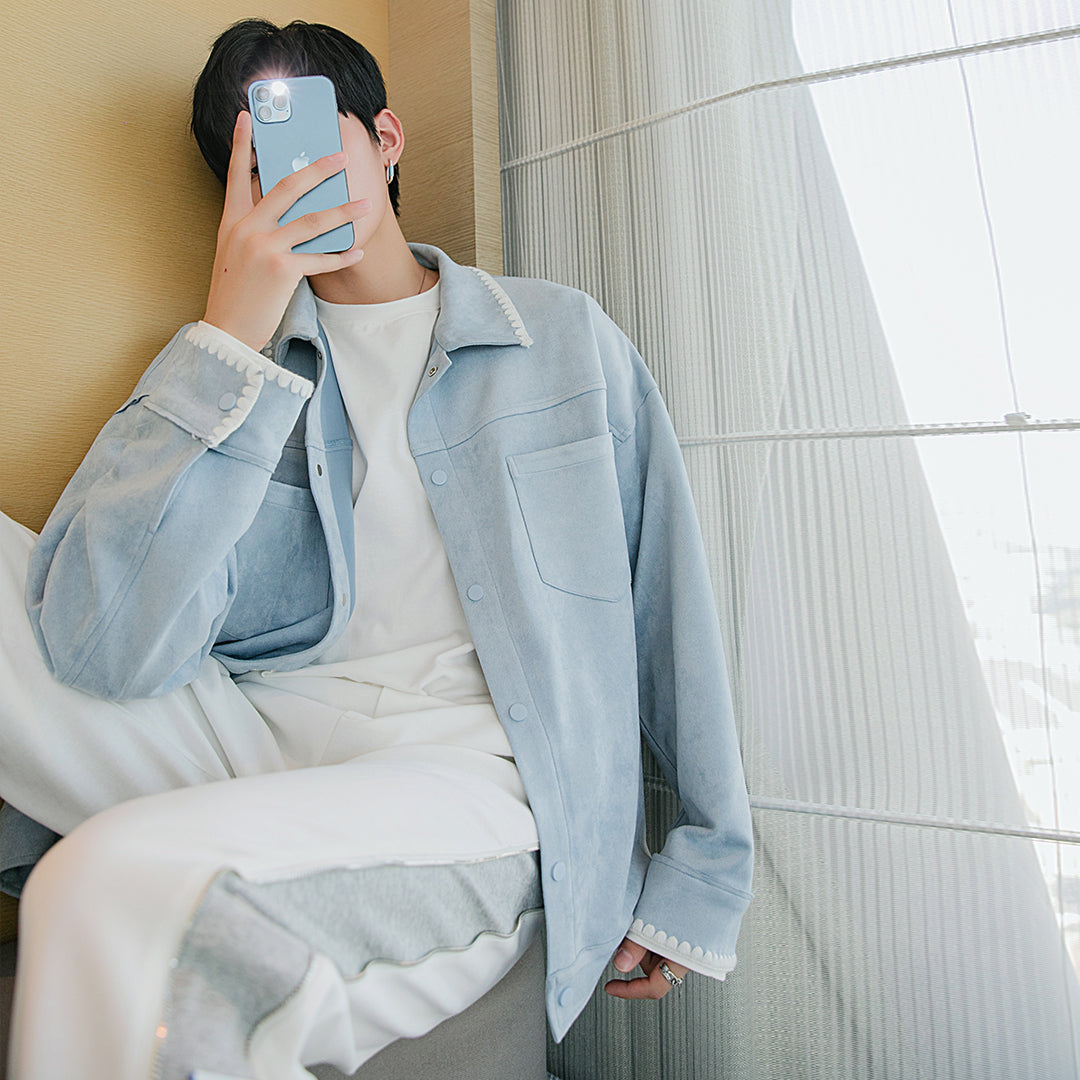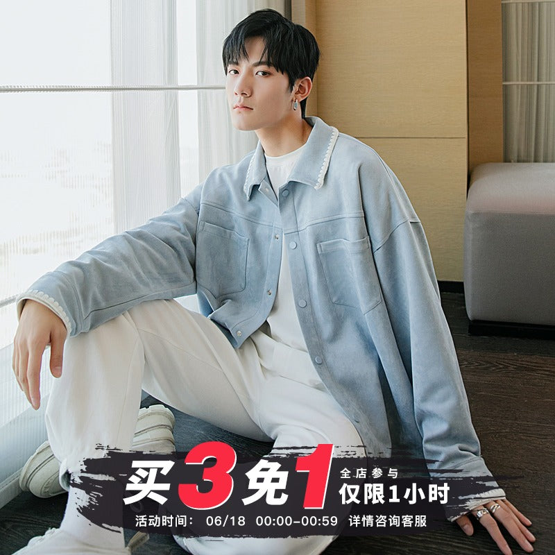 CHIC ERRO Chic Erro spring clothing new men's deerskin velvet thin contrast color casual jacket coat trend loose long sleeves