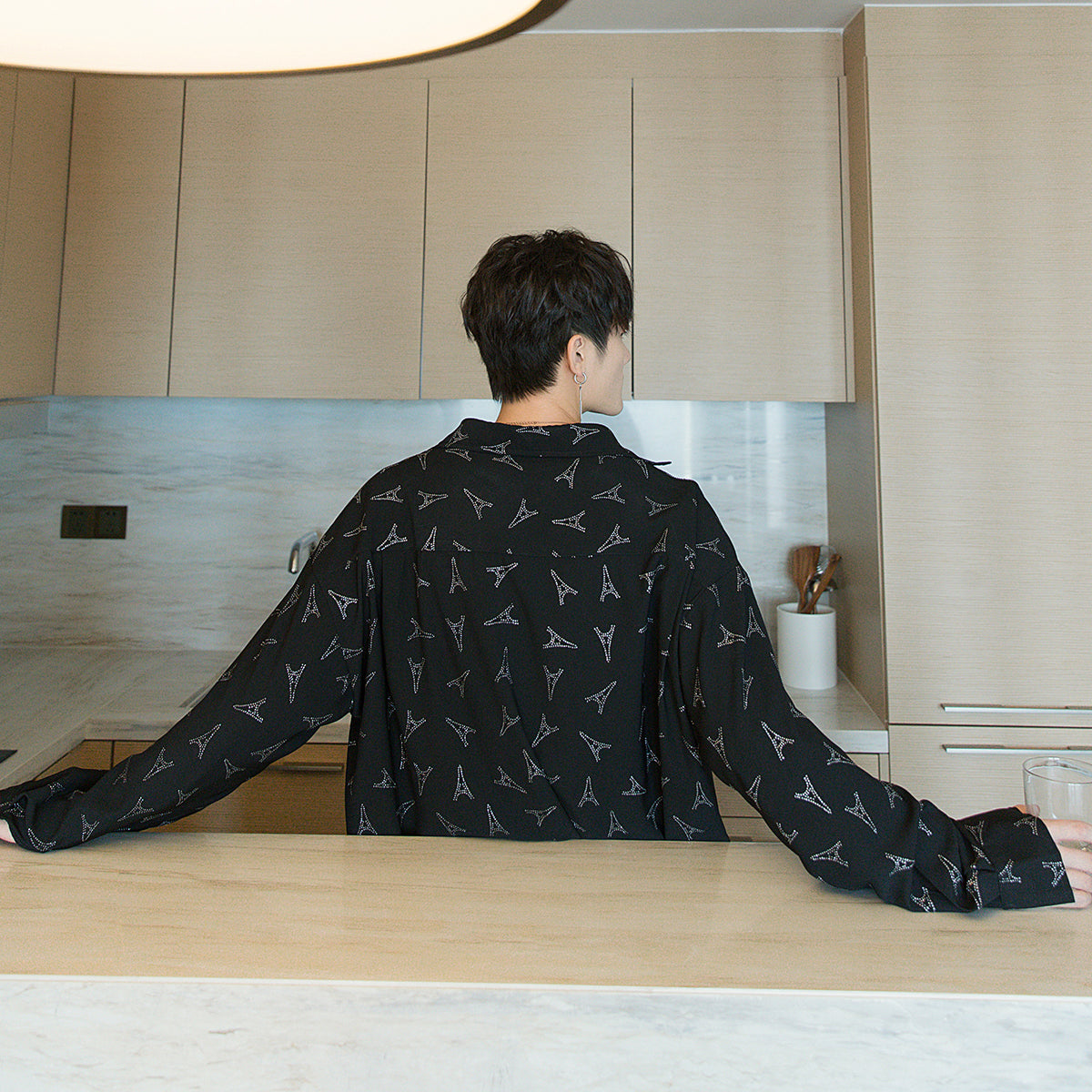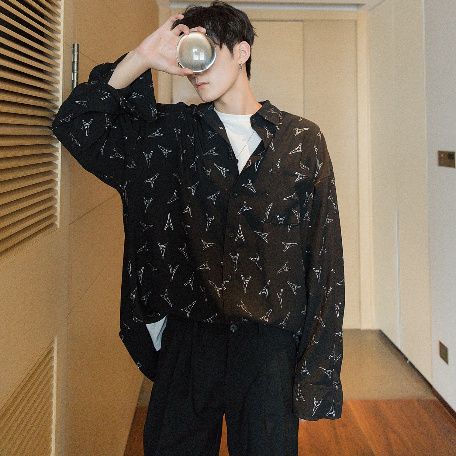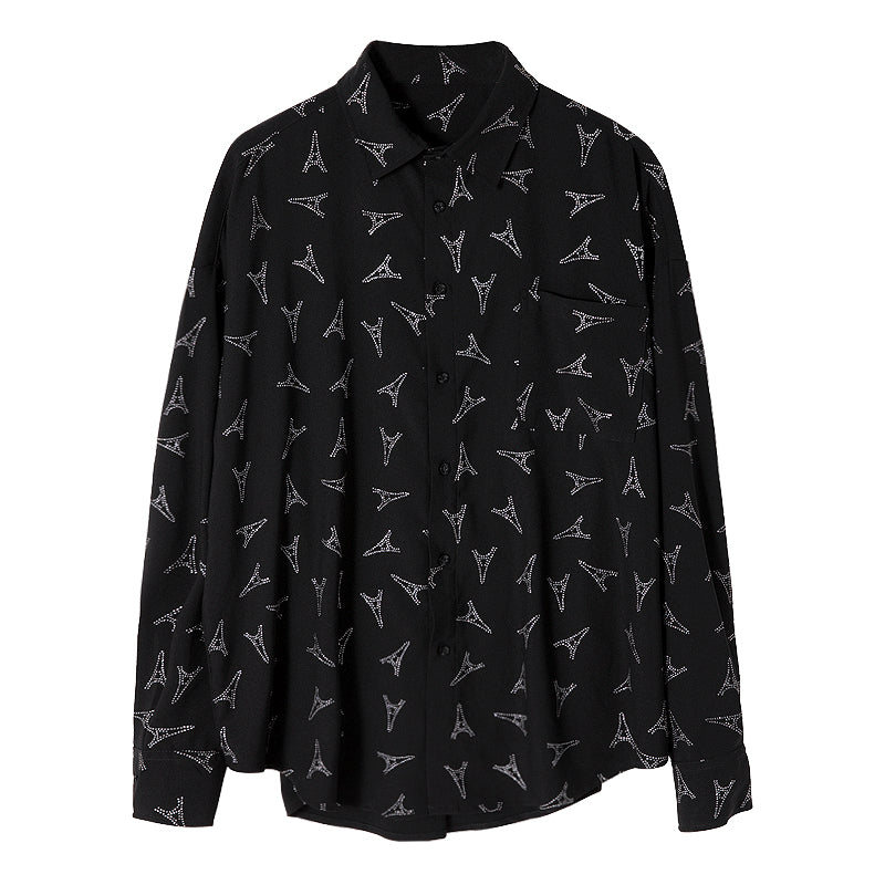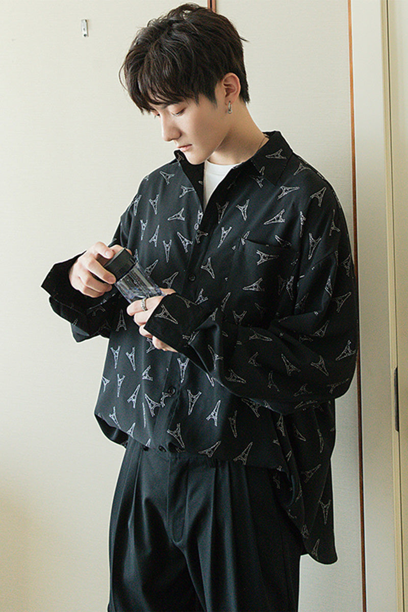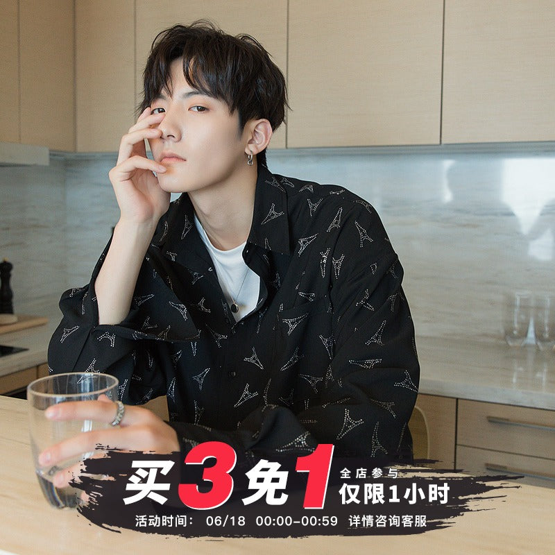 CHIC ERRO Chic Erro spring flower shirt male Korean version of the trend handsome men's loose black long-sleeved shirt jacket