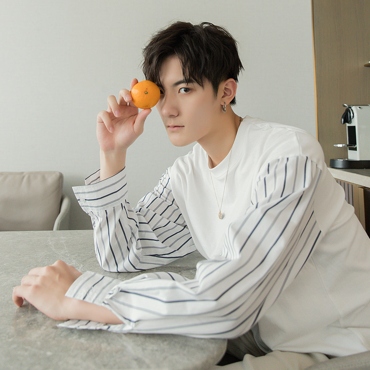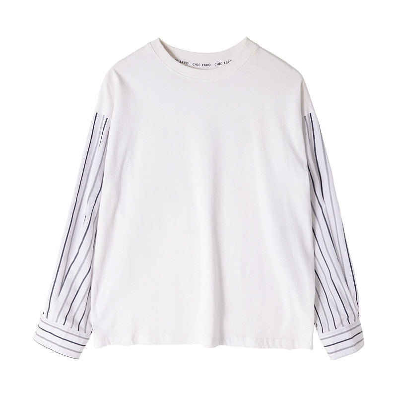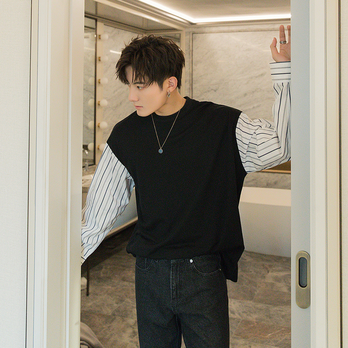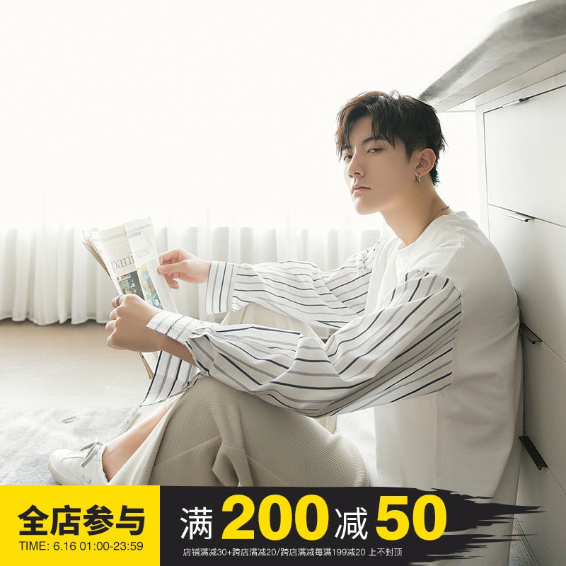 CHIC ERRO Chic Erro spring Korean men's shirt white bottoming shirt loose striped stitching long-sleeved T-shirt men