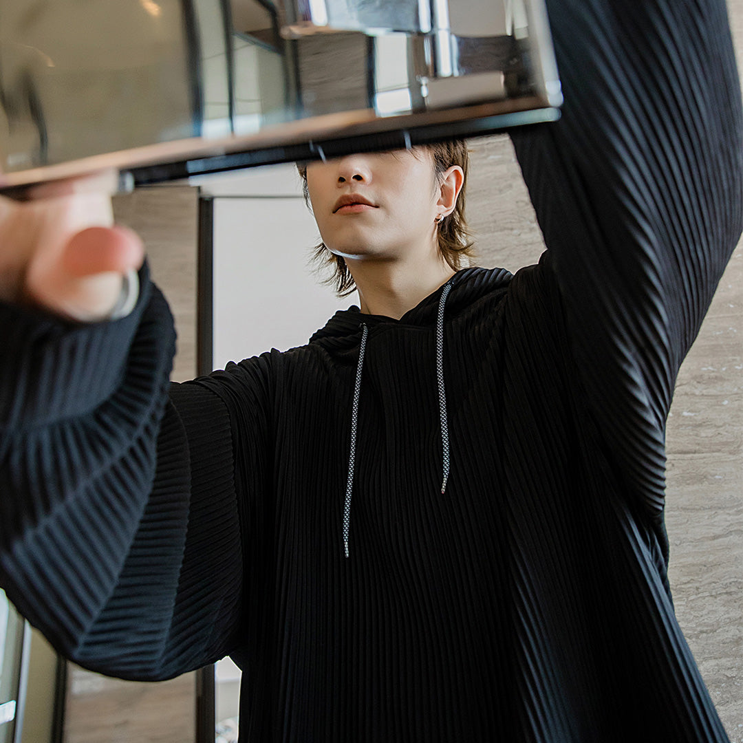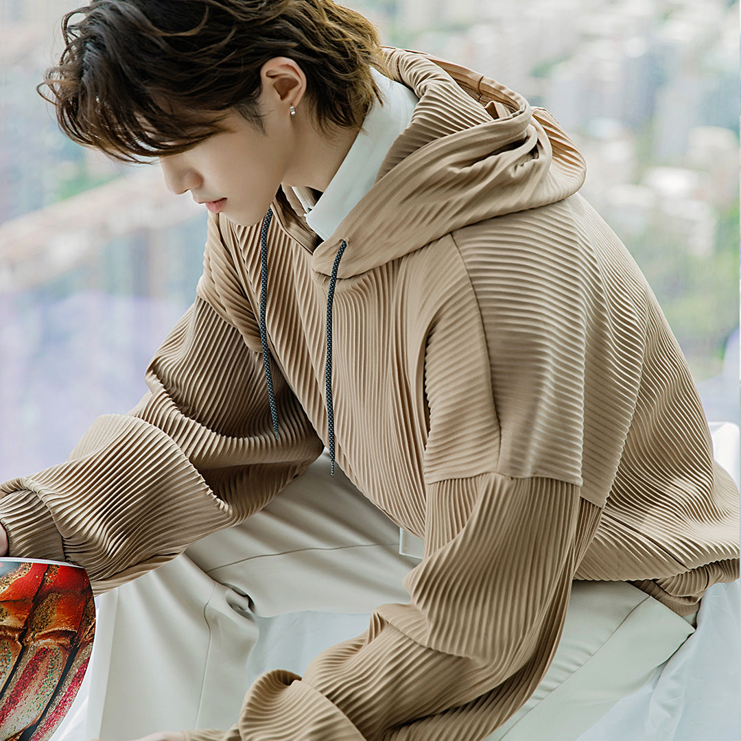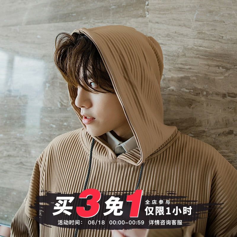 CHIC ERRO Chic Erro spring Korean style men's design sense niche tops loose pit striped hooded sweater men's trend