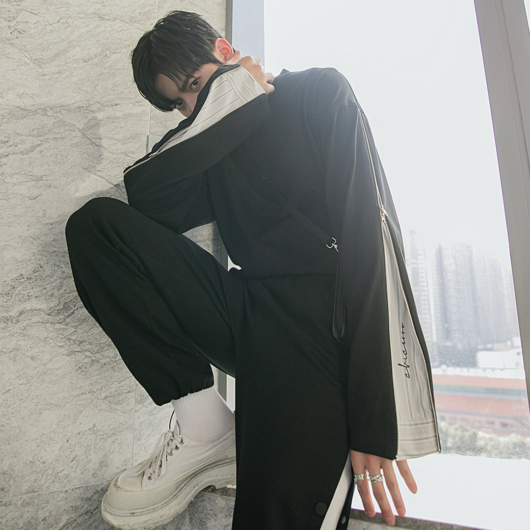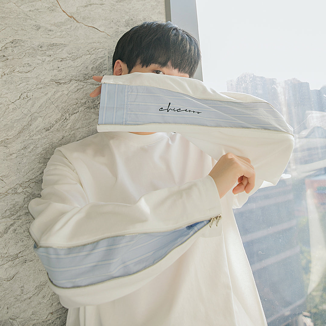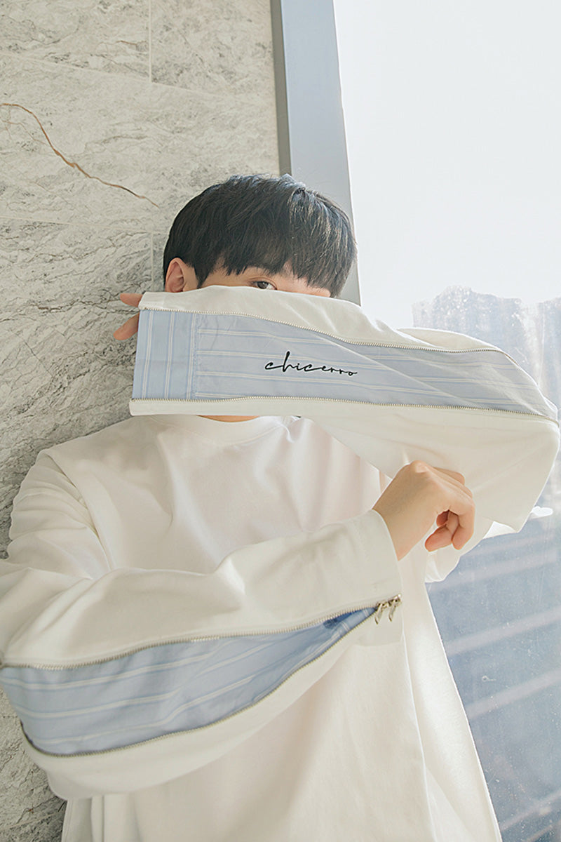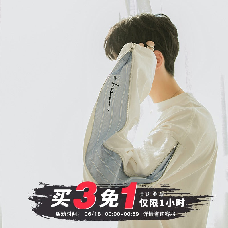 CHIC ERRO Chic Erro spring new hit color striped stitching pullover sweater men's zipper embroidery wild round neck long sleeves