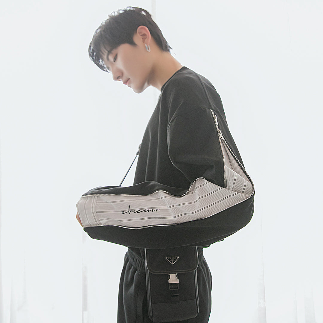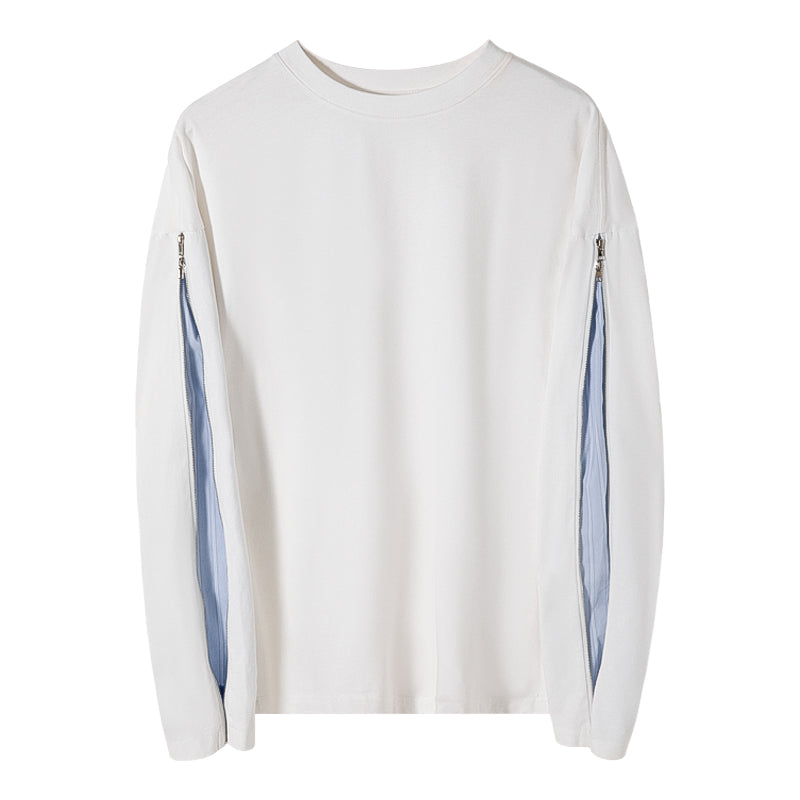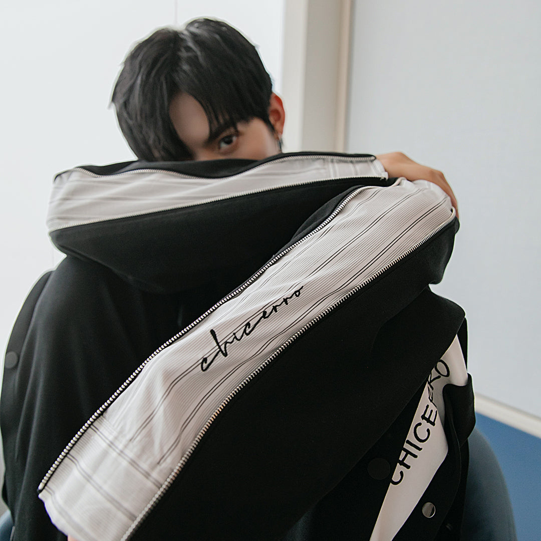 CHIC ERRO Chic Erro spring new hit color striped stitching pullover sweater men's zipper embroidery wild round neck long sleeves