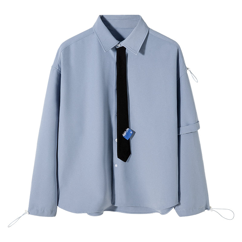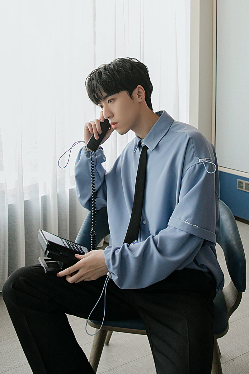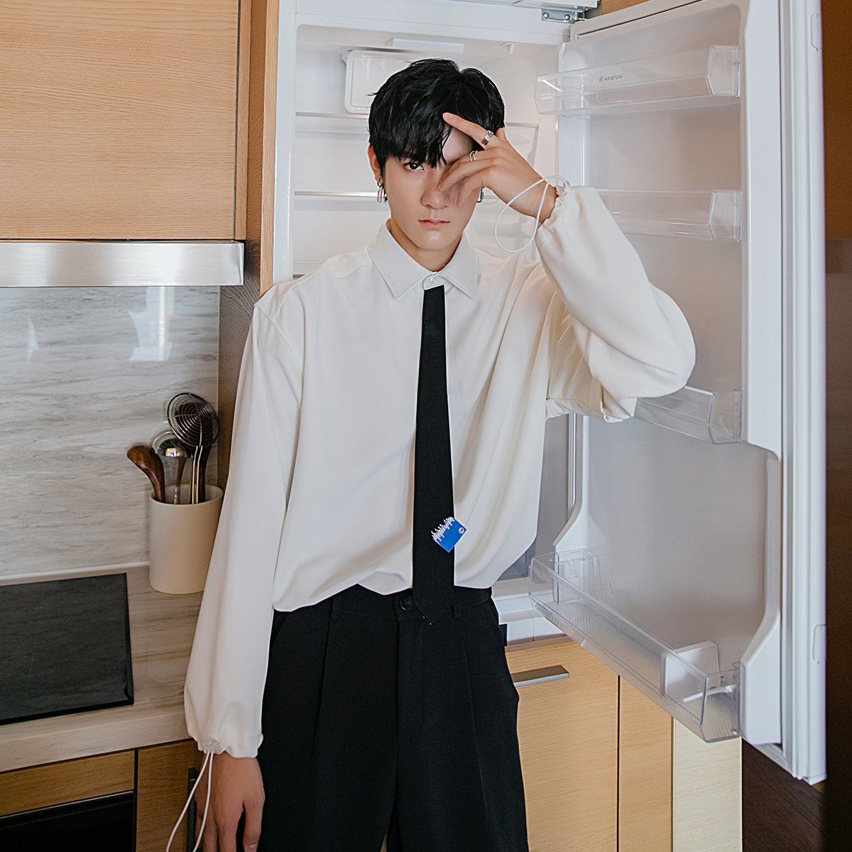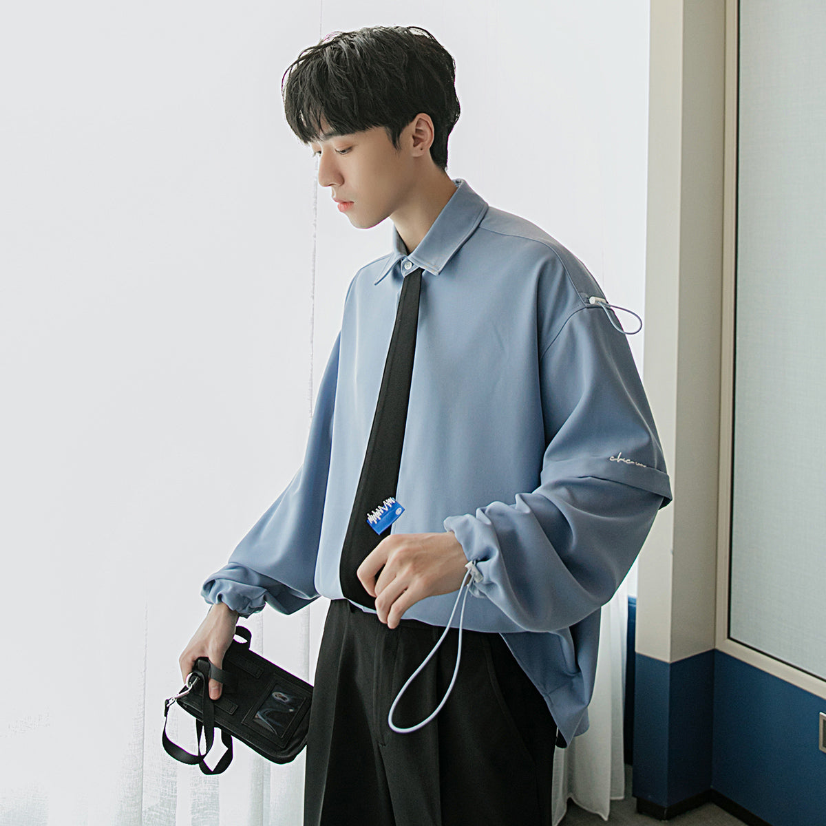 CHIC ERRO Chic Erro spring new style college style tie shirt male fake two-piece stitching letter embroidery Korean handsome
