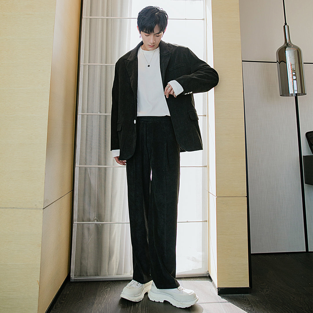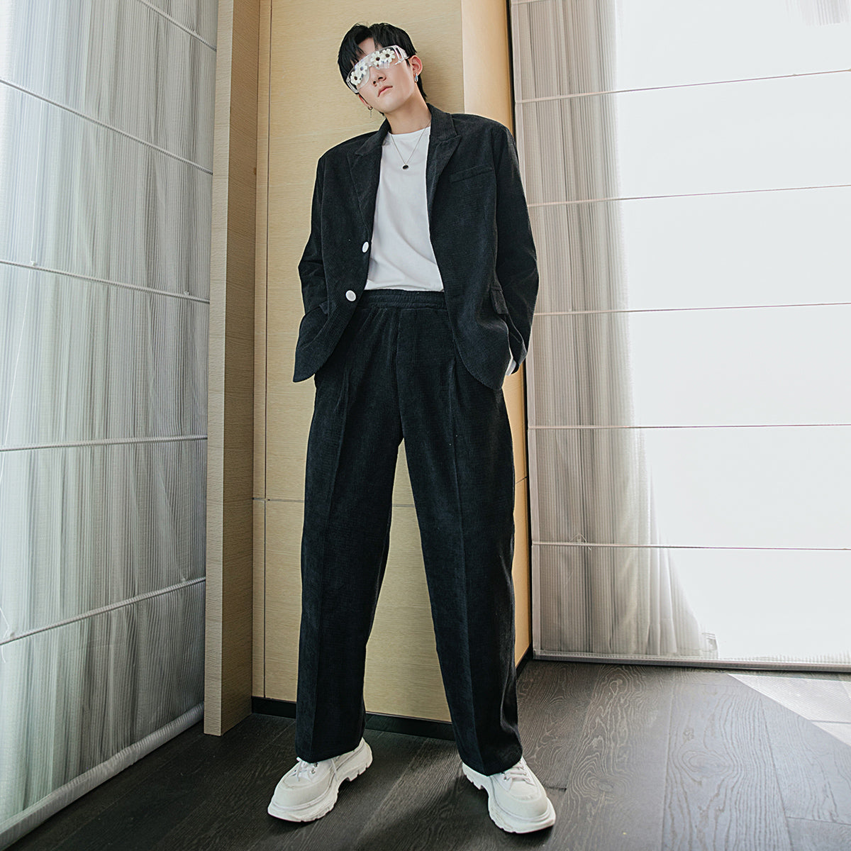 CHIC ERRO Chic Erro spring new style youth Korean handsome corduroy casual suit straight trousers two-piece suit