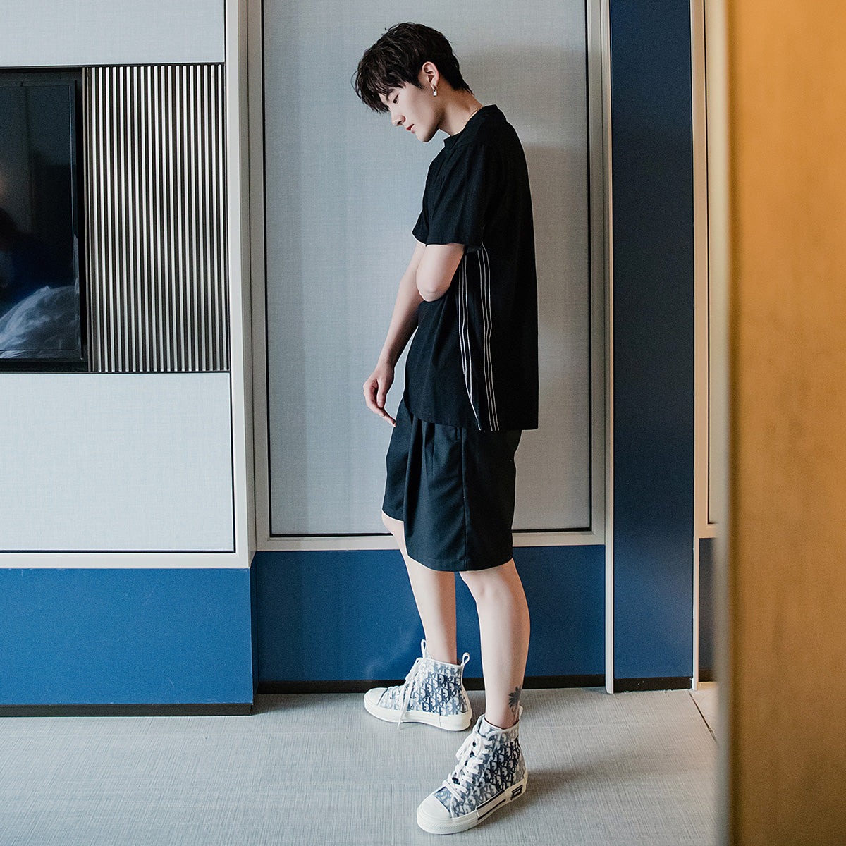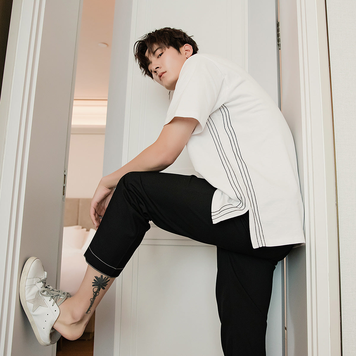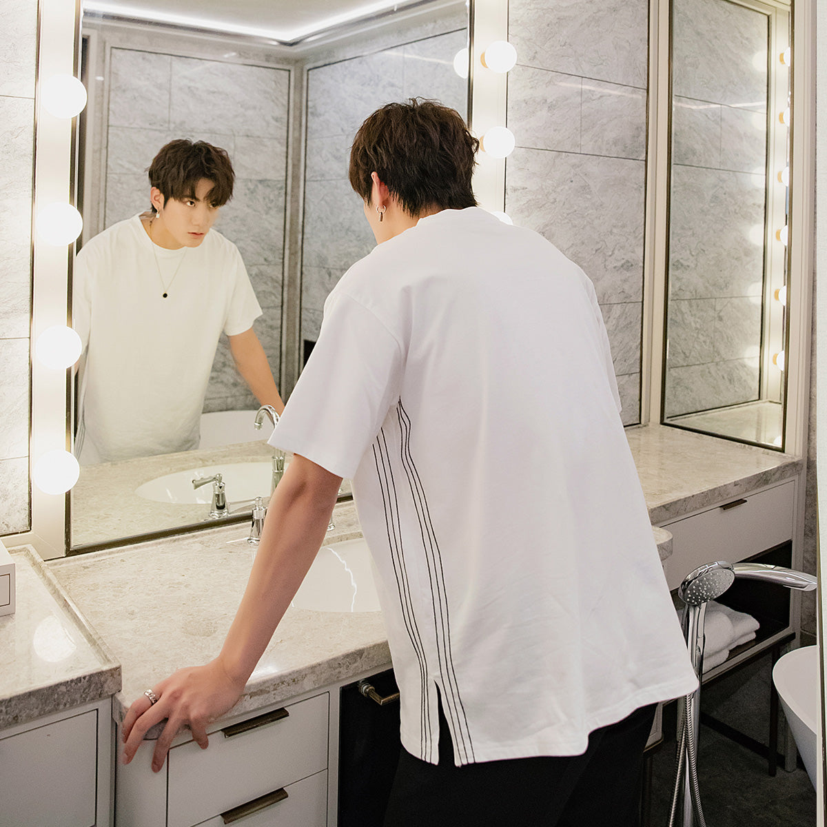 CHIC ERRO Chic Erro spring wear white short-sleeved men's tide brand trend men's loose open-line five-point sleeve t-shirt