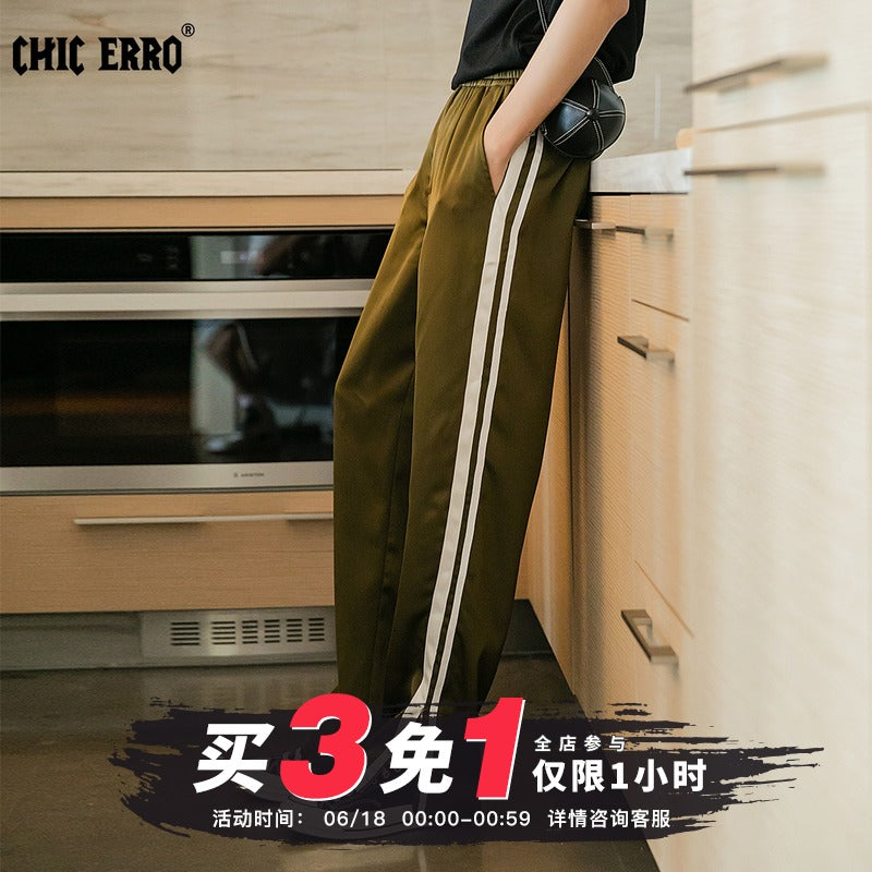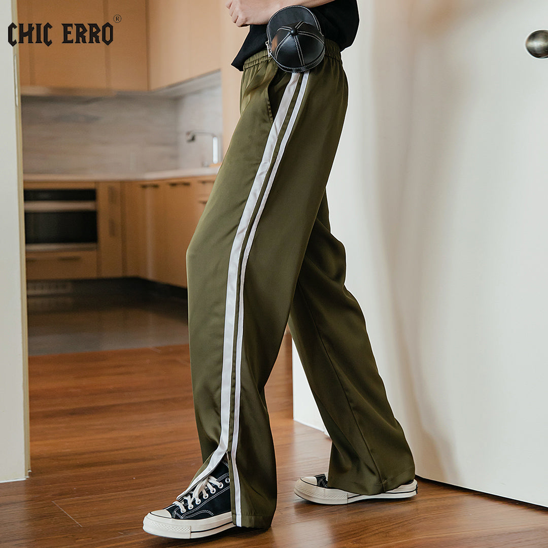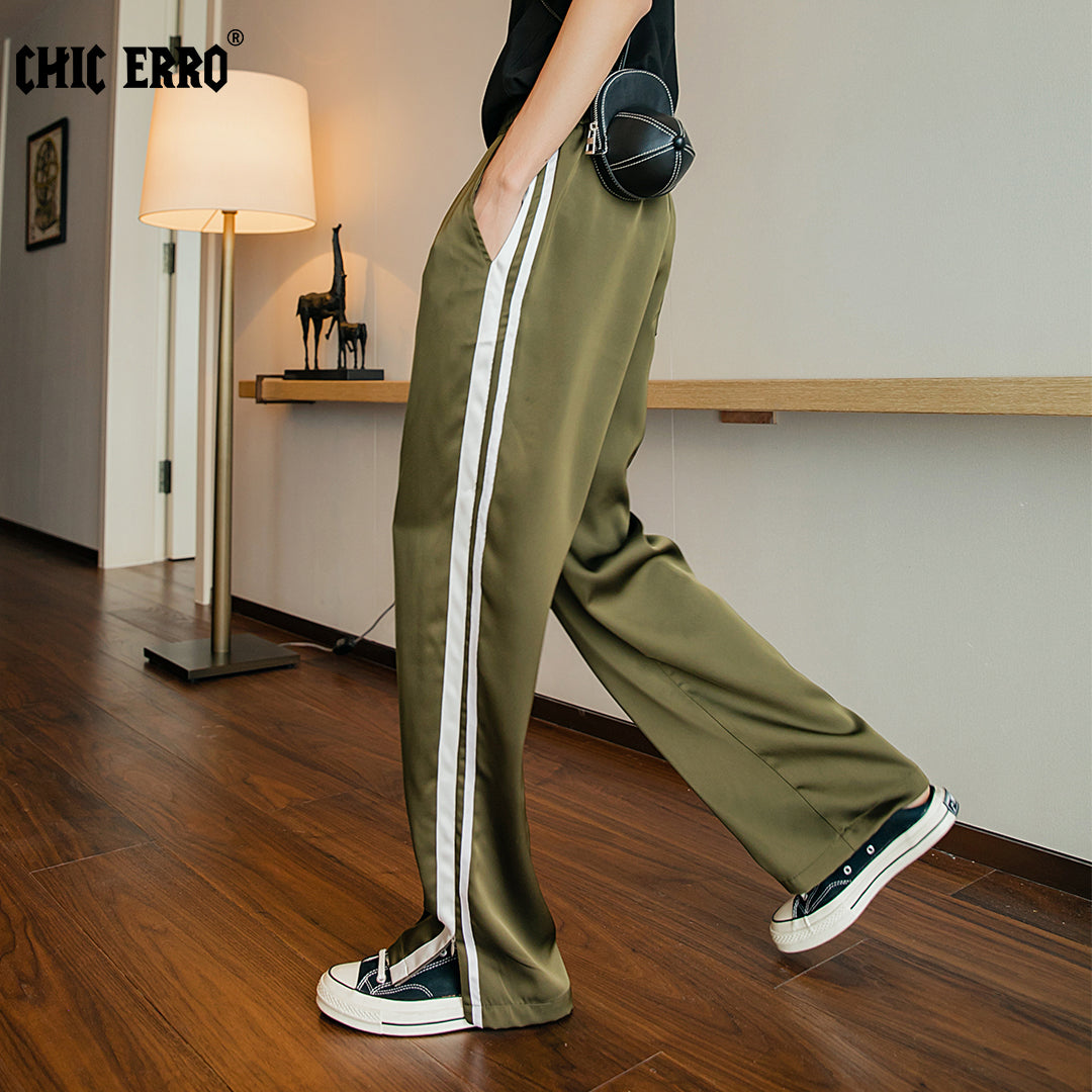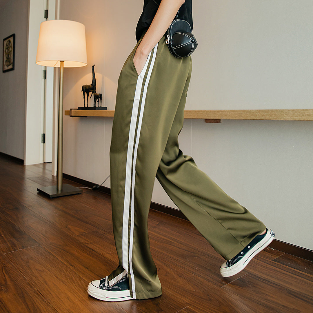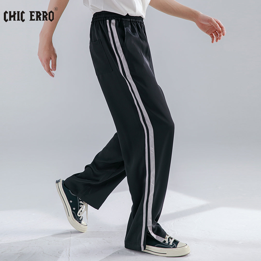 CHIC ERRO Chic Erro striped casual pants men's summer thin Korean style trend loose straight slit drape mopping pants