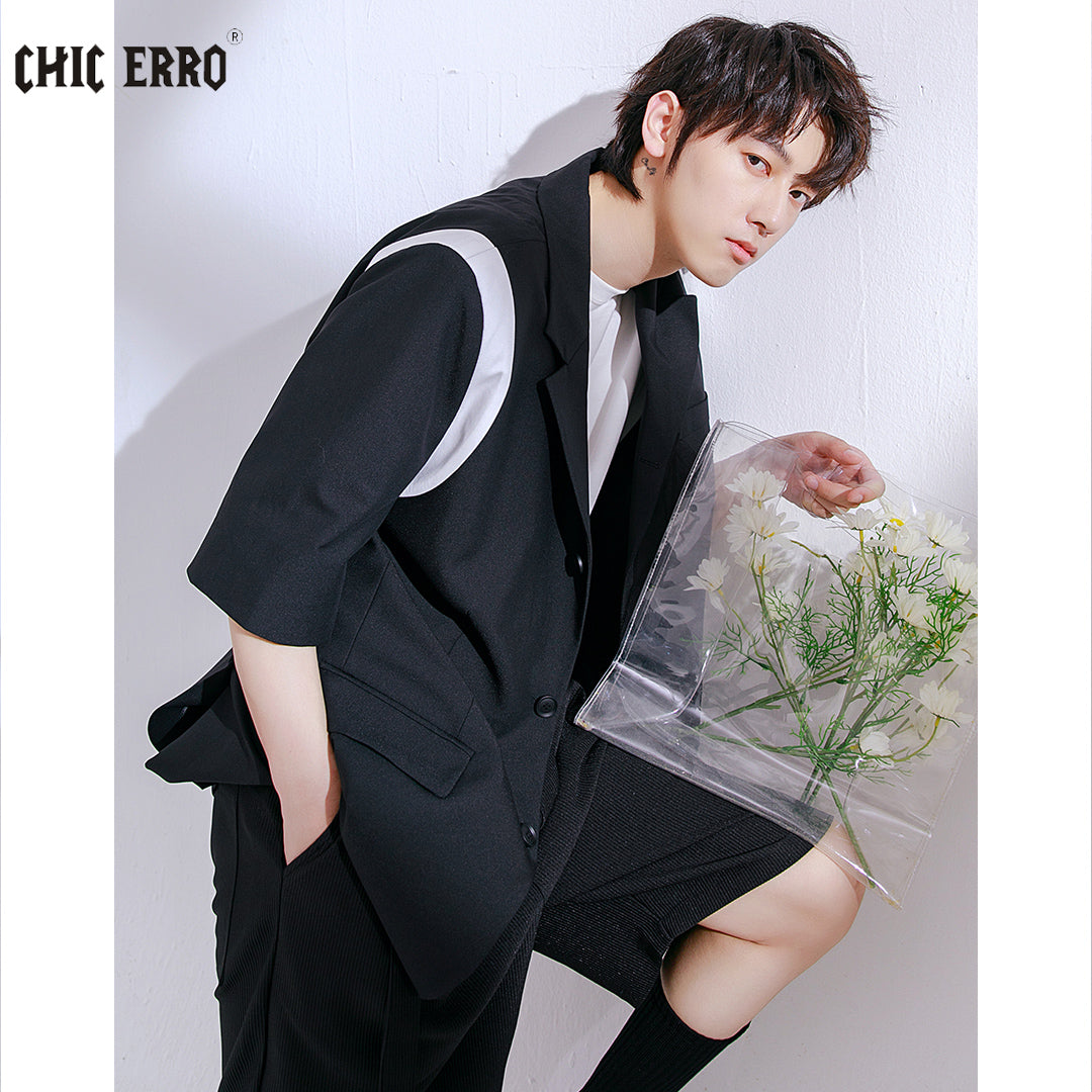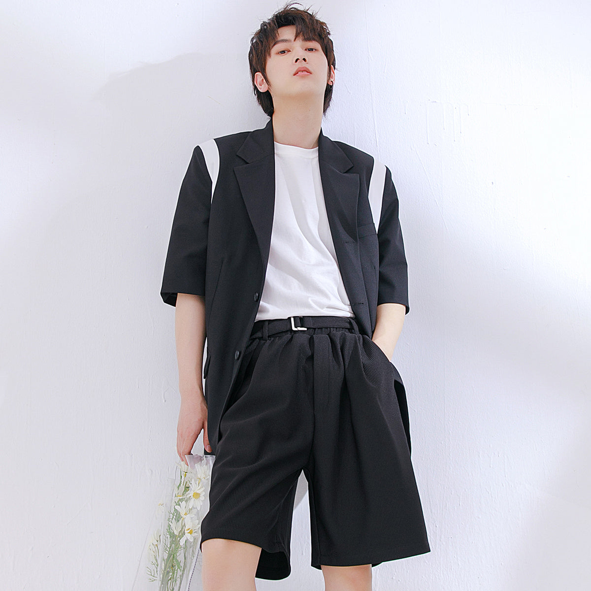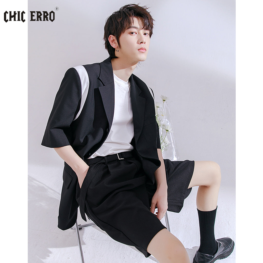 CHIC ERRO Chic Erro striped contrast color casual suit men's summer thin loose short-sleeved ins handsome suit jacket