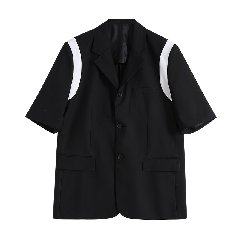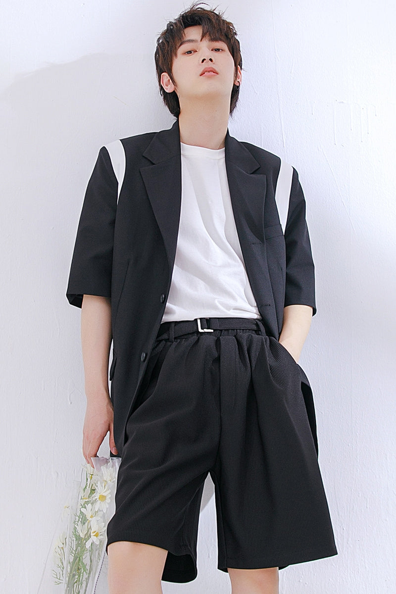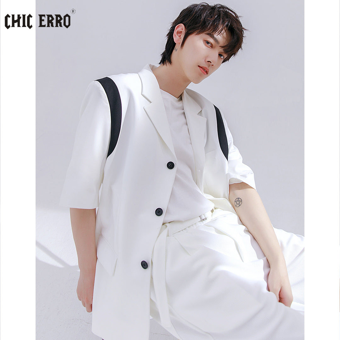 CHIC ERRO Chic Erro striped contrast color casual suit men's summer thin loose short-sleeved ins handsome suit jacket