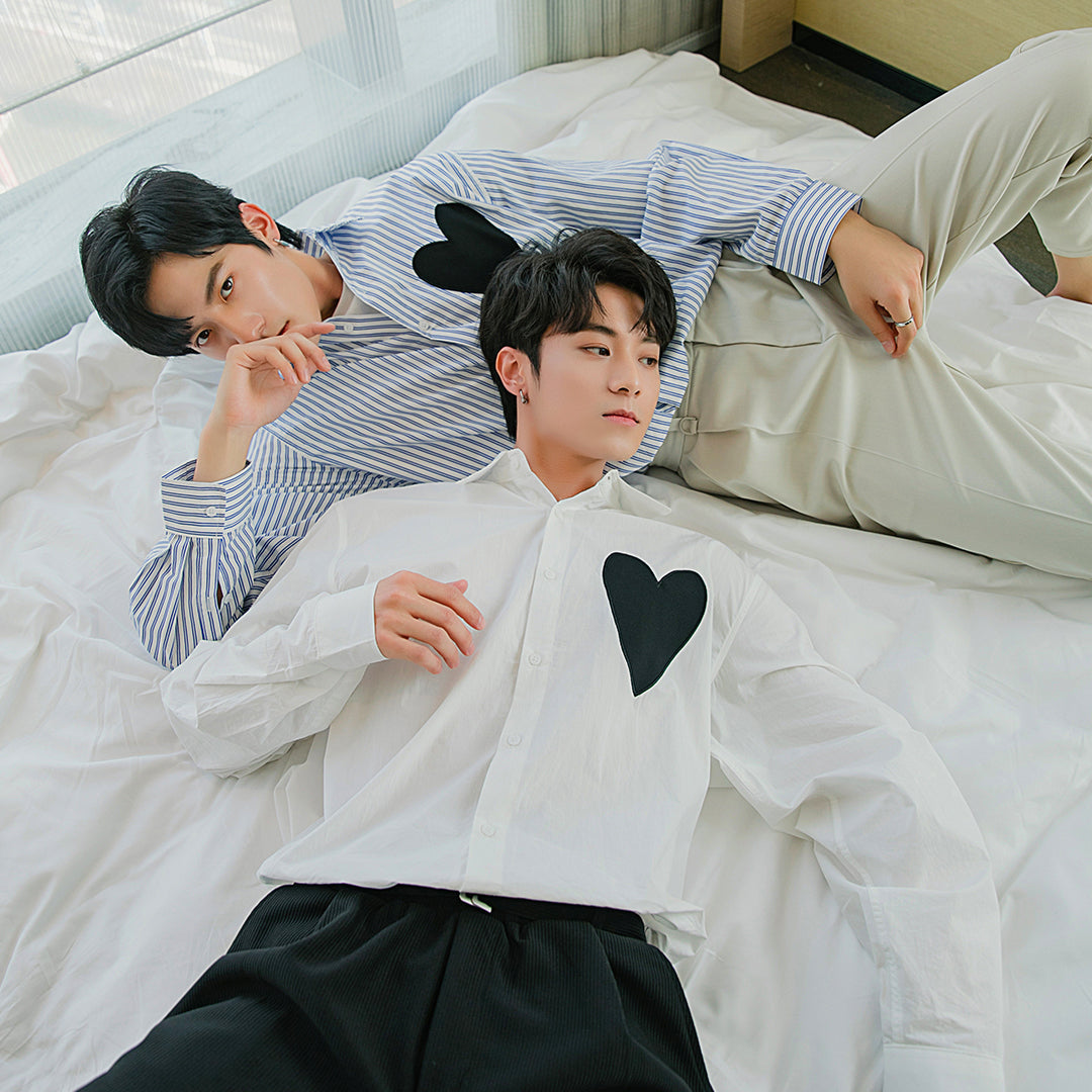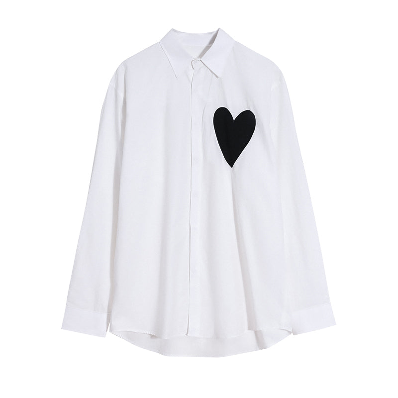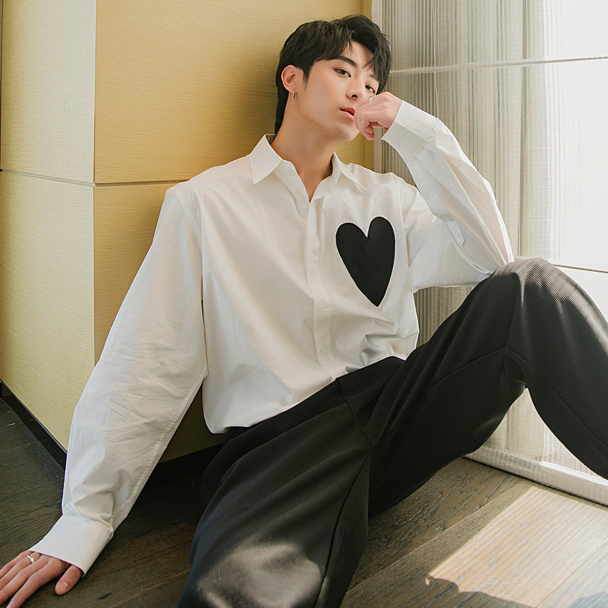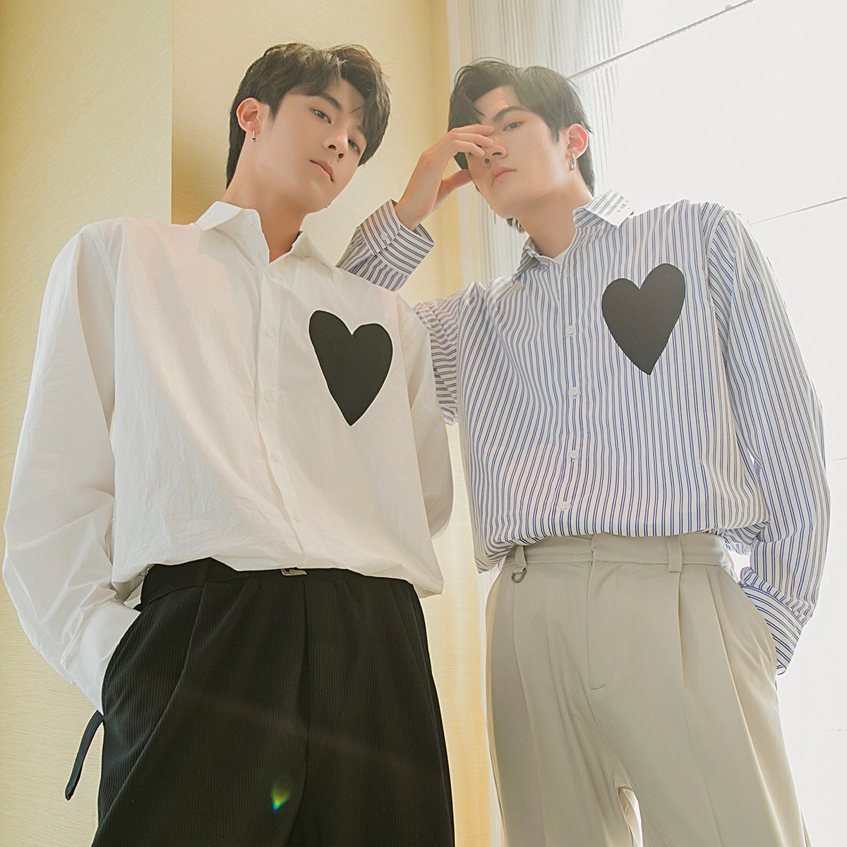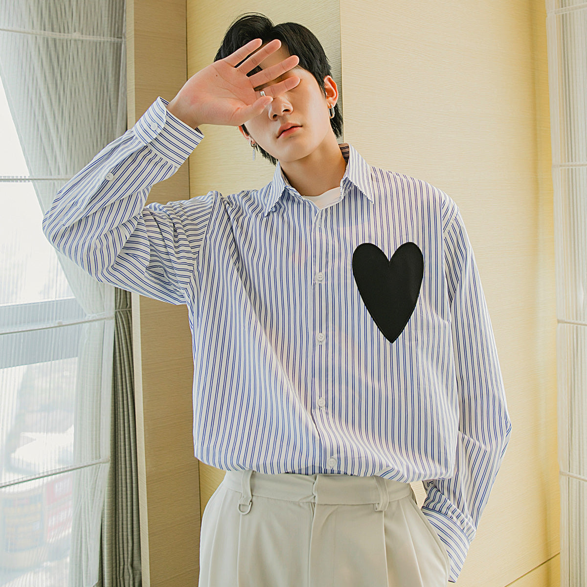 CHIC ERRO Chic Erro striped shirt men's long-sleeved handsome love embroidery stitching loose casual shirt spring and autumn models