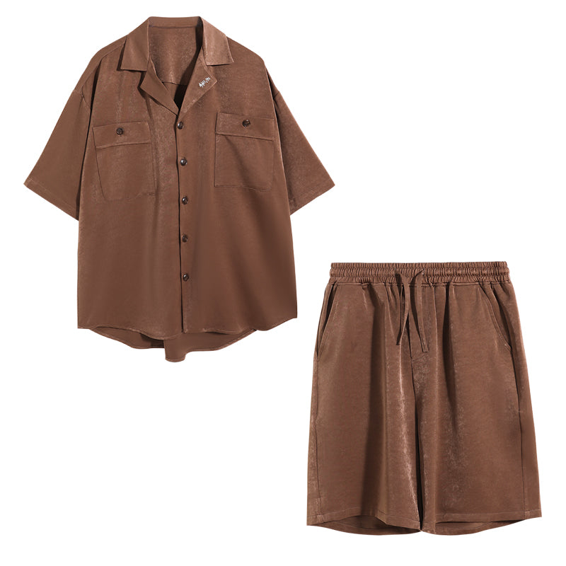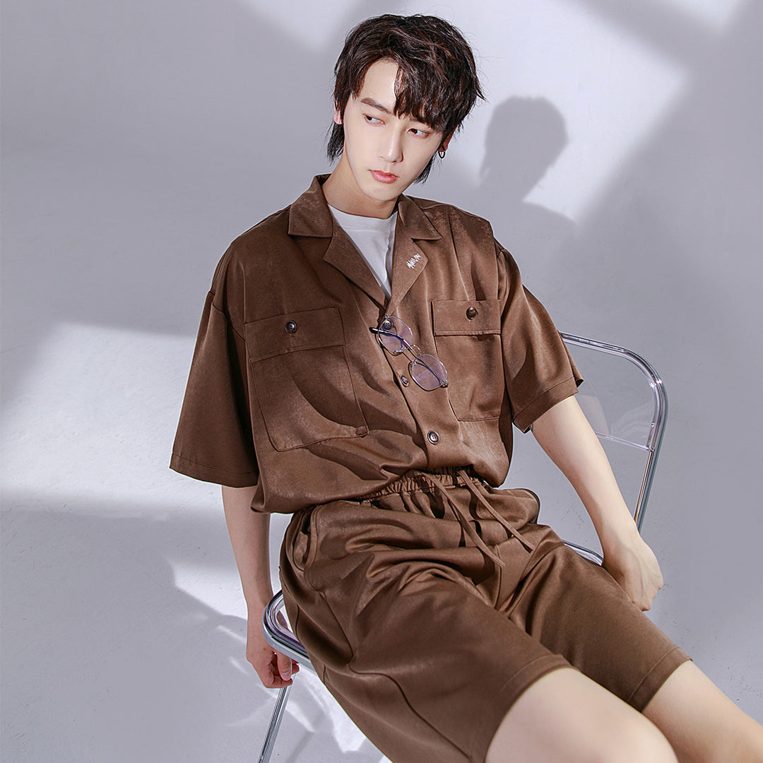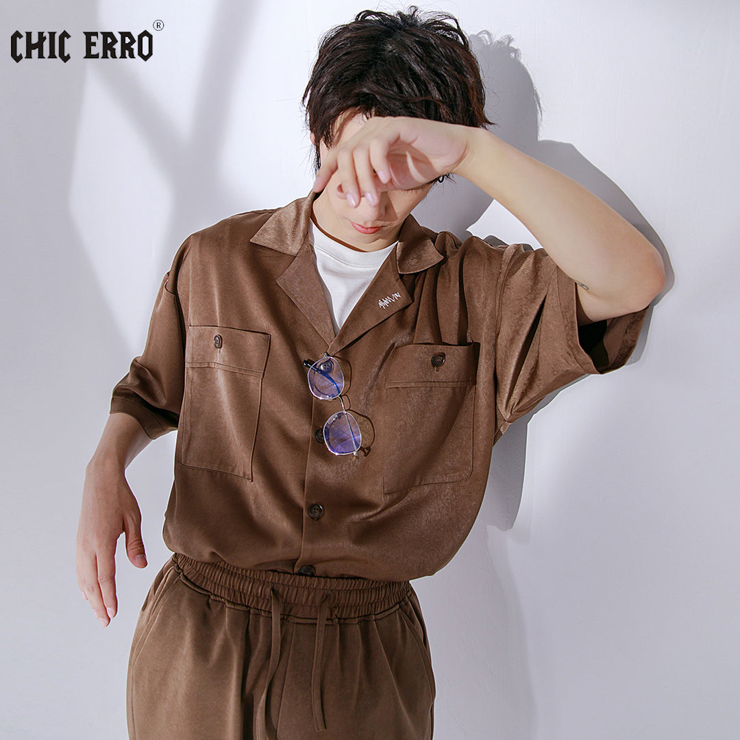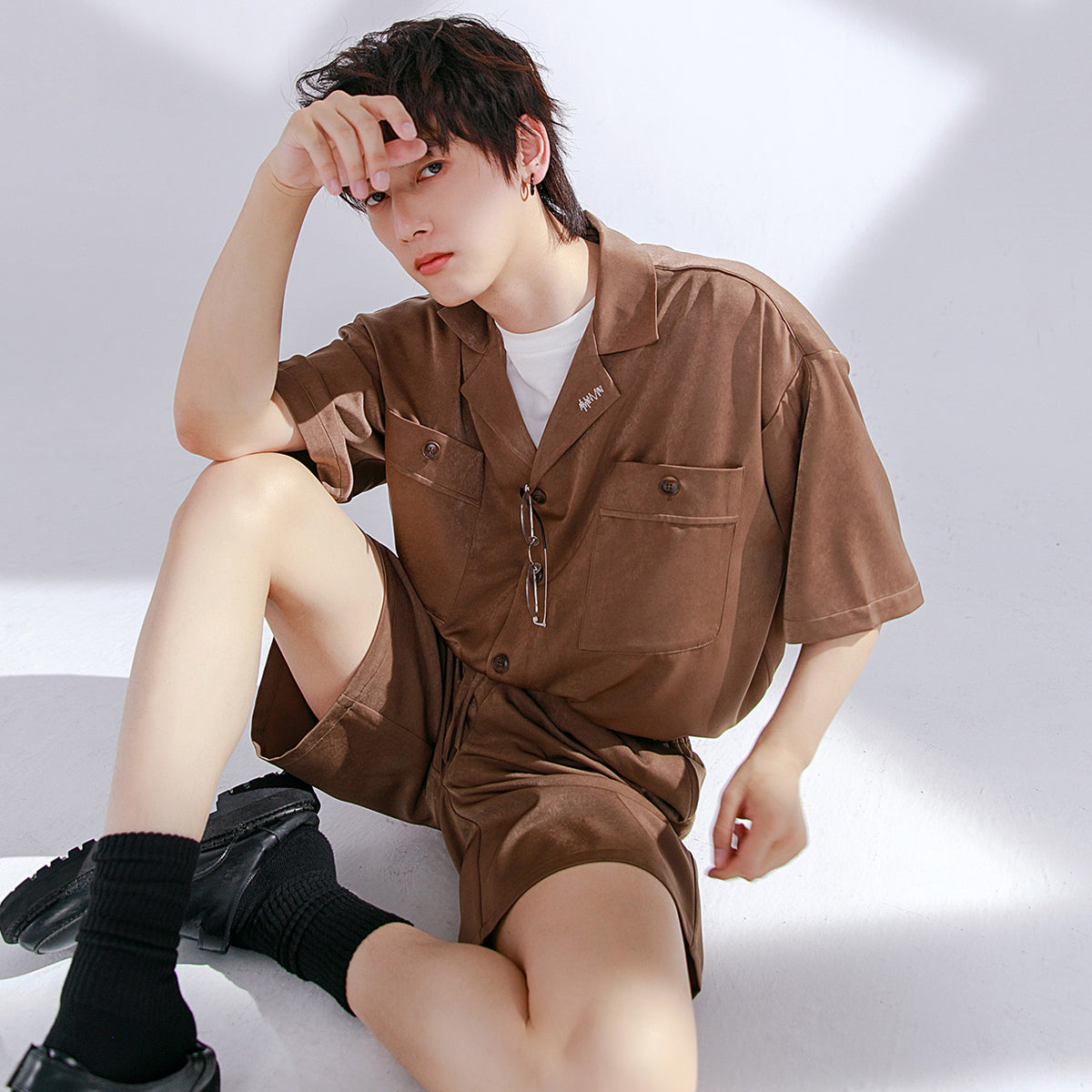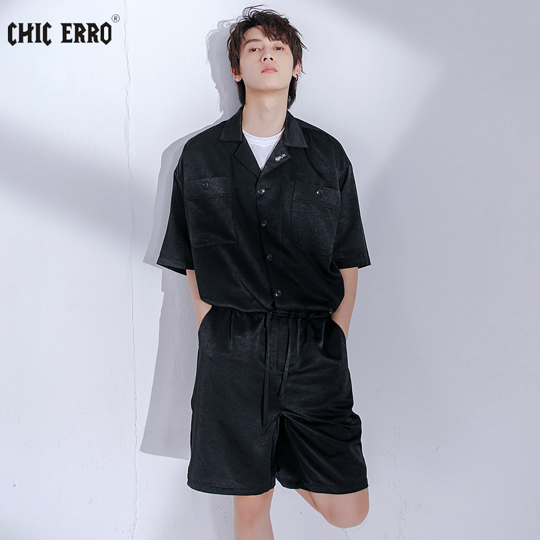 CHIC ERRO Chic Erro suit collar shirt loose shorts young men's casual suit summer temperament two-piece suit