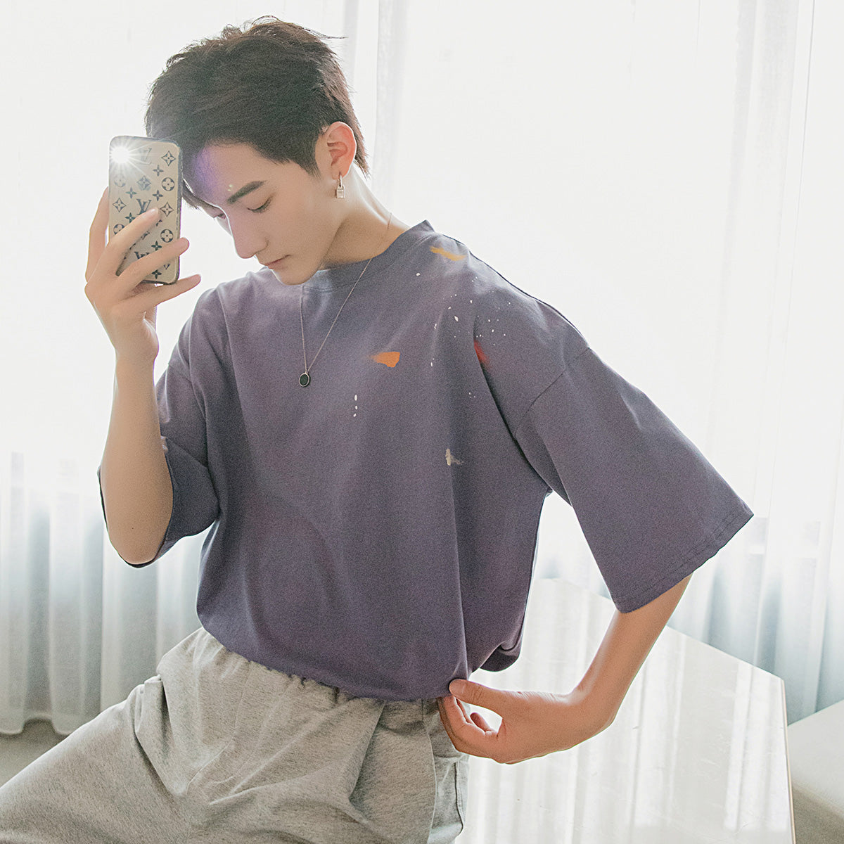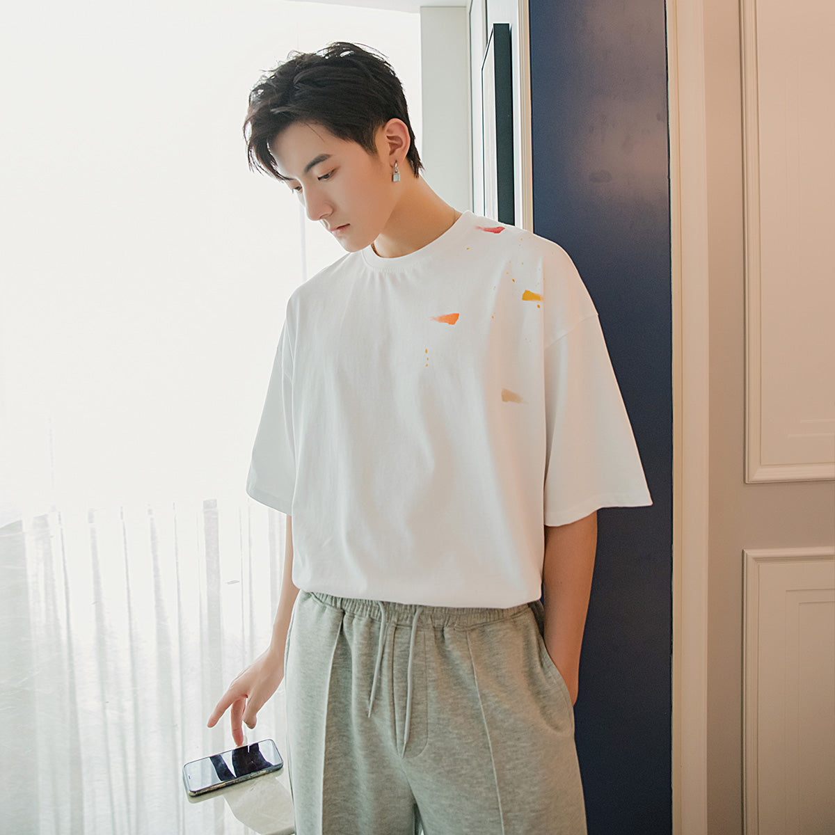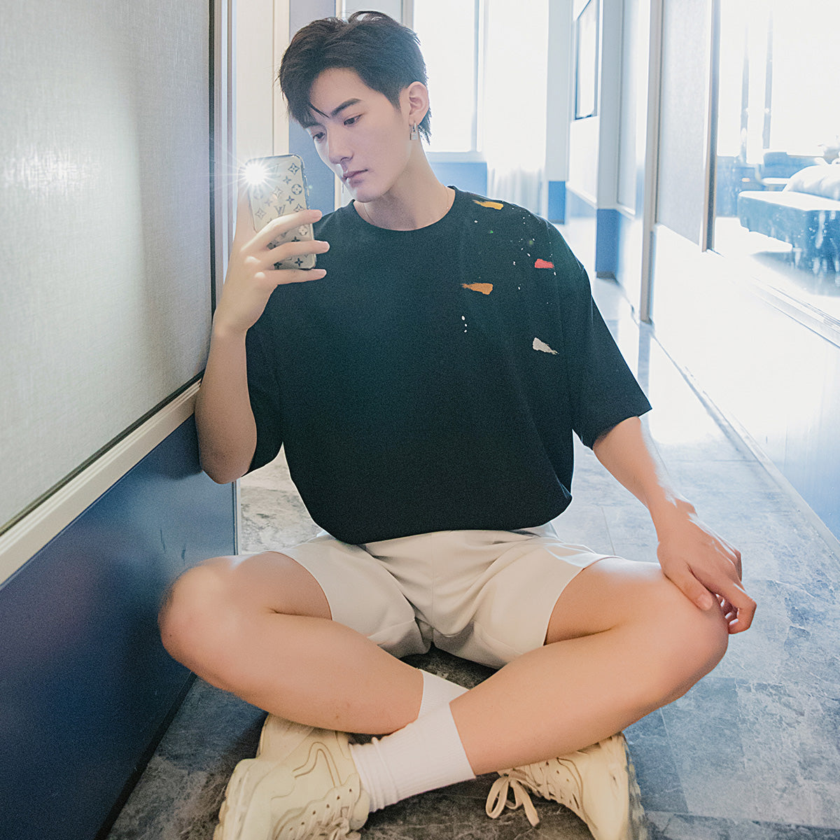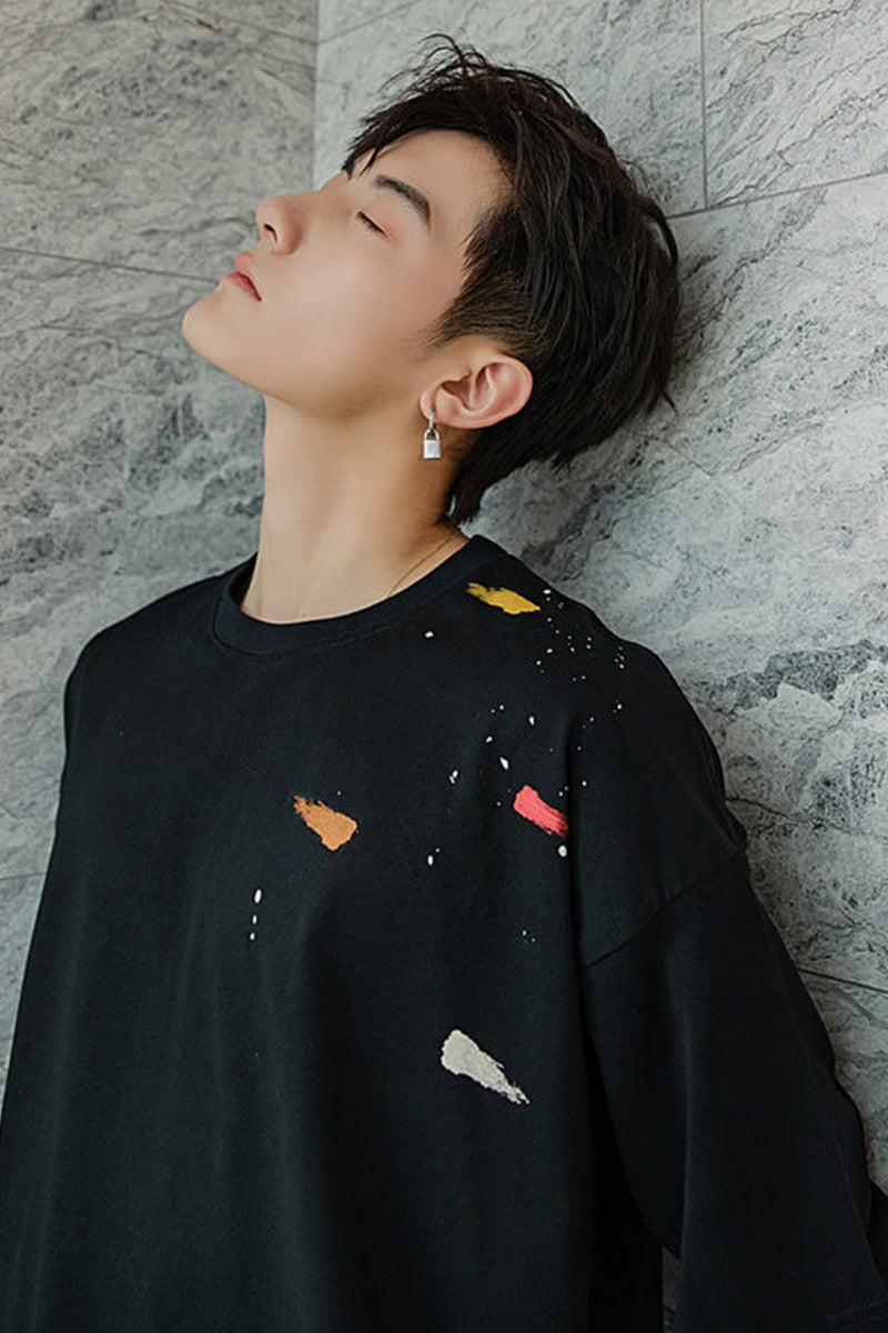 CHIC ERRO Chic Erro summer half-sleeved men's tide brand trend five-point sleeve loose men's black printed short-sleeved t-shirt