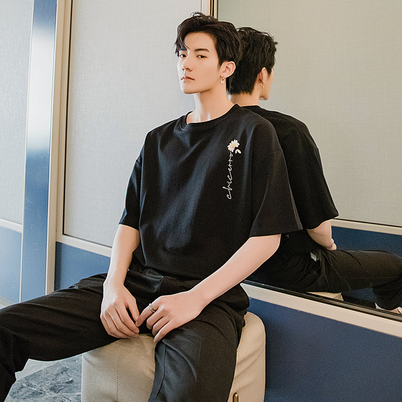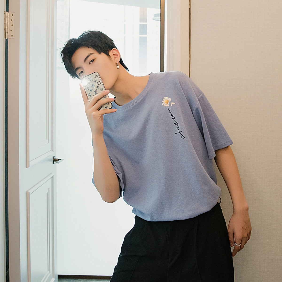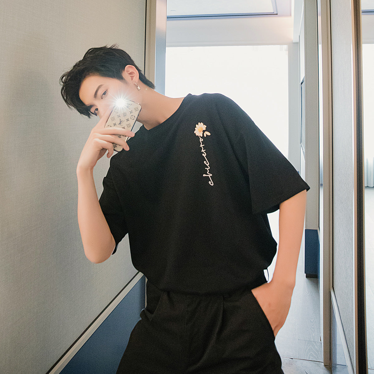 CHIC ERRO Chic Erro summer half-sleeved men's trend five-point sleeve t-shirt loose white men's small daisy short-sleeved t-shirt