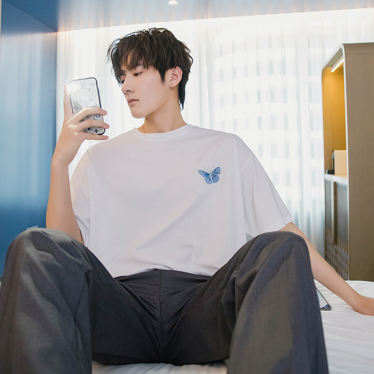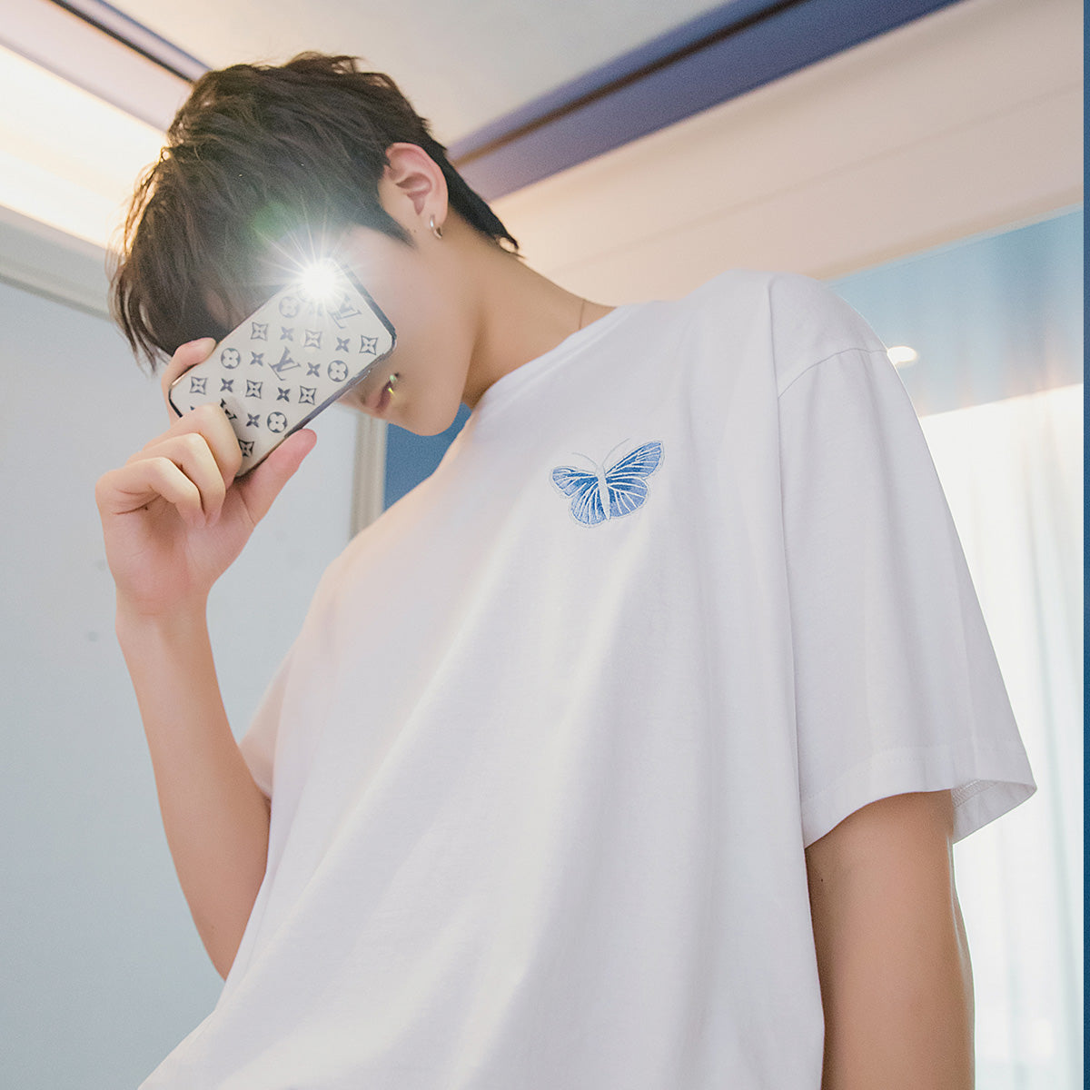 CHIC ERRO Chic Erro summer Harajuku style short-sleeved men's tide brand trend loose men's five-point sleeve printing white t-shirt