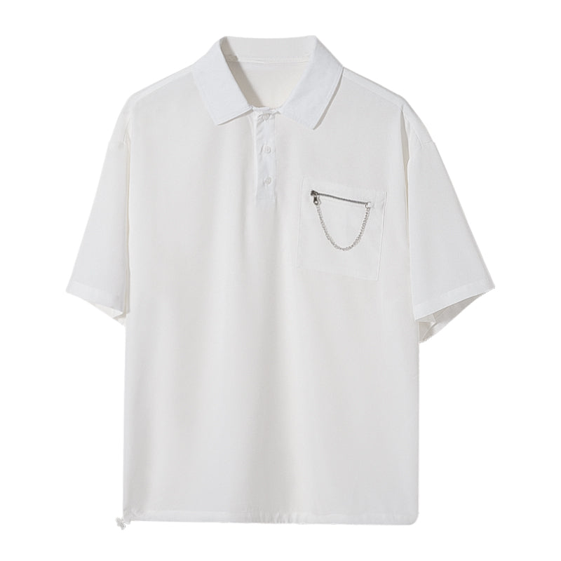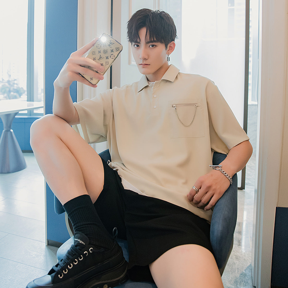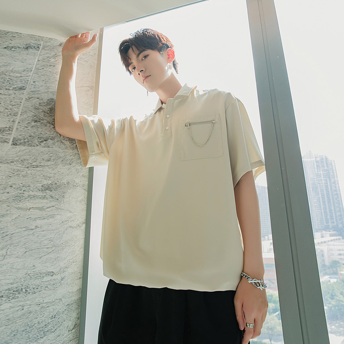 CHIC ERRO Chic Erro summer style boys short-sleeved t-shirt tide brand trend loose chain pendant white Polo shirt