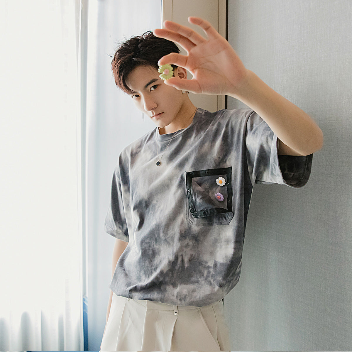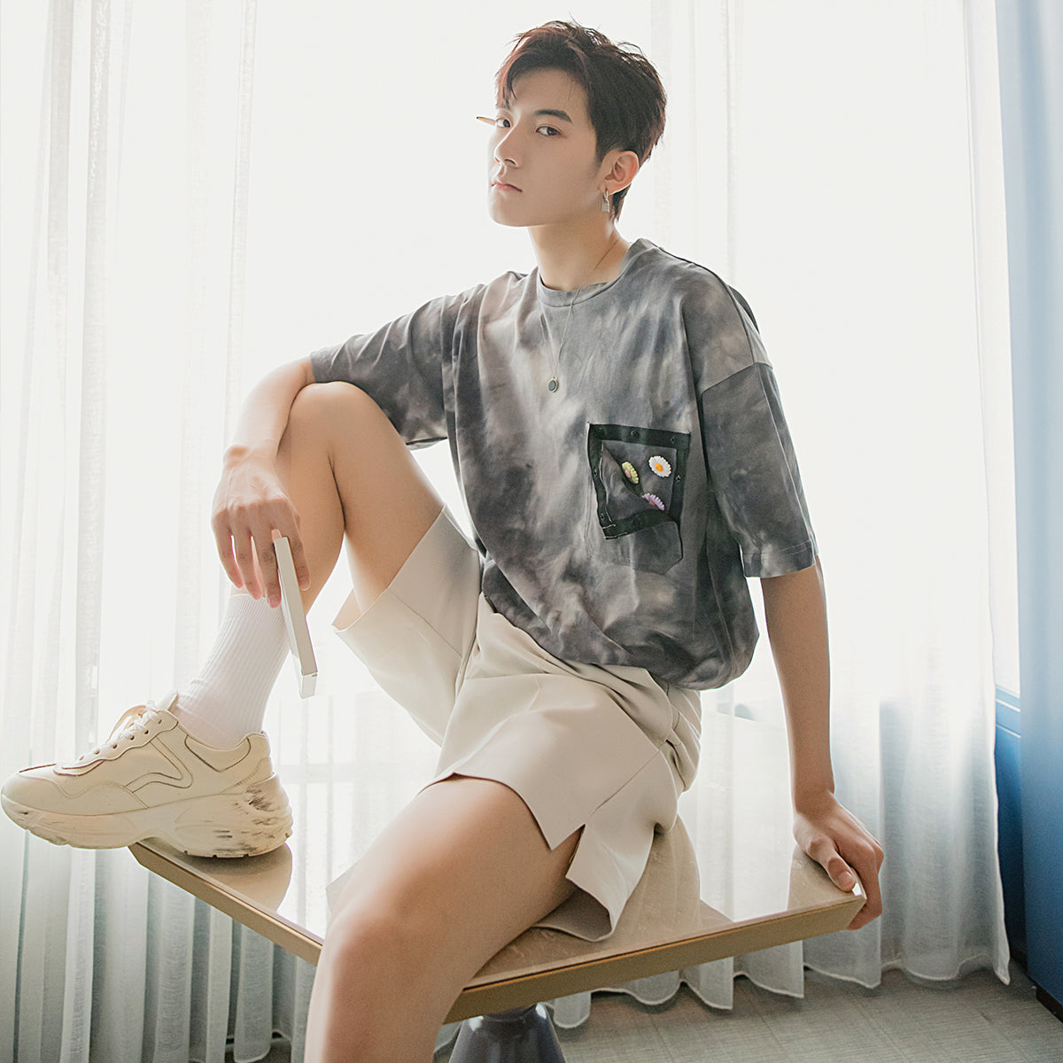 CHIC ERRO Chic Erro summer style half-sleeved men's trend five-point sleeve loose boys gradient tie-dye short-sleeved t-shirt