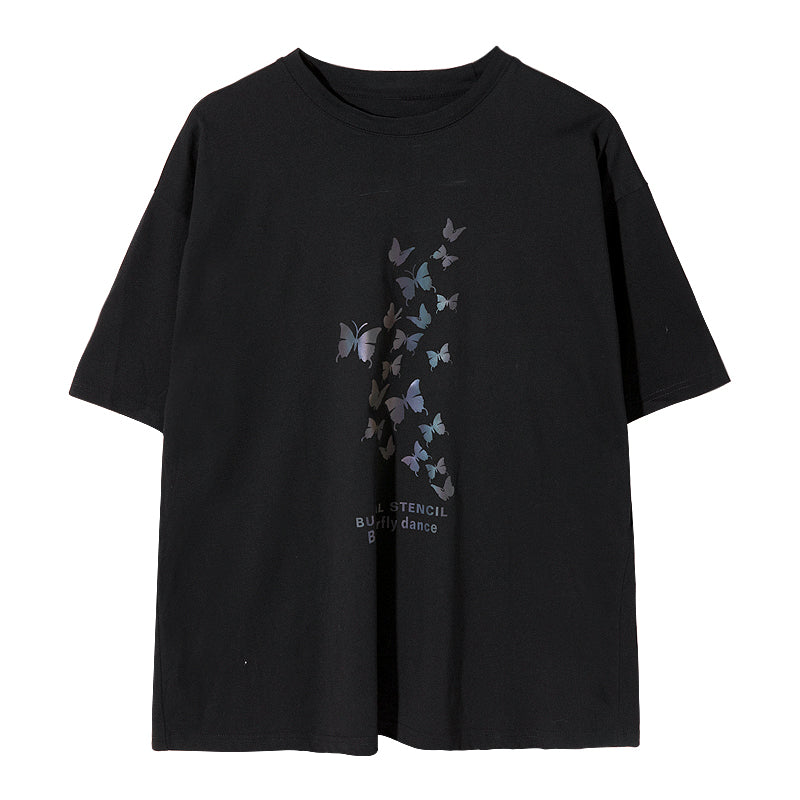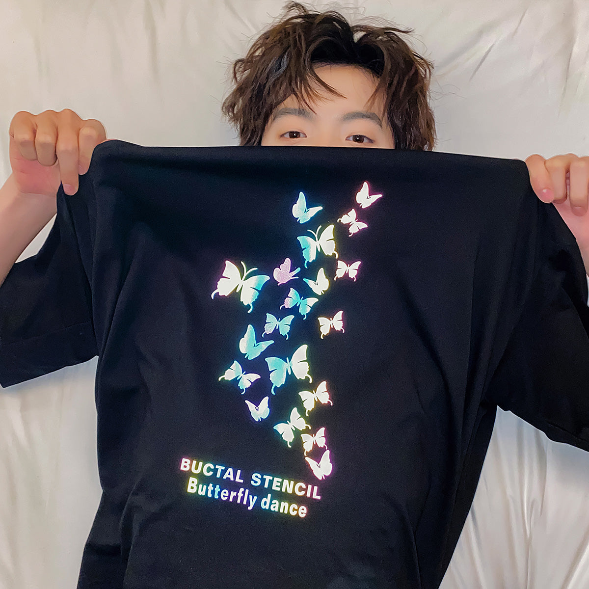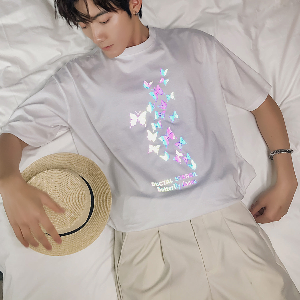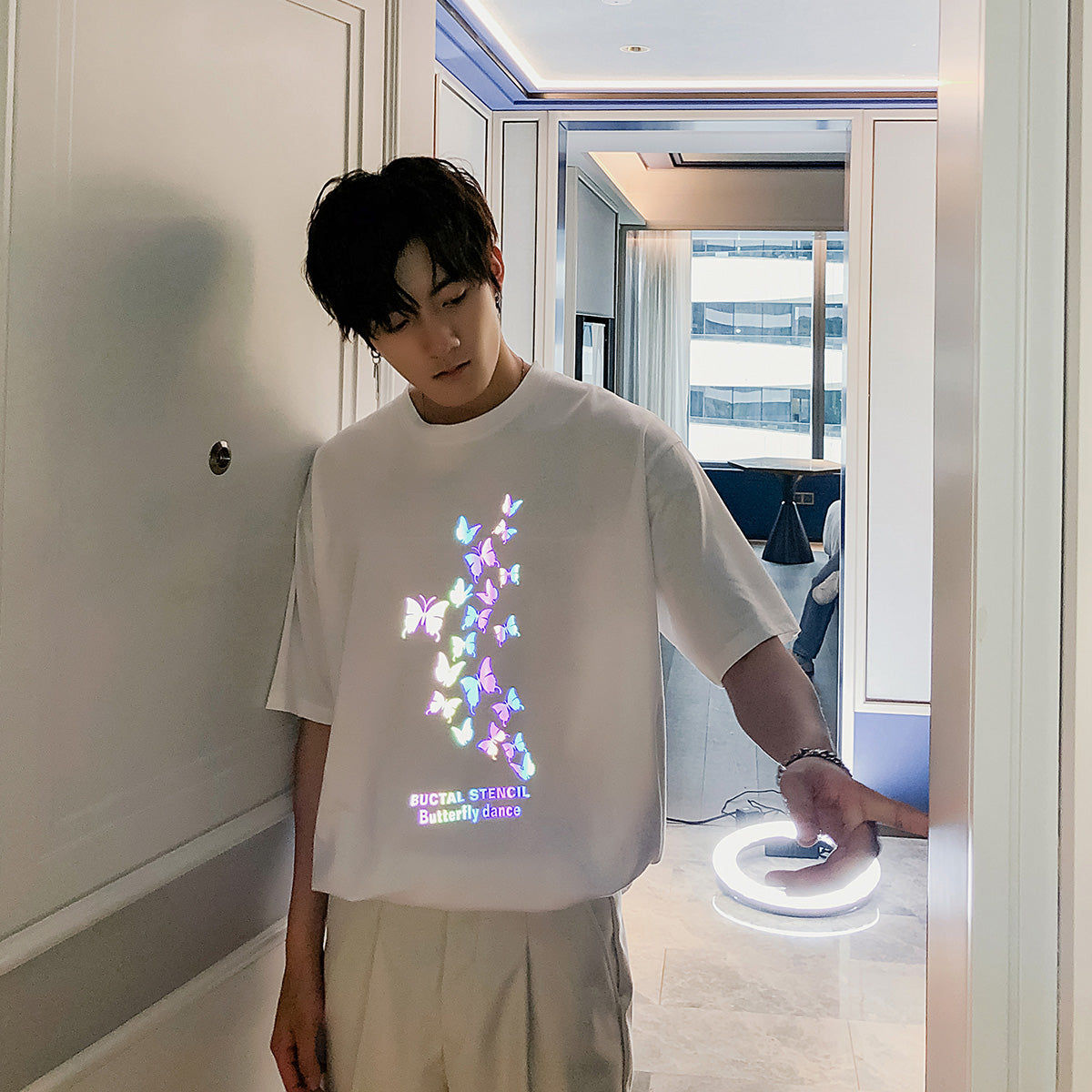 CHIC ERRO Chic Erro summer style short-sleeved men's tide brand trend loose boys white reflective design t-shirt
