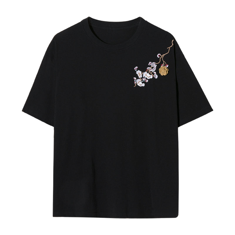 CHIC ERRO Chic Erro summer style short-sleeved men's tide brand trend loose five-point sleeve men's black embroidered t-shirt