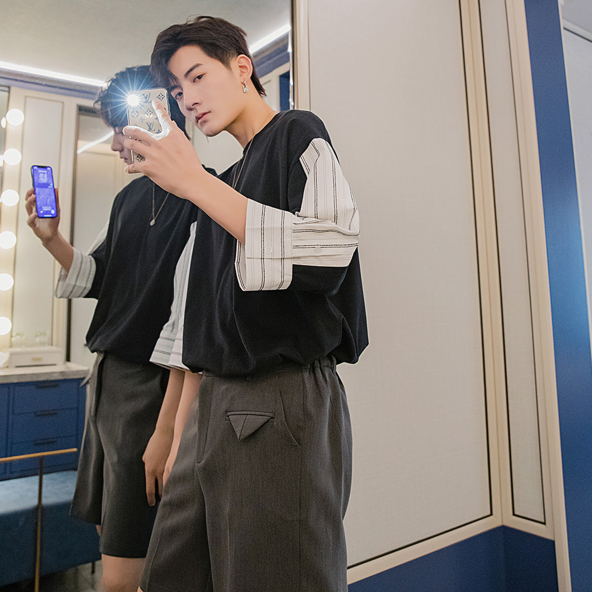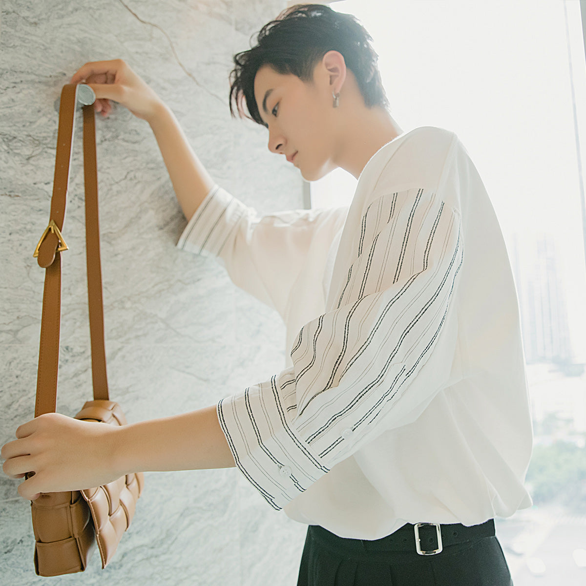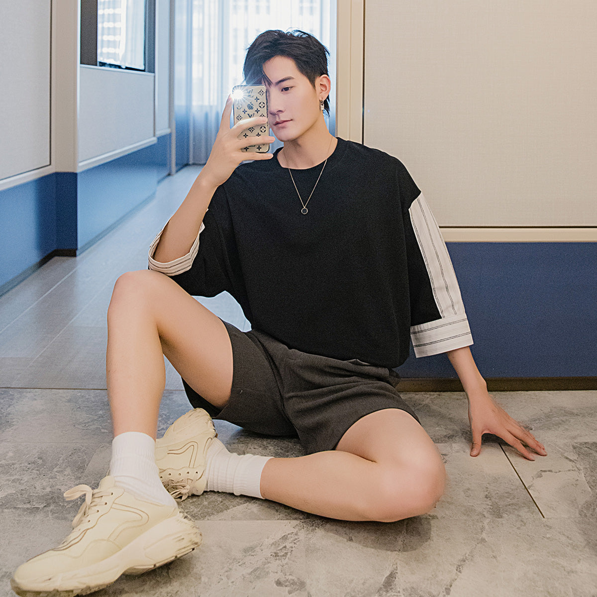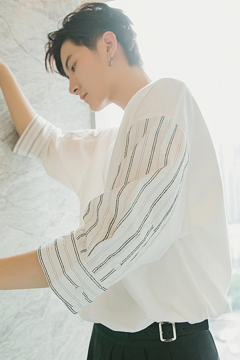 CHIC ERRO Chic Erro summer style short-sleeved men's tide brand trend loose men's design sense white three-quarter sleeve t-shirt
