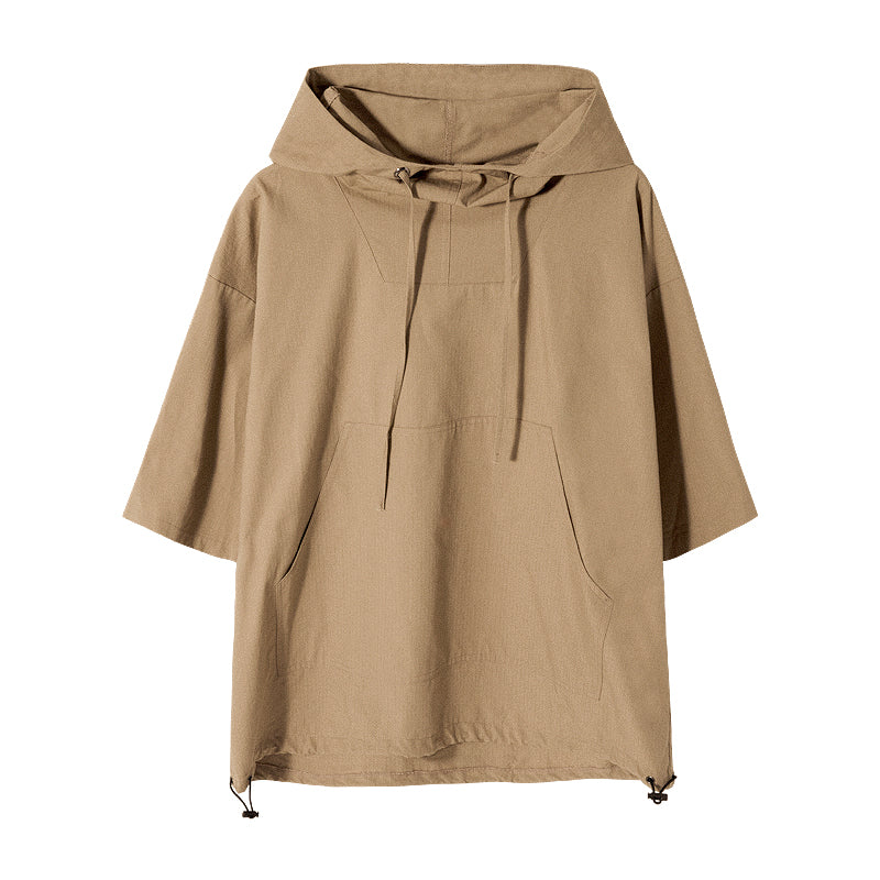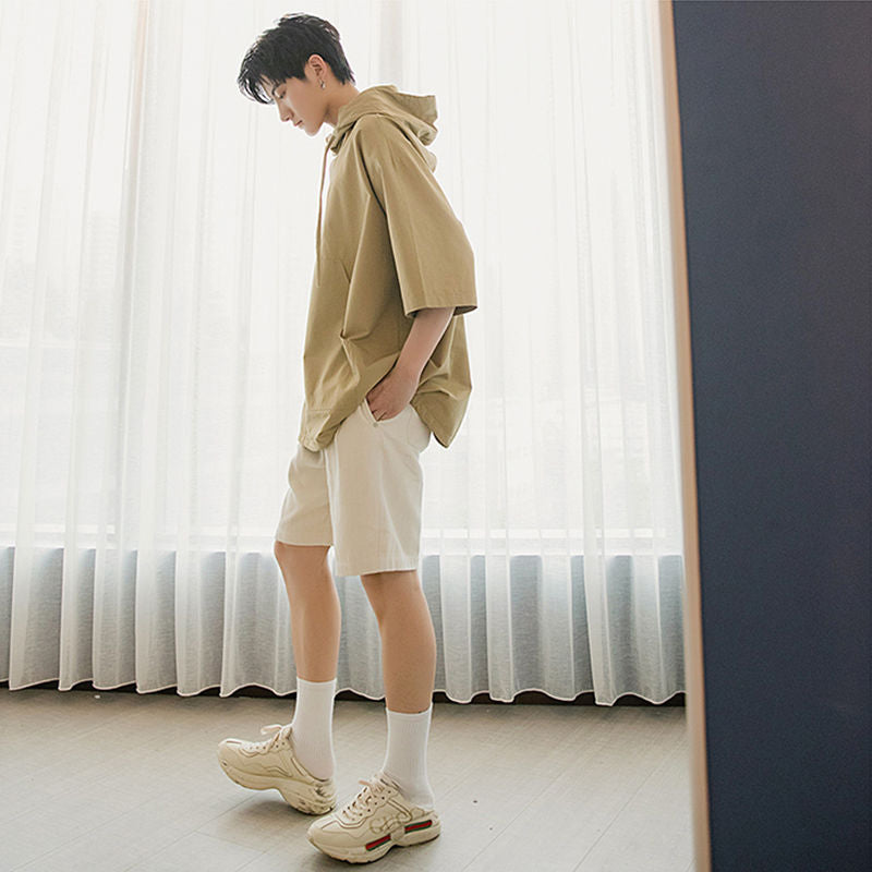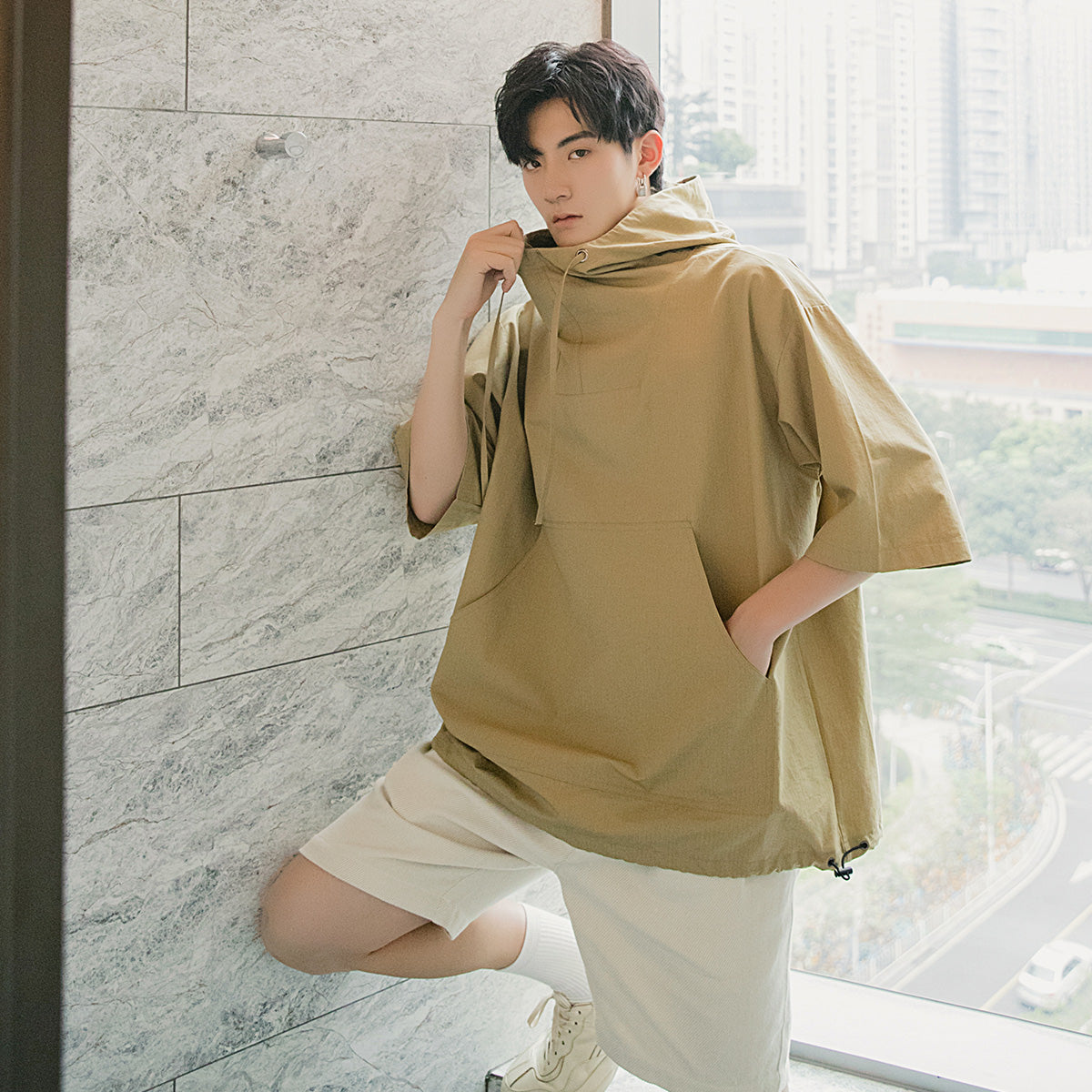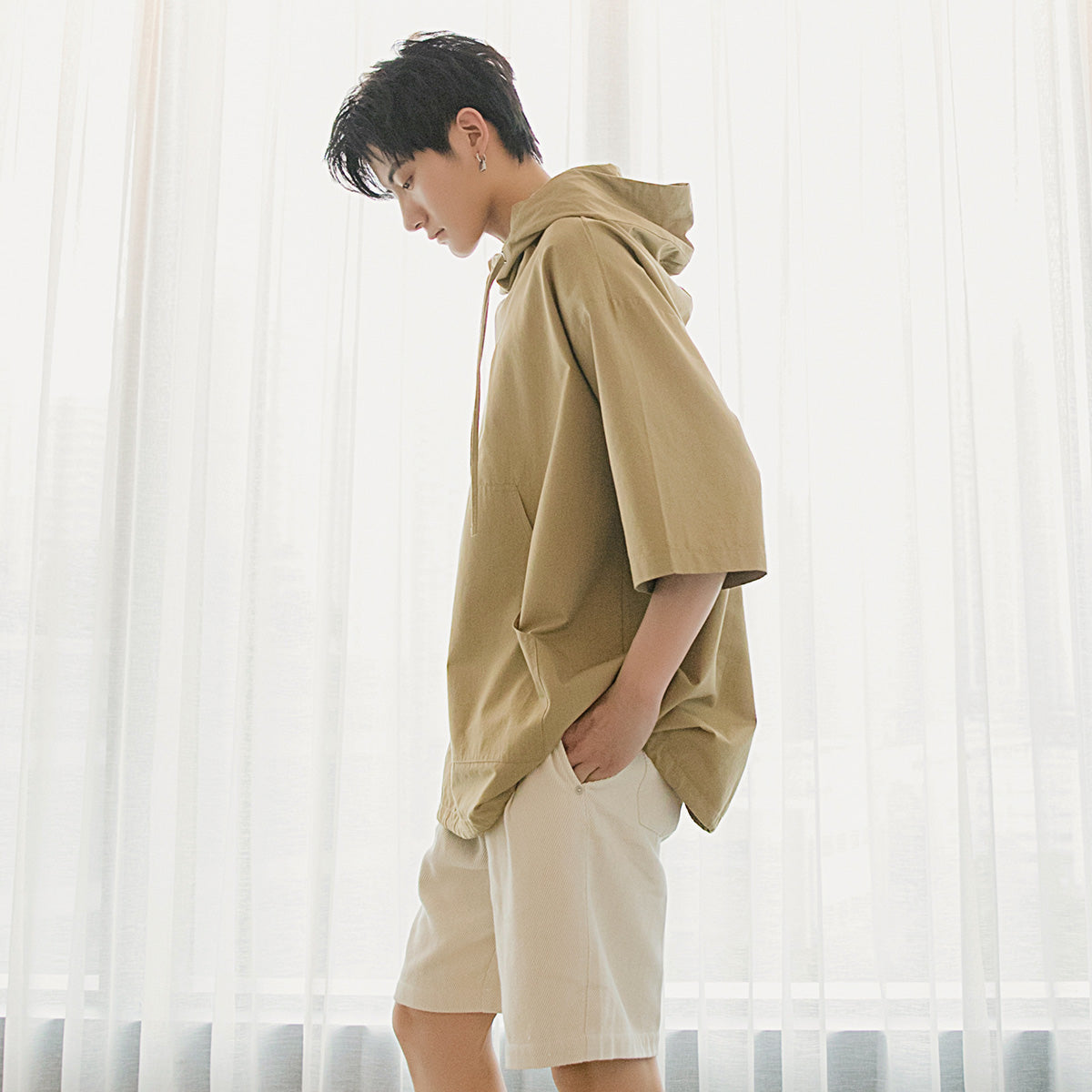 CHIC ERRO Chic Erro summer hooded short-sleeved shirt male Korean version of the trend loose half-sleeved men's five-point sleeve shirt