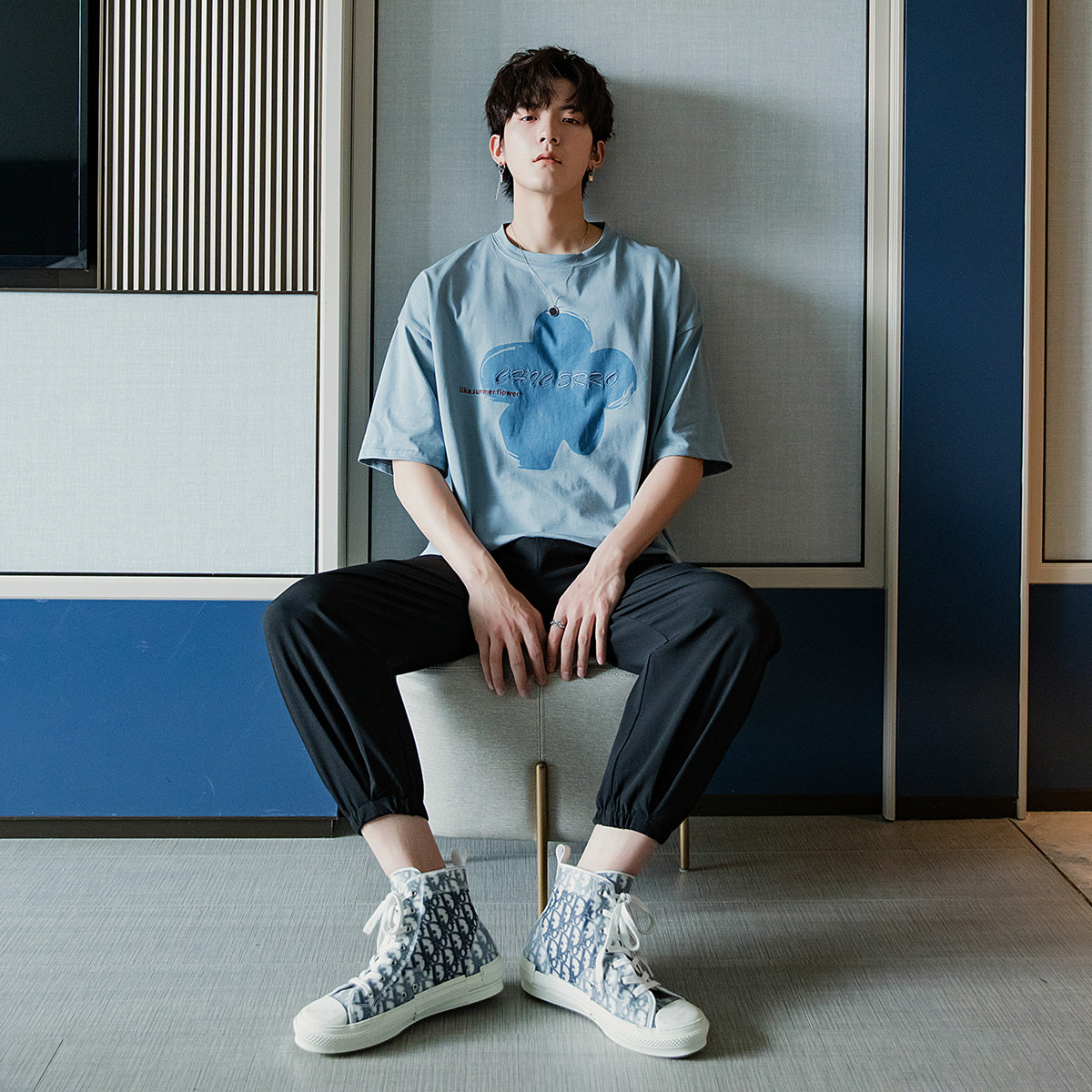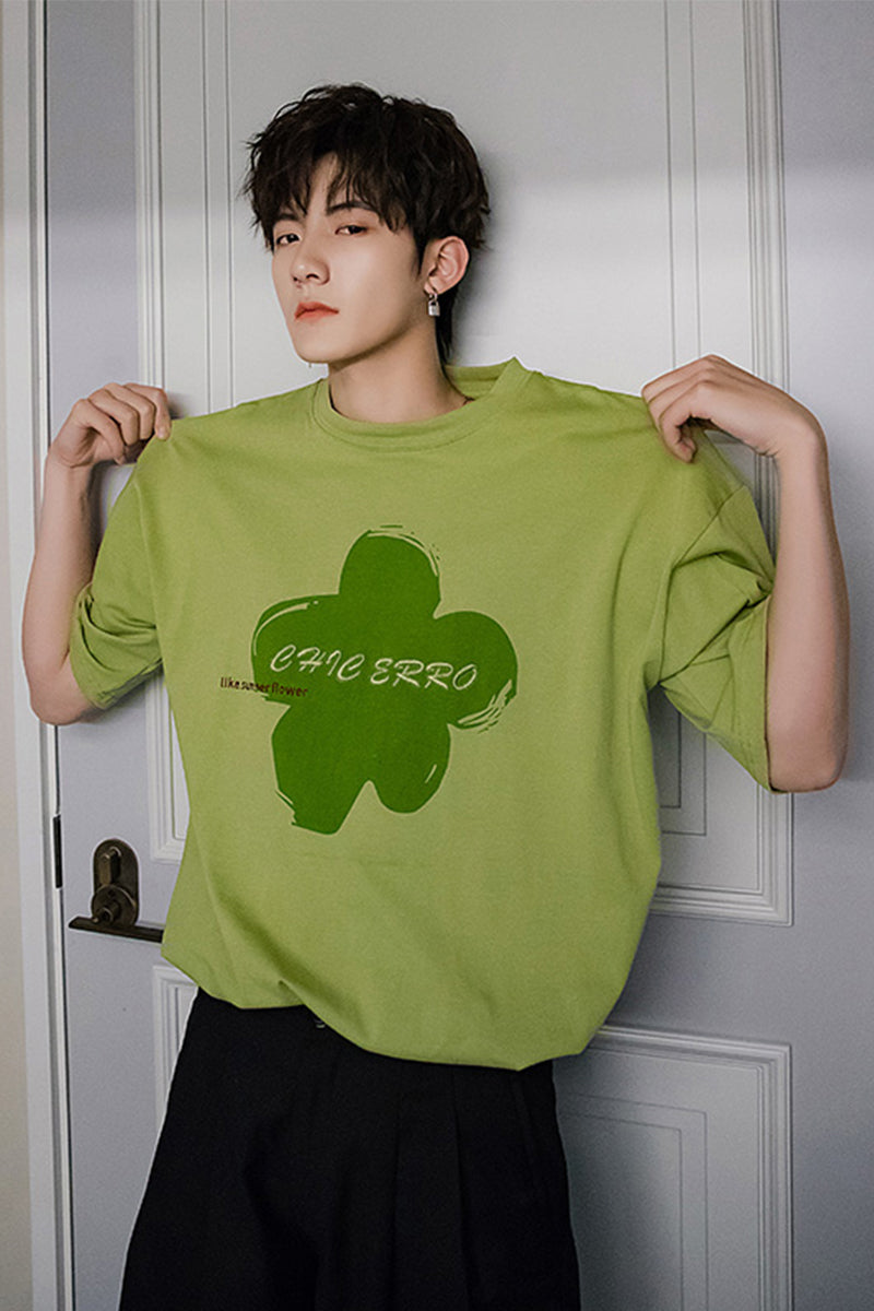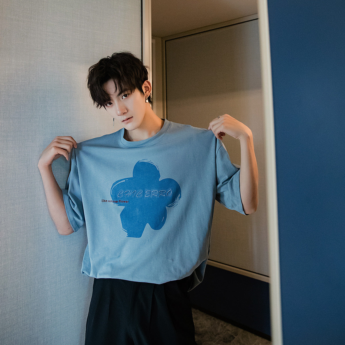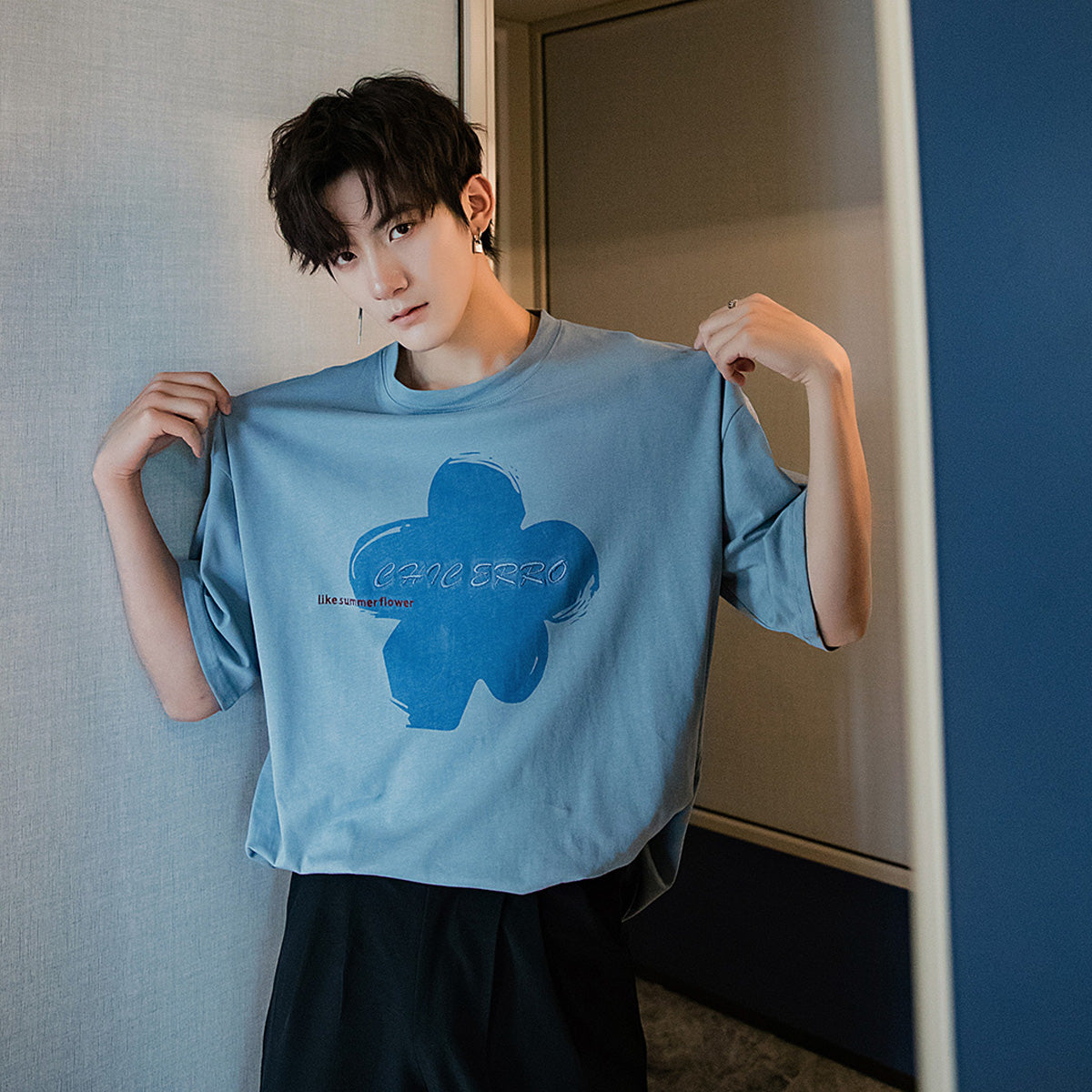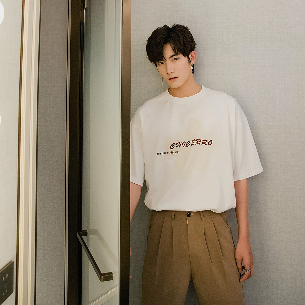 CHIC ERRO Chic Erro summer Korean short-sleeved men's tide brand trend loose five-point sleeve men's half-sleeved printed t-shirt
