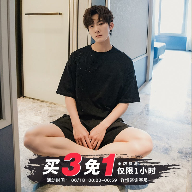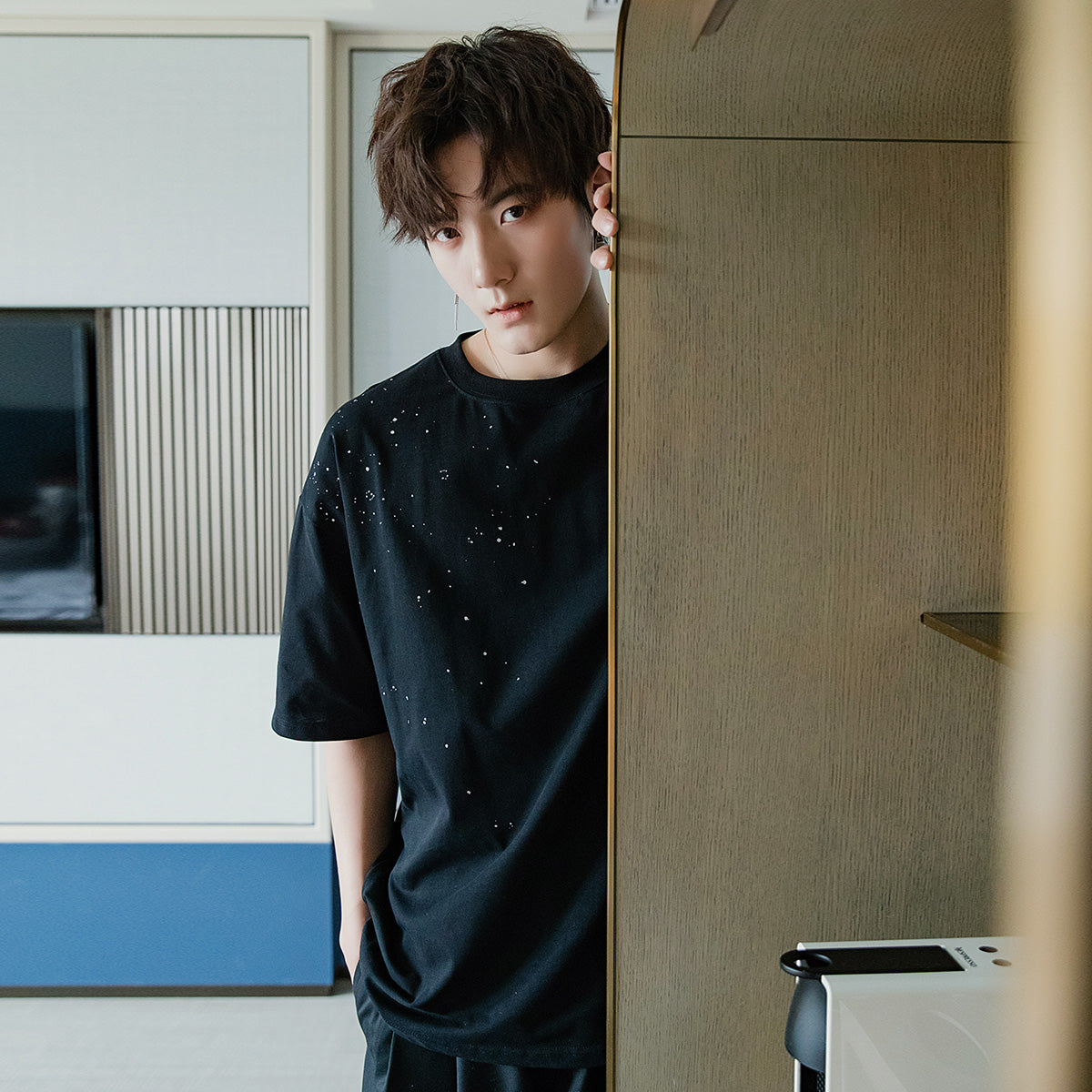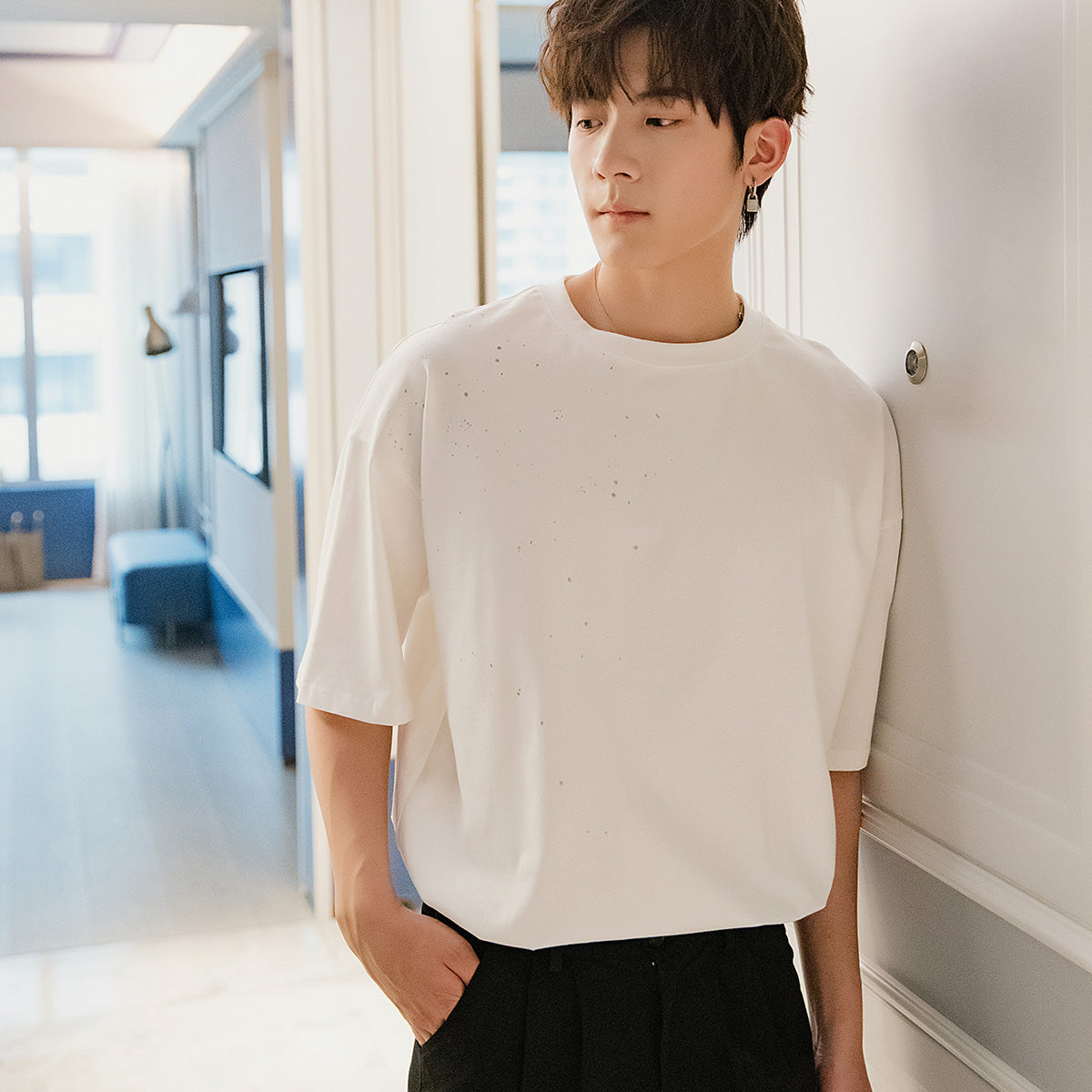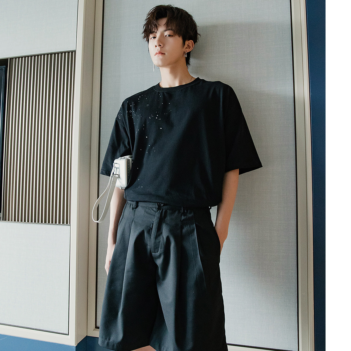 CHIC ERRO Chic Erro summer Korean short-sleeved men's tide brand trend loose five-point sleeve men's star print t-shirt
