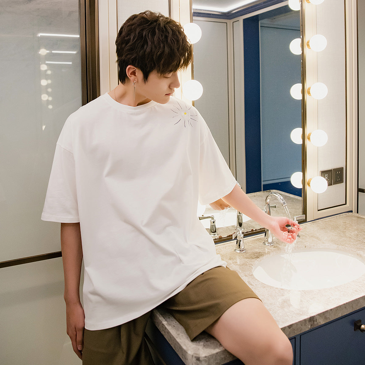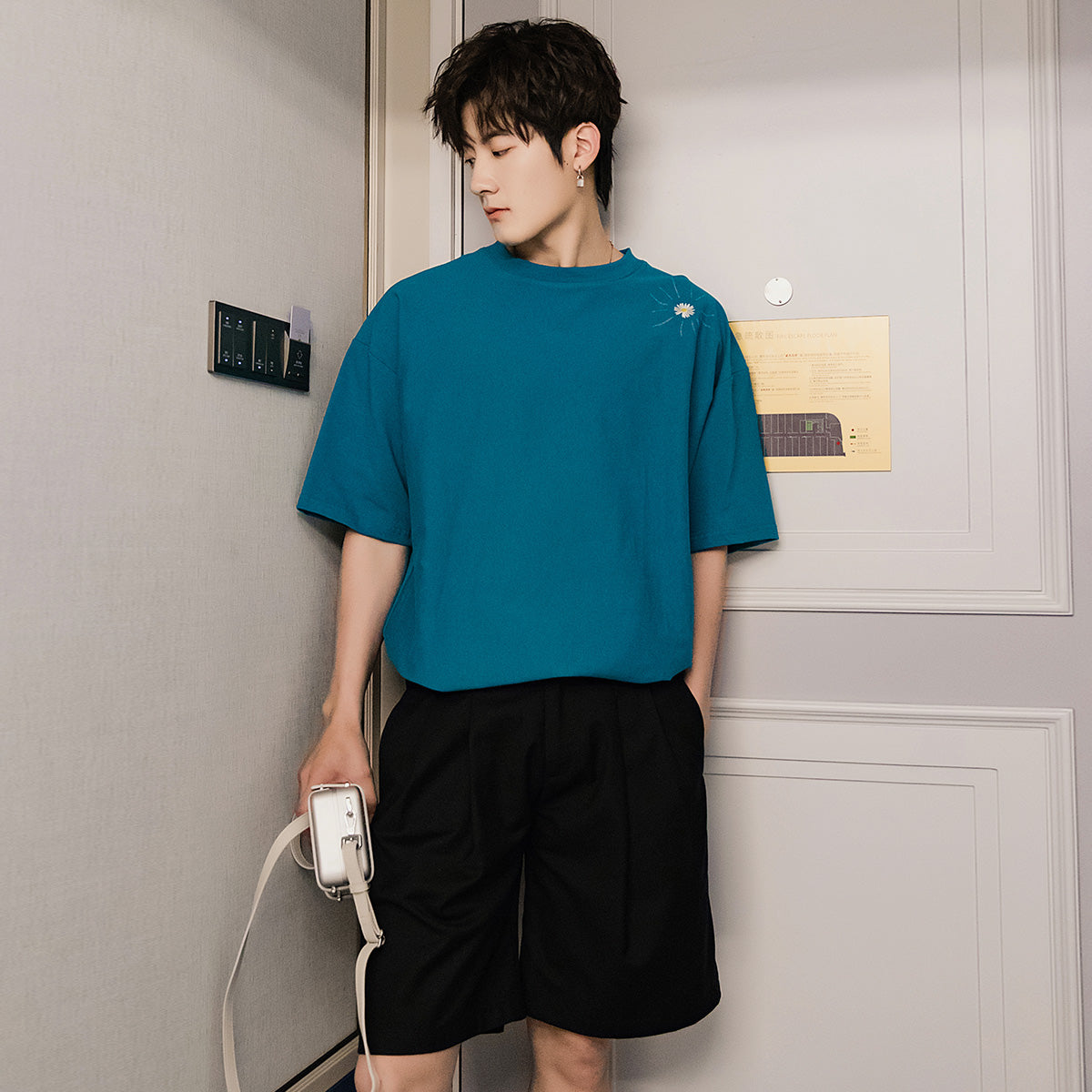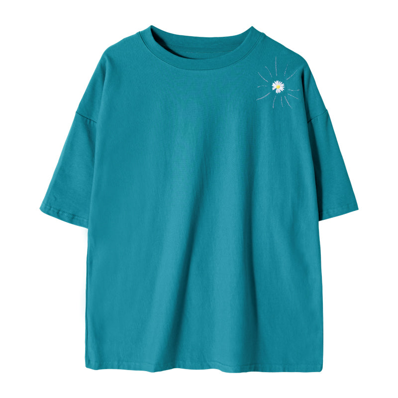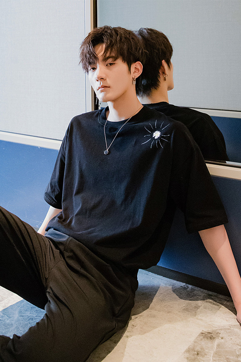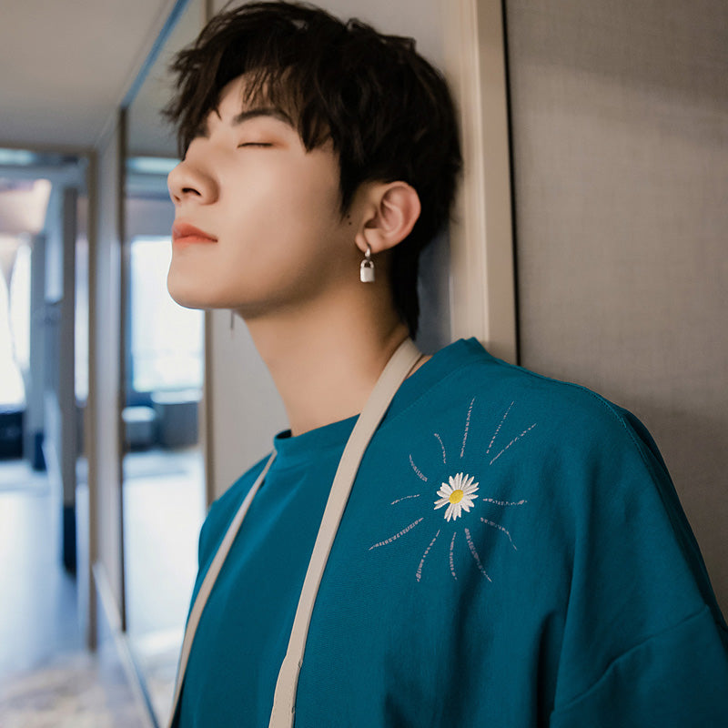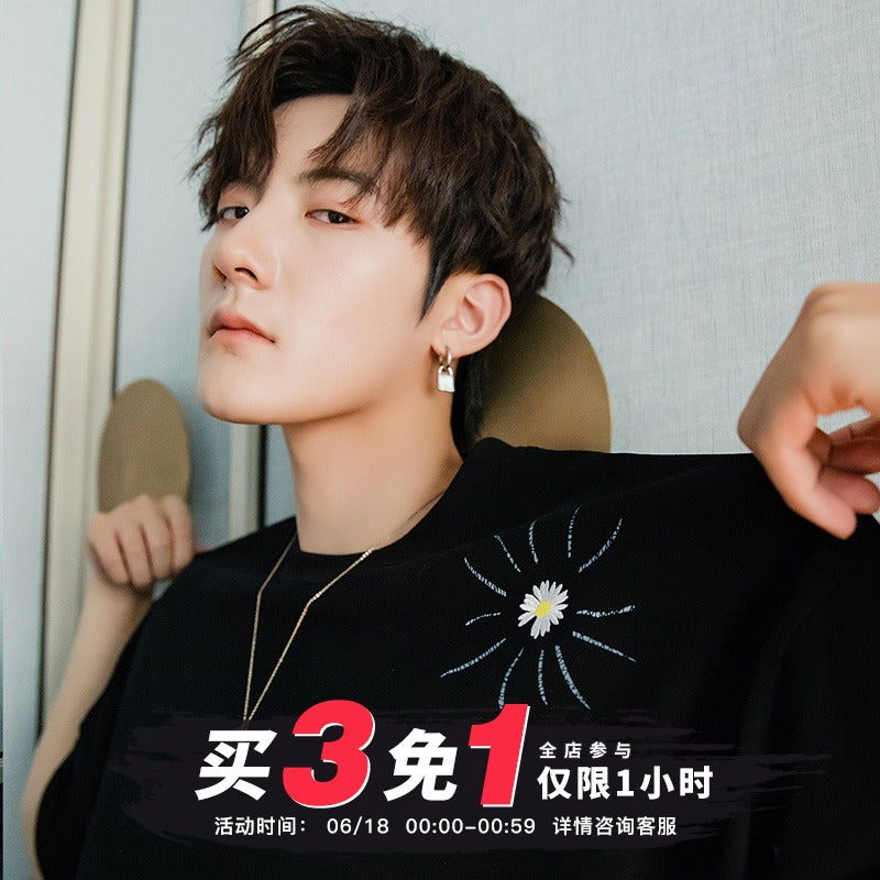 CHIC ERRO Chic Erro summer Korean short-sleeved men's tide brand trend loose men's half-sleeved embroidery small daisy t-shirt men