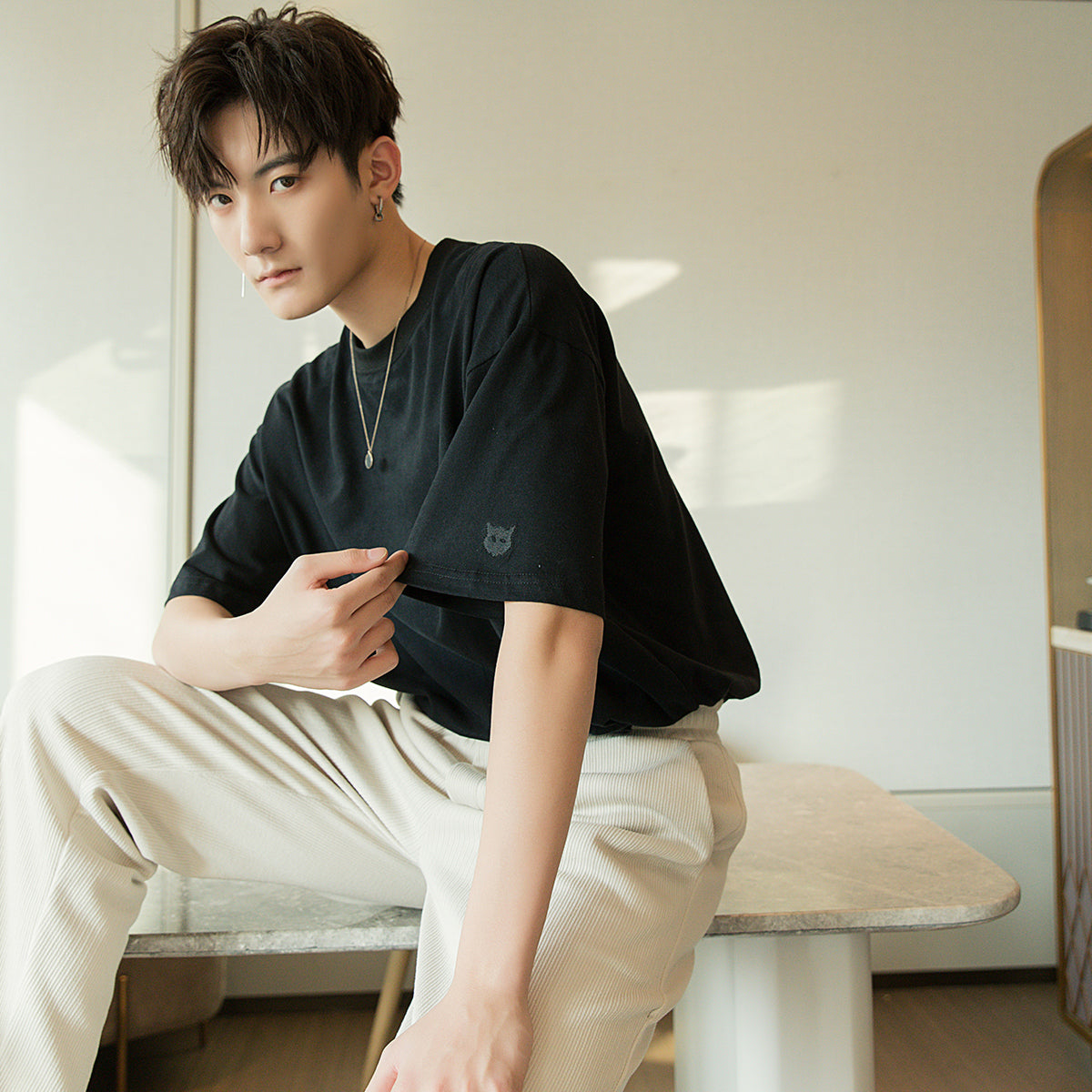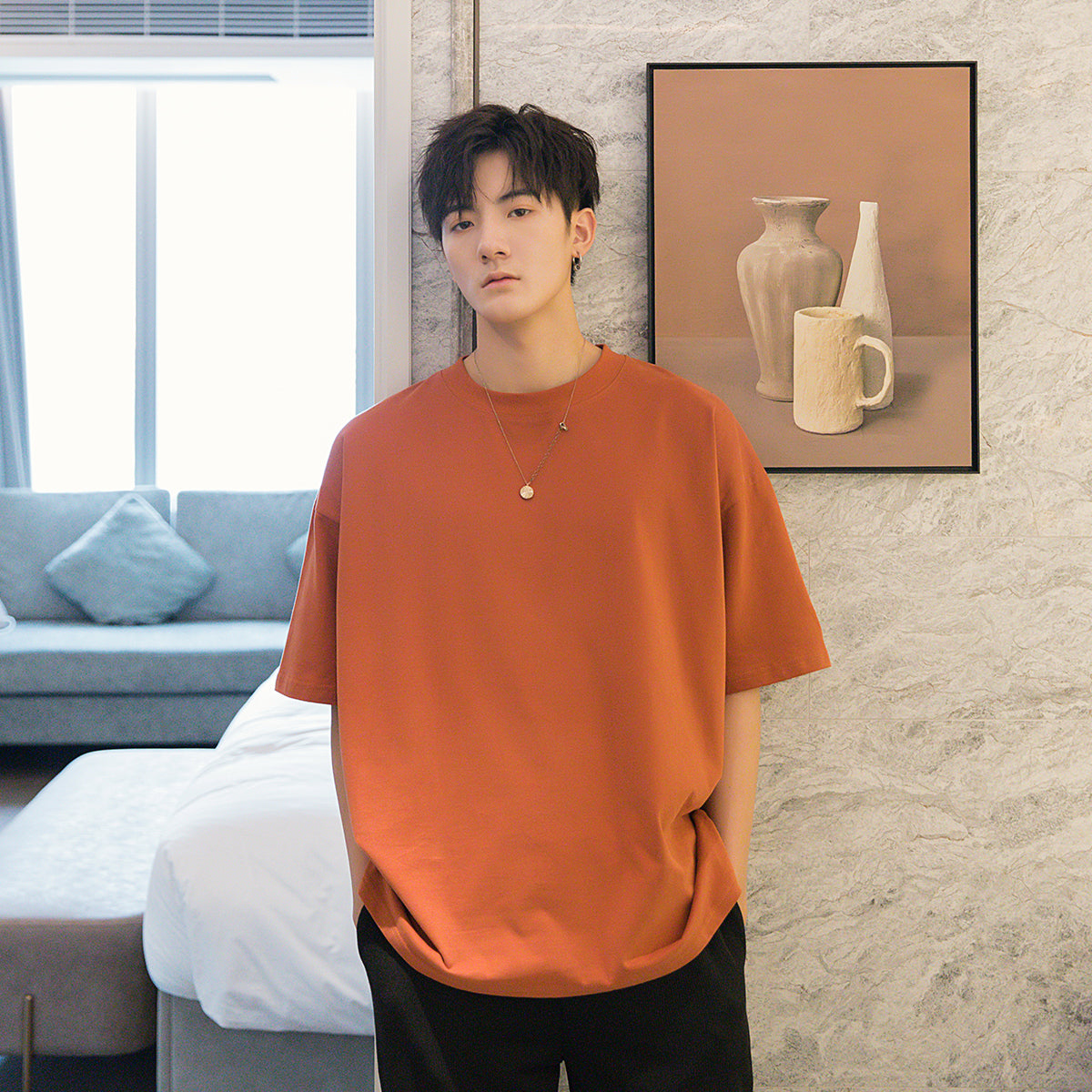 CHIC ERRO Chic Erro summer Korean style trend loose thick five-point sleeve bottoming shirt men's white short-sleeved t-shirt men